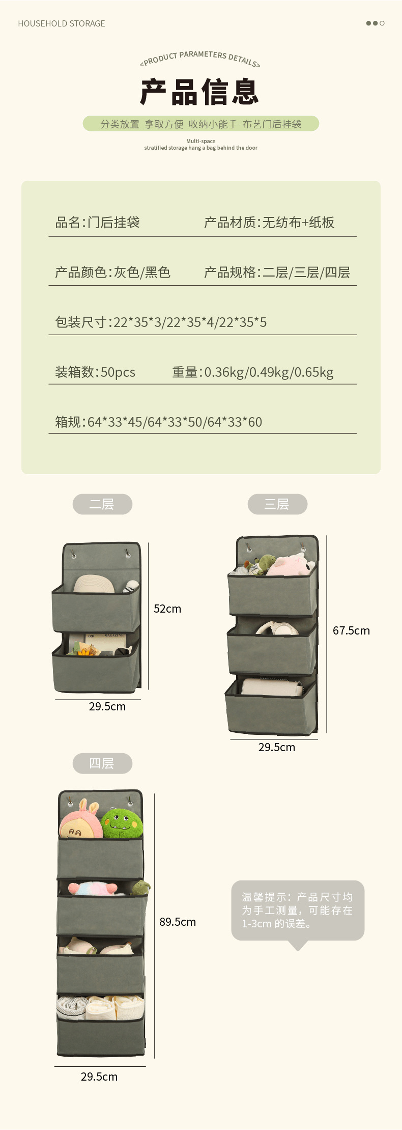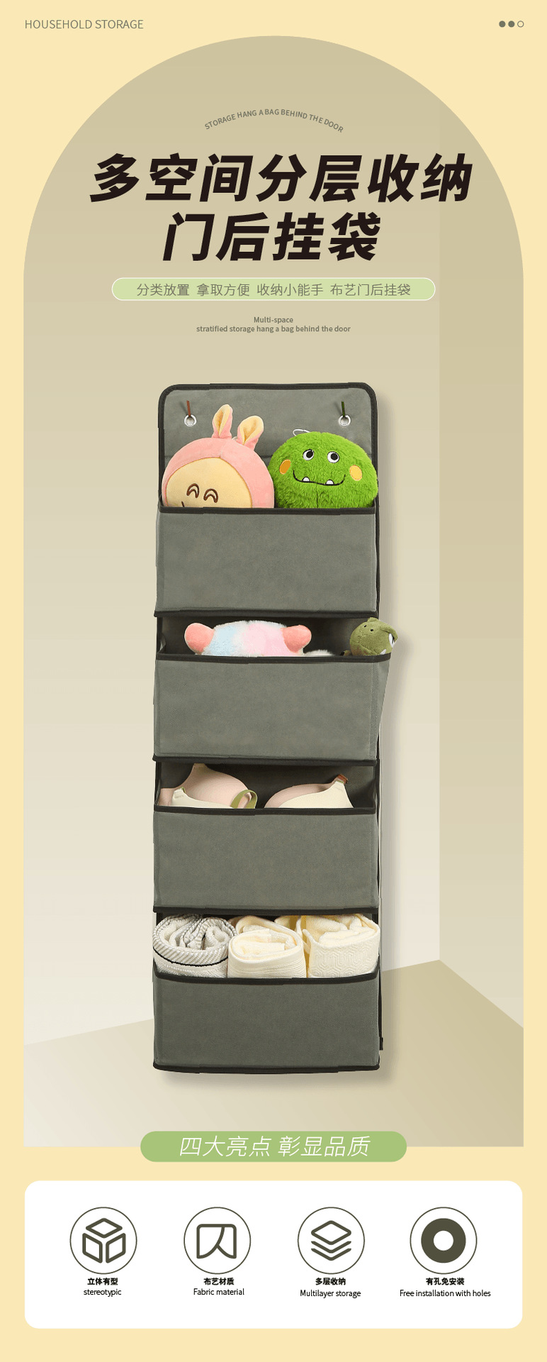 가정용 도어 교수형 가방 접이식 직물 파편 인형 저장 가방 다층 교수형 대용량 저장 가방