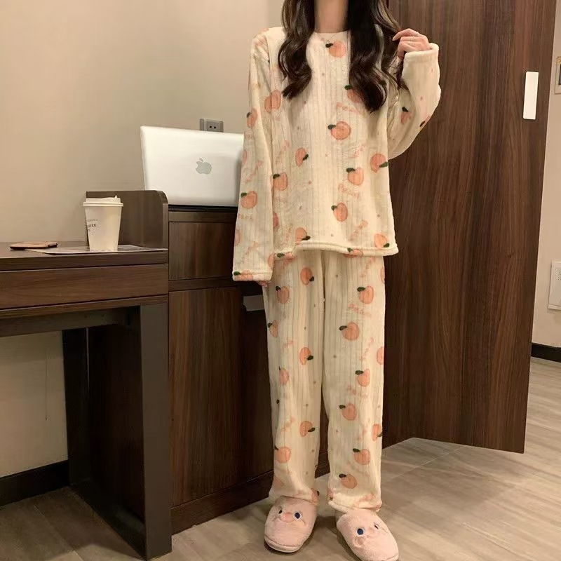 귀여운 인쇄 플란넬 두꺼운 긴 소매 파자마 여성의 가을과 겨울 달콤한 따뜻한 외부 착용 한국 스타일 홈 패션스토어 가기