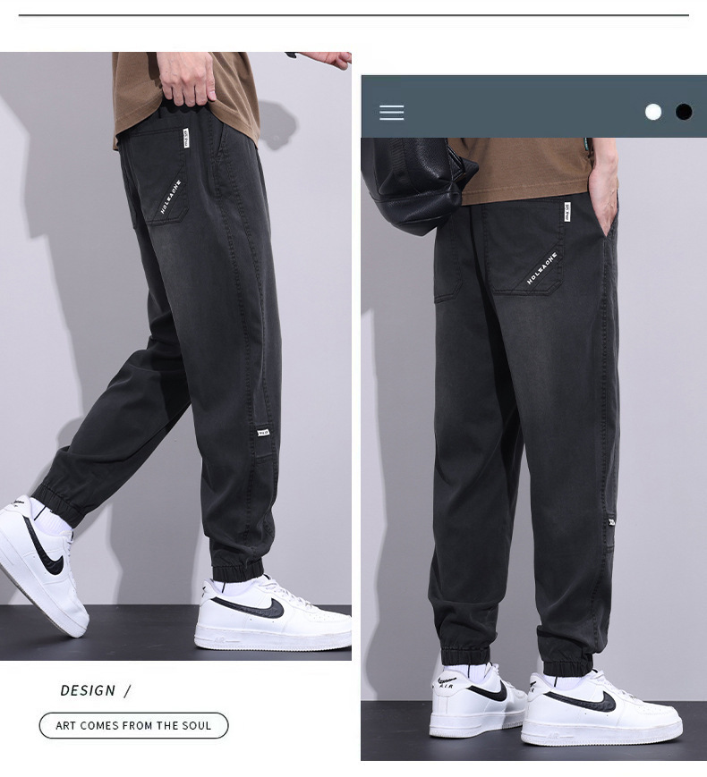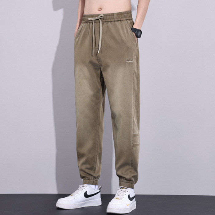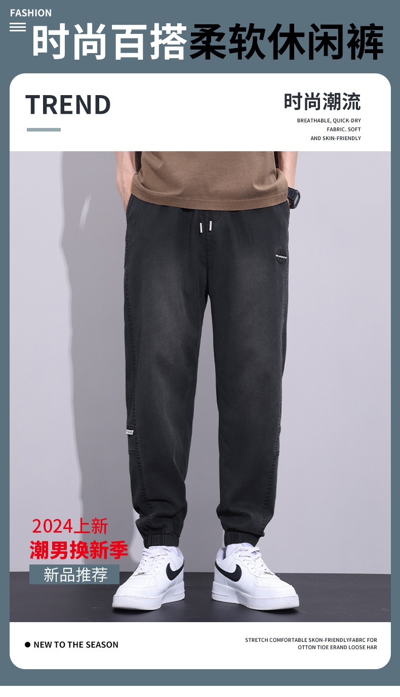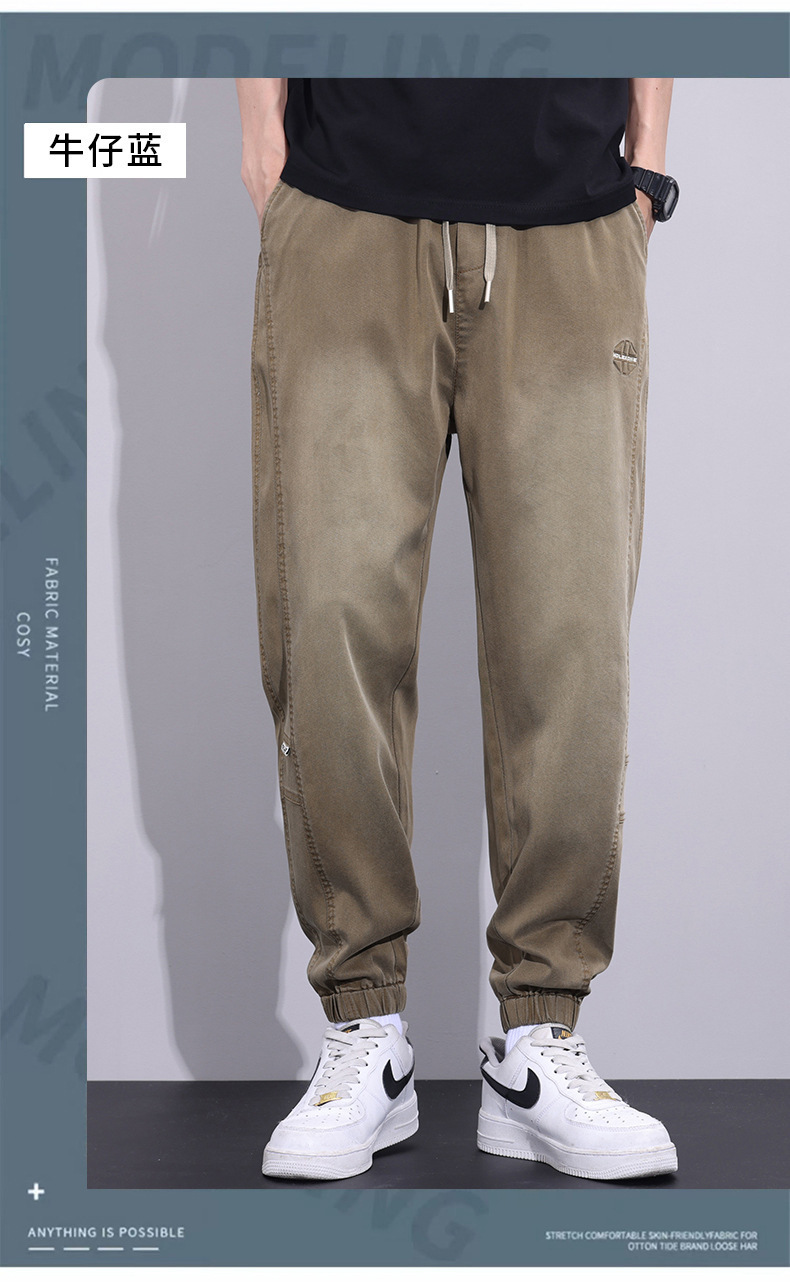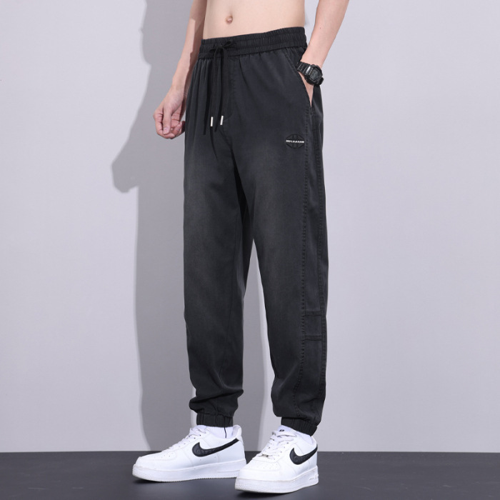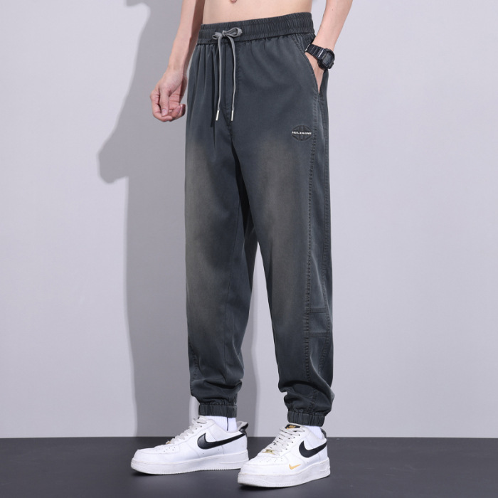 아메리칸 스타일 캐주얼 바지 남성용 아이스 실크 여름 얇은 느슨한 넥타이 텐셀 청바지 남성용 트렌디 브랜드 할란 롱 바지스토어 가기
