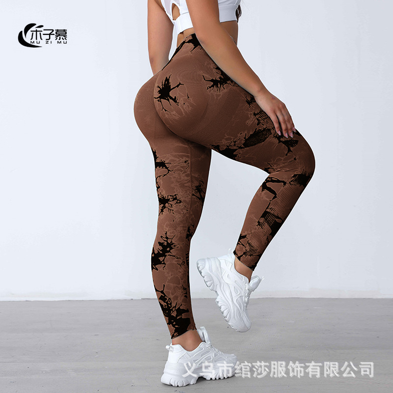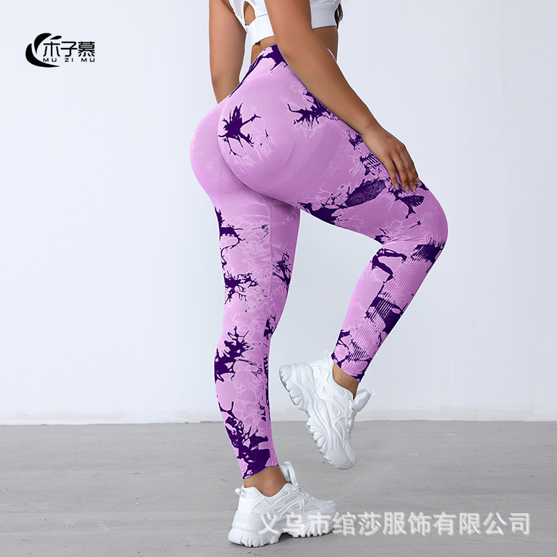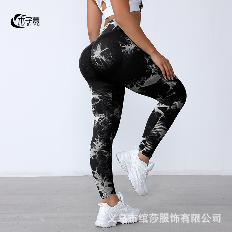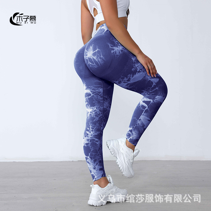 국경 간 원활한 타이 염료 요가 바지 높은 허리 복숭아 엉덩이 피트니스 레깅스 훈련 스포츠 타이트 대외 무역스토어 가기