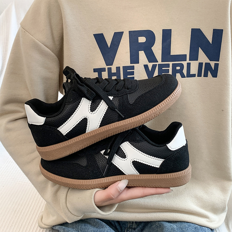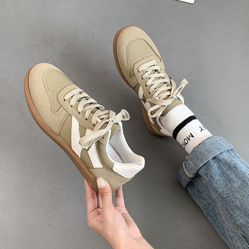 타이 저우 도매 2024 새로운 운동화 미국 복고풍 라운드 헤드 스트라이프 레이스 업 신발 패션 평면 독일 훈련 신발스토어 가기