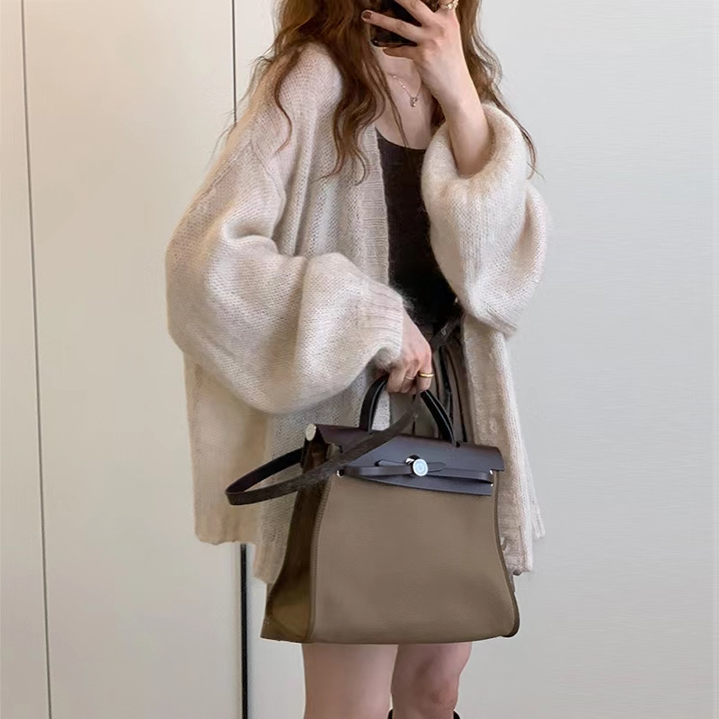 한국 2026 가을 루즈핏 레이지 스타일 얇은 숄형 아우터 탑 중간 길이 랜턴 슬리브 니트 가디건 여성용스토어 가기