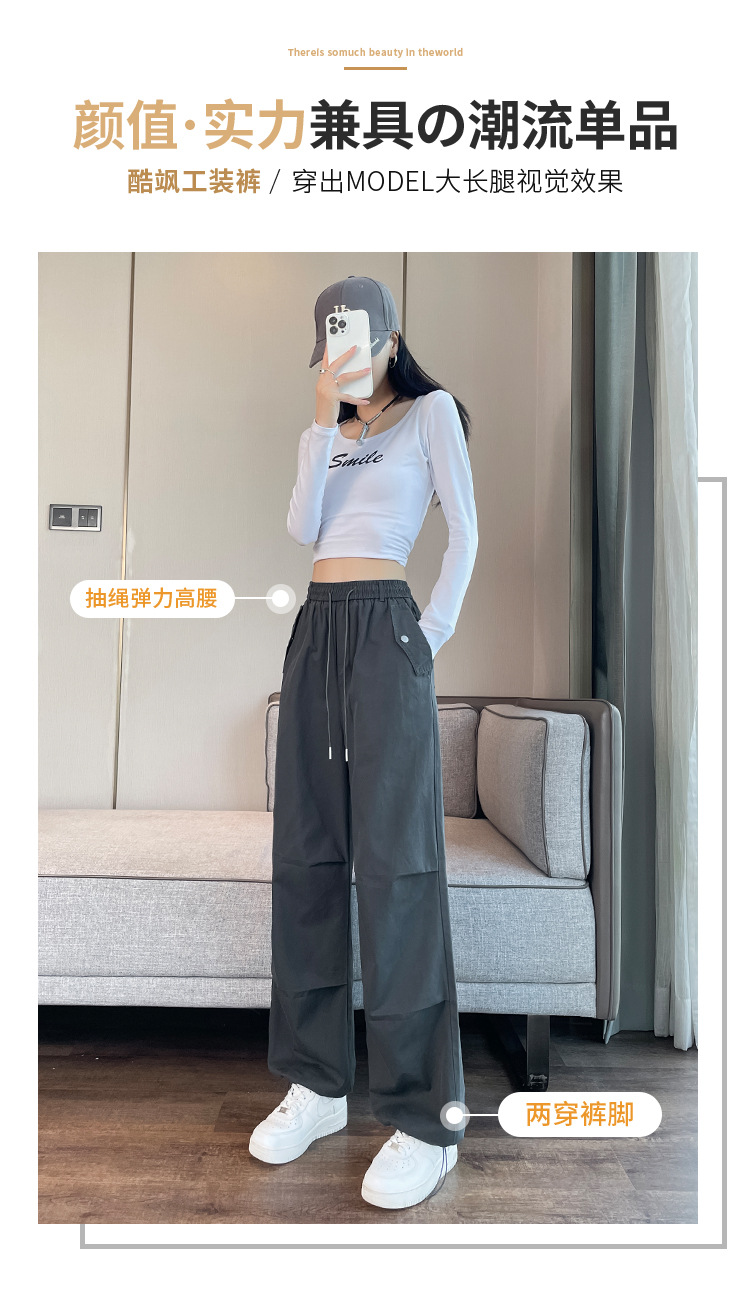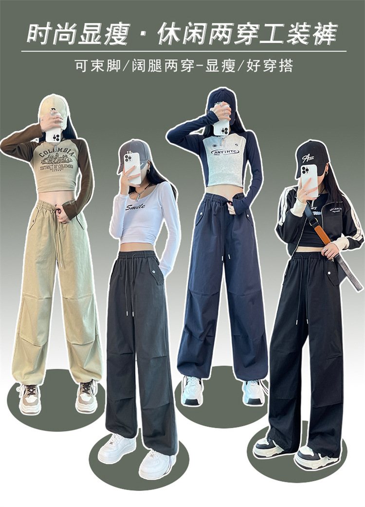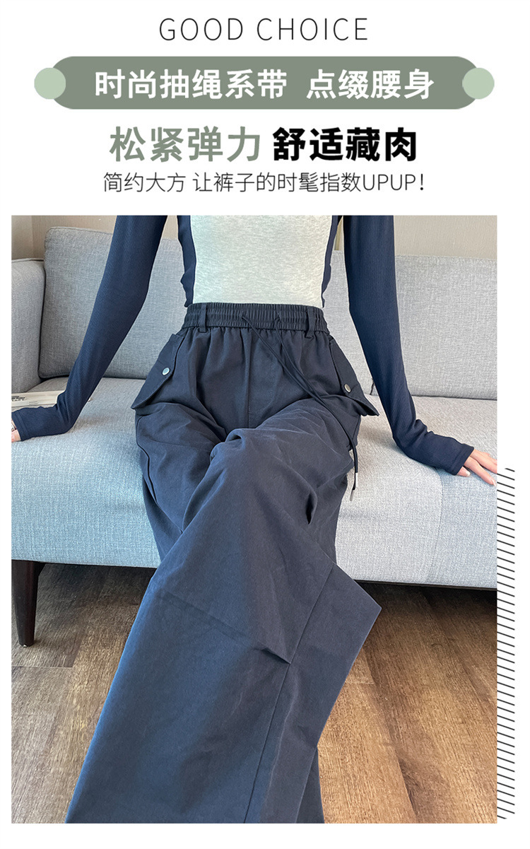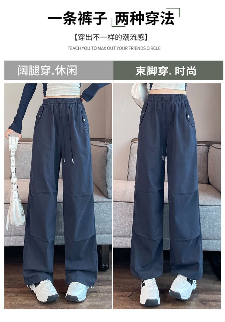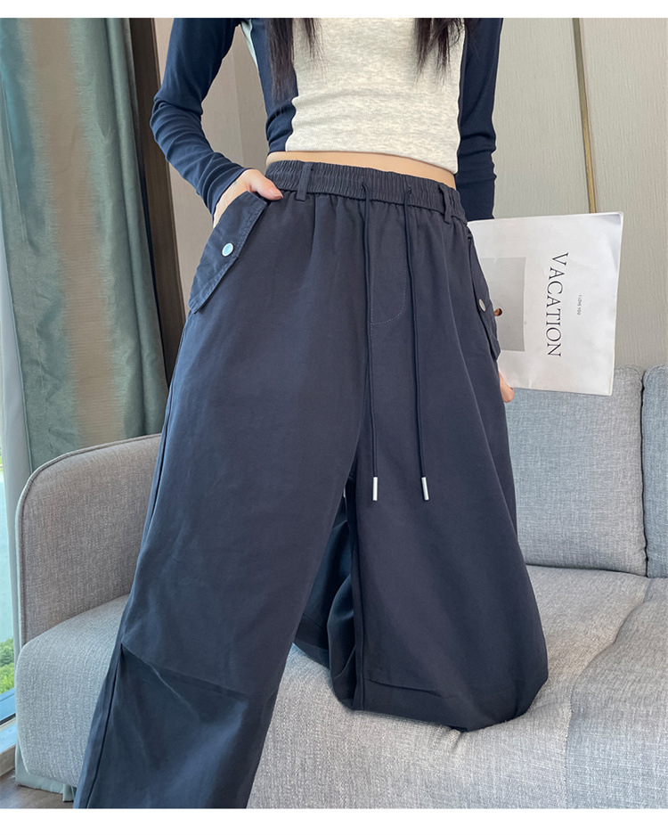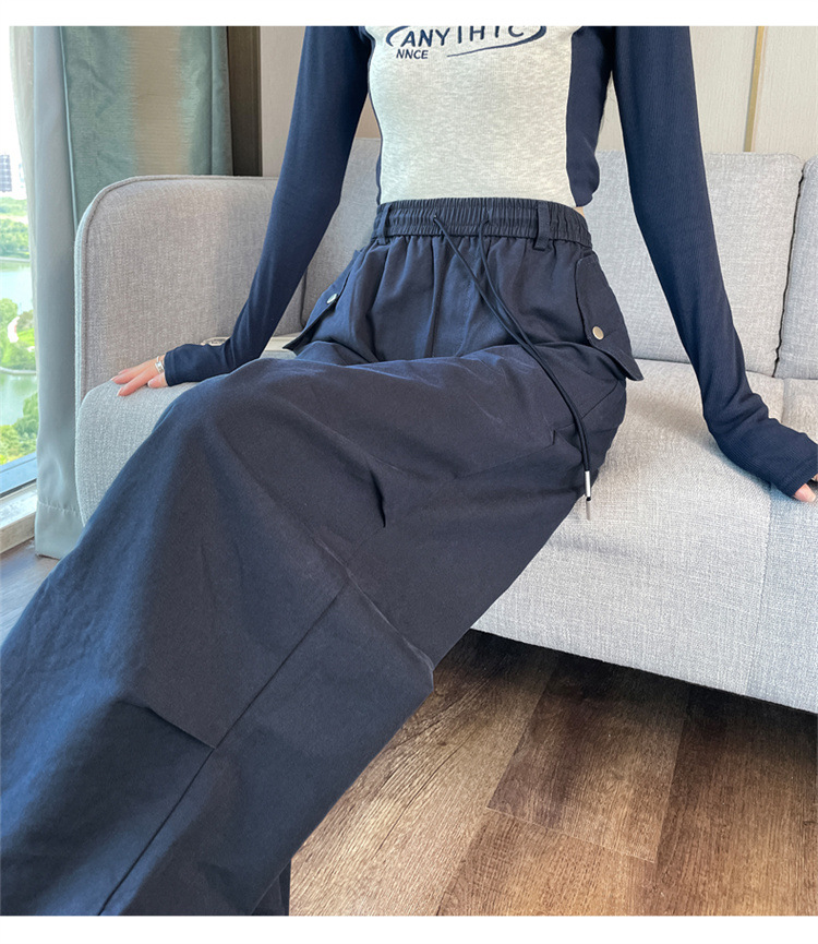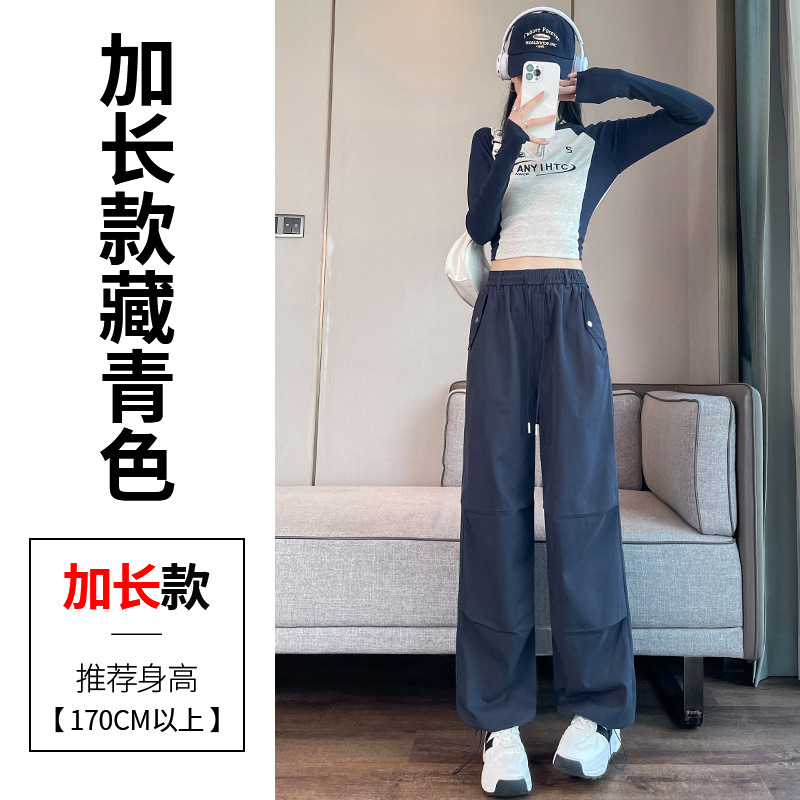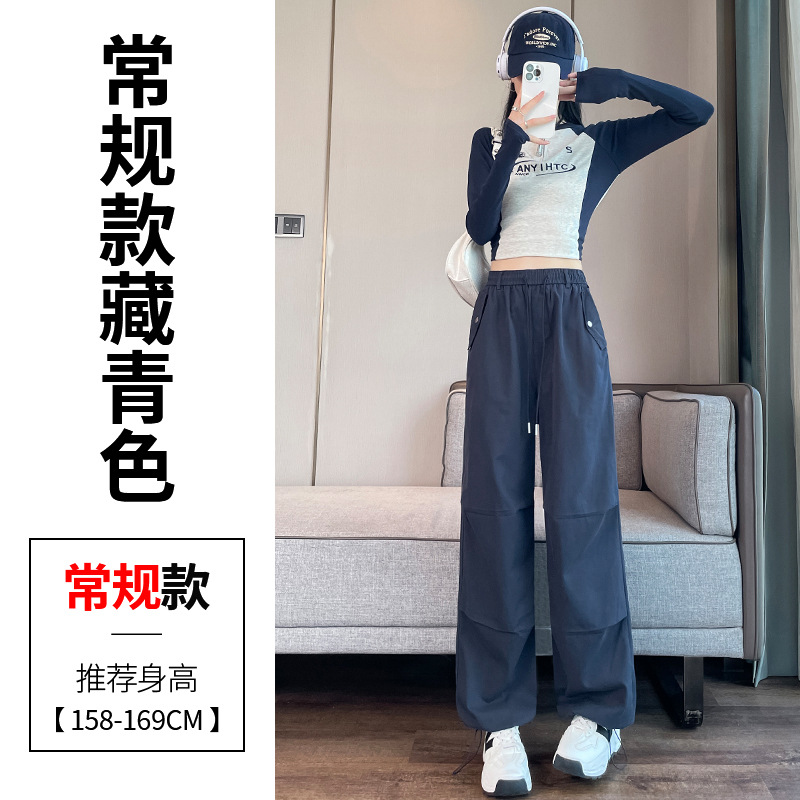 미국식 네이비 블루 작업복 바지 여성용 봄 여름 작은 키 여성을 위한 하이웨이스트 루즈핏 와이드 레그 낙하산부 등산 바지 다리가 길어보이게 하는 디자인스토어 가기