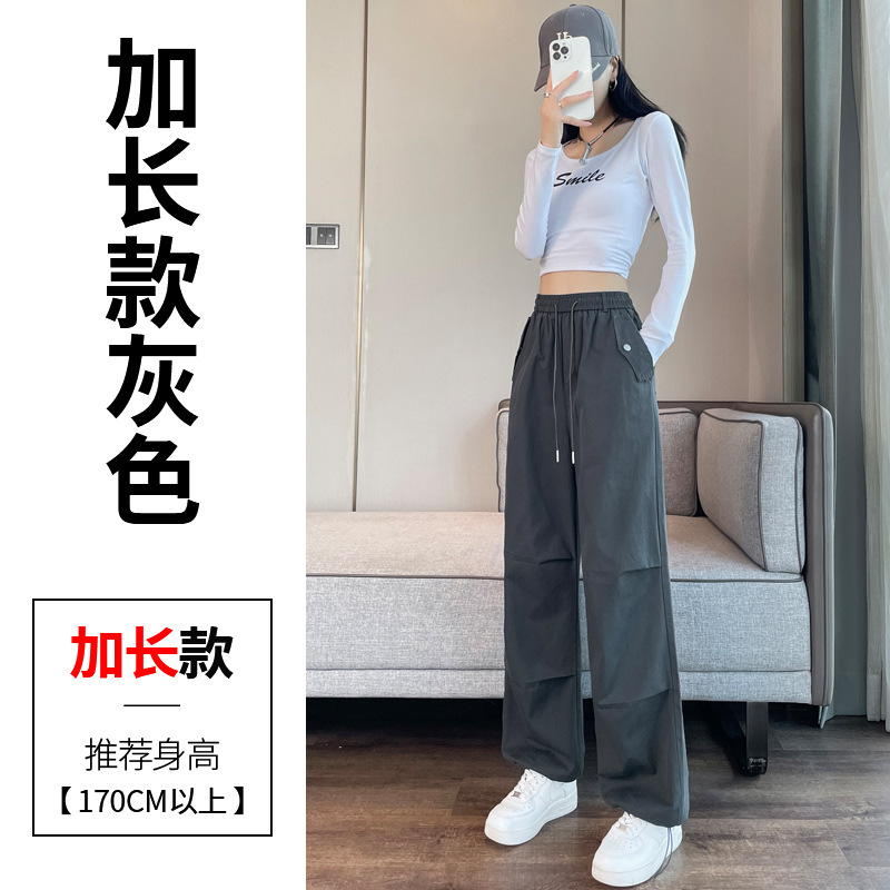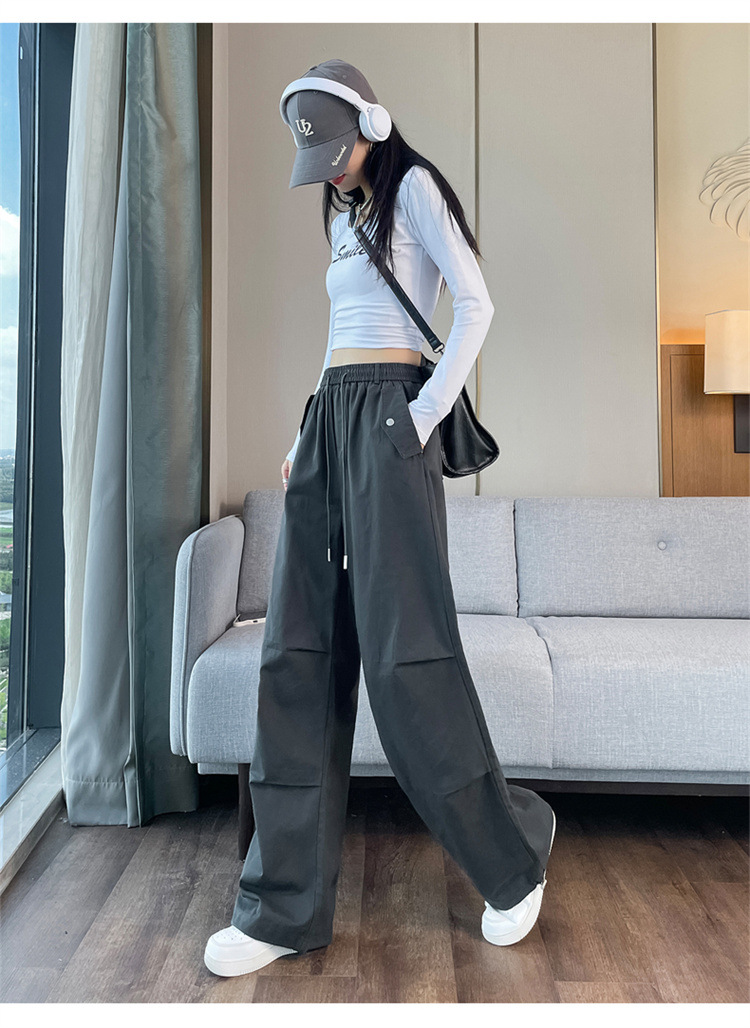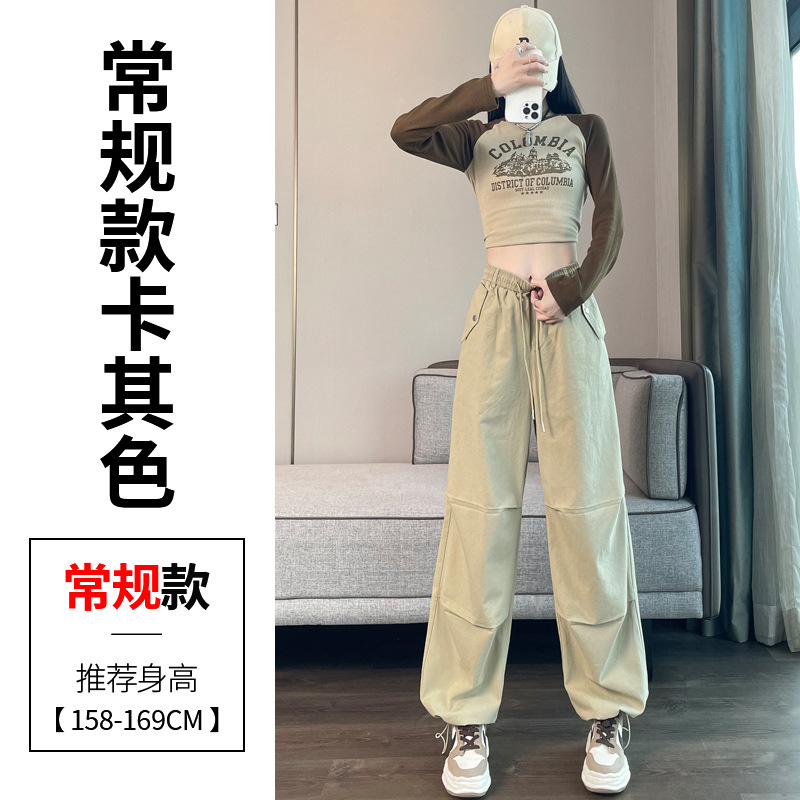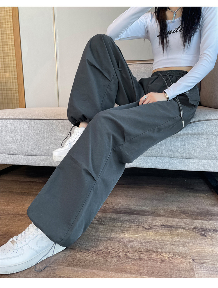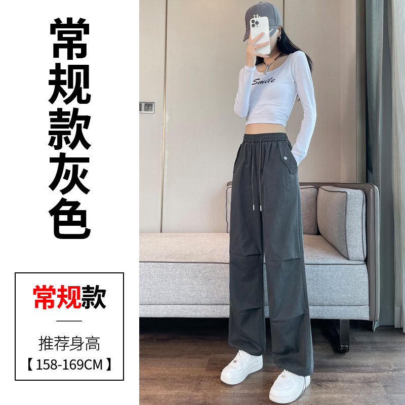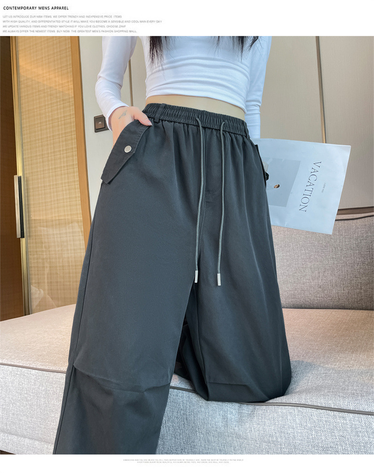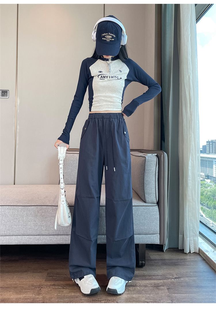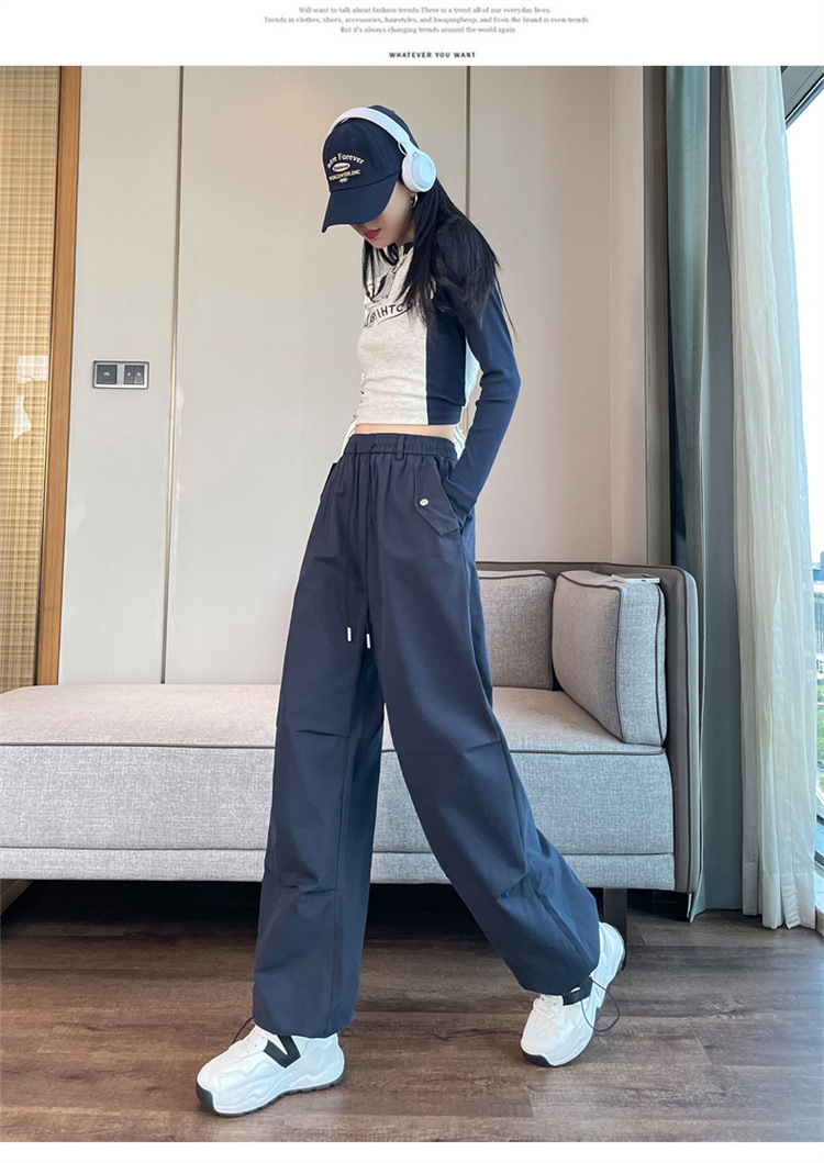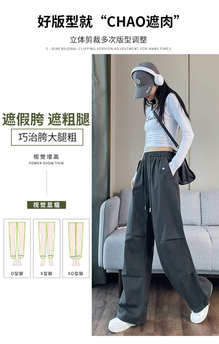 미국식 네이비 블루 작업복 바지 여성용 봄 여름 작은 키 여성을 위한 하이웨이스트 루즈핏 와이드 레그 낙하산부 등산 바지 다리가 길어보이게 하는 디자인스토어 가기