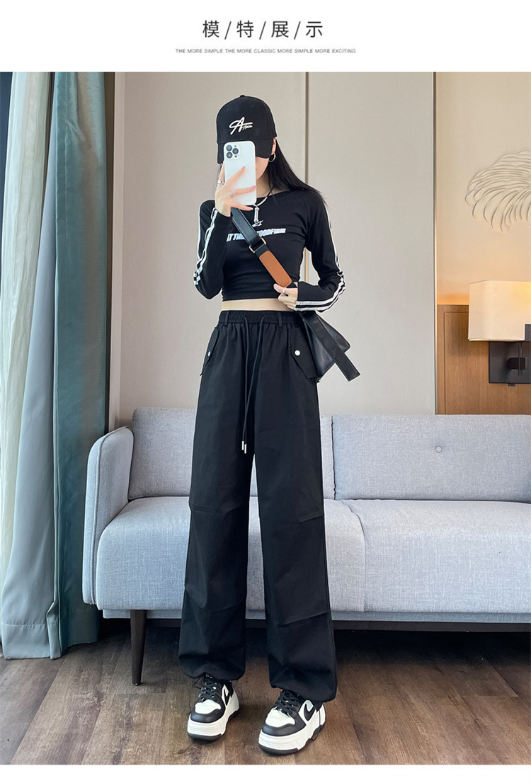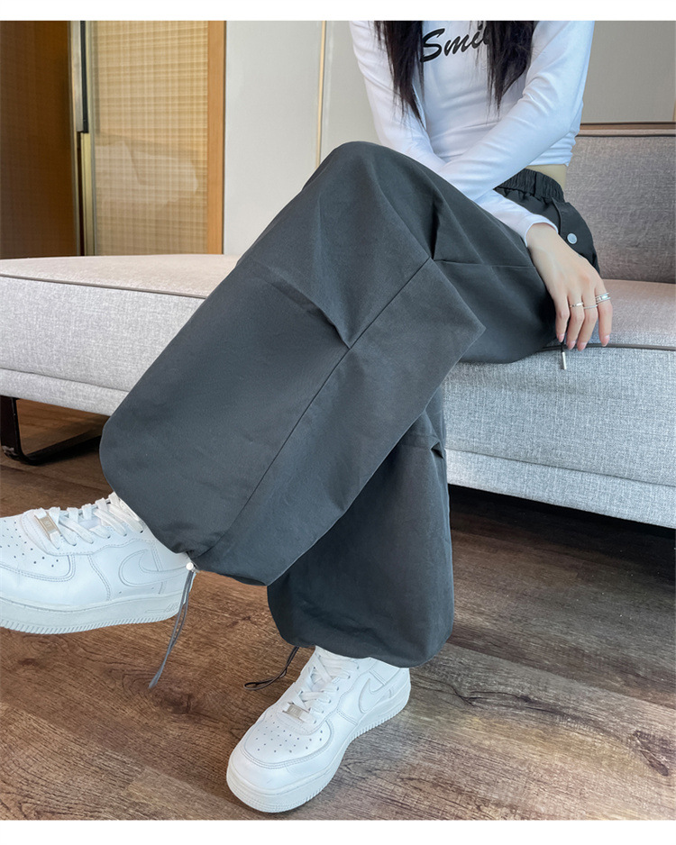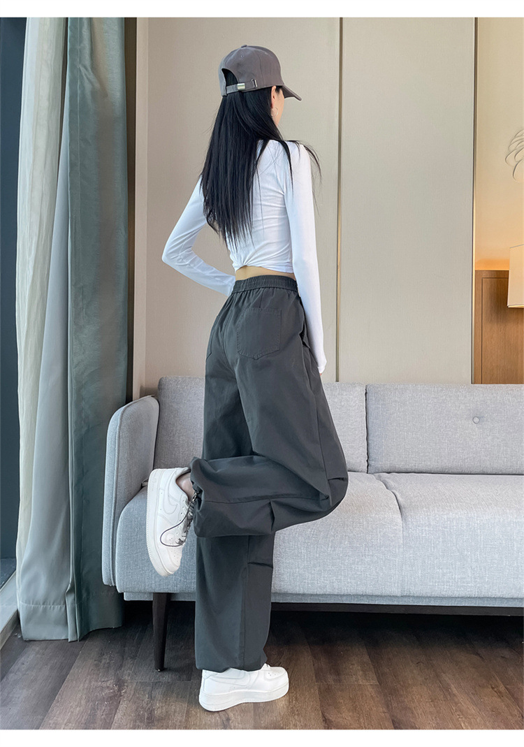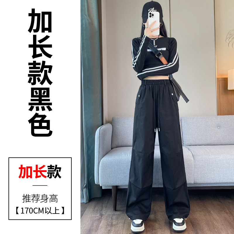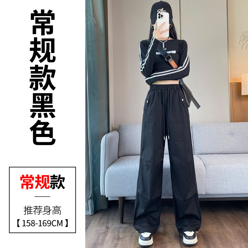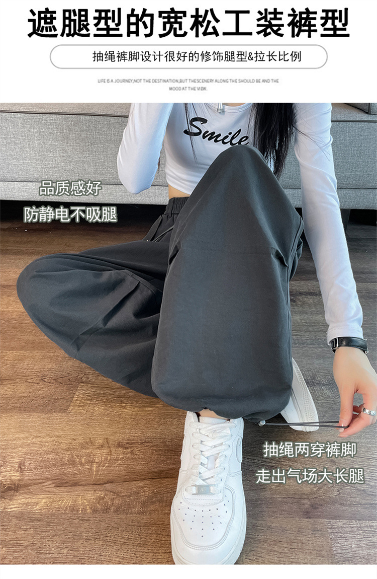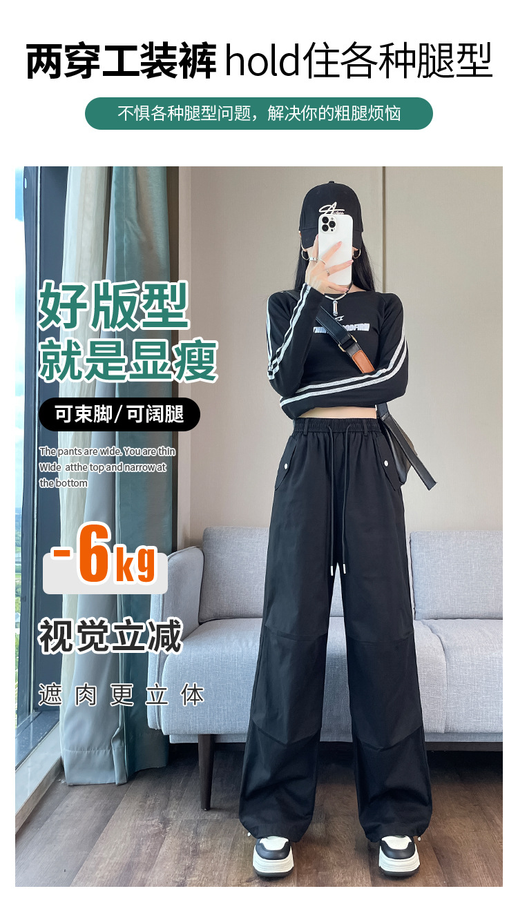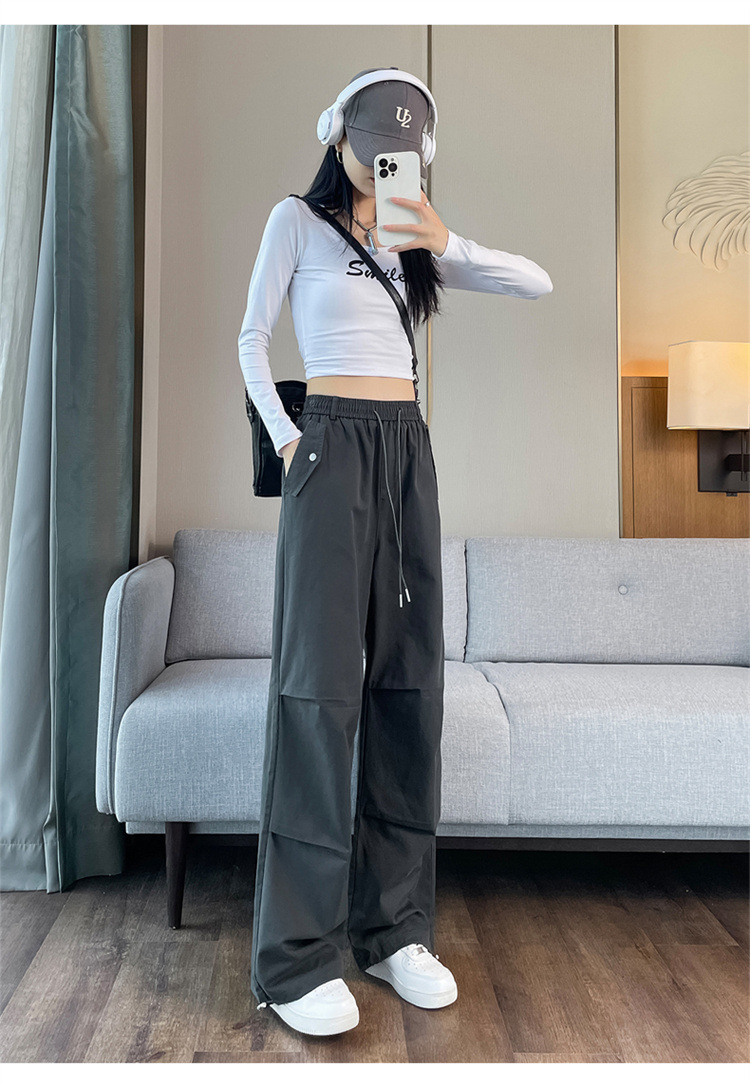 미국식 네이비 블루 작업복 바지 여성용 봄 여름 작은 키 여성을 위한 하이웨이스트 루즈핏 와이드 레그 낙하산부 등산 바지 다리가 길어보이게 하는 디자인스토어 가기