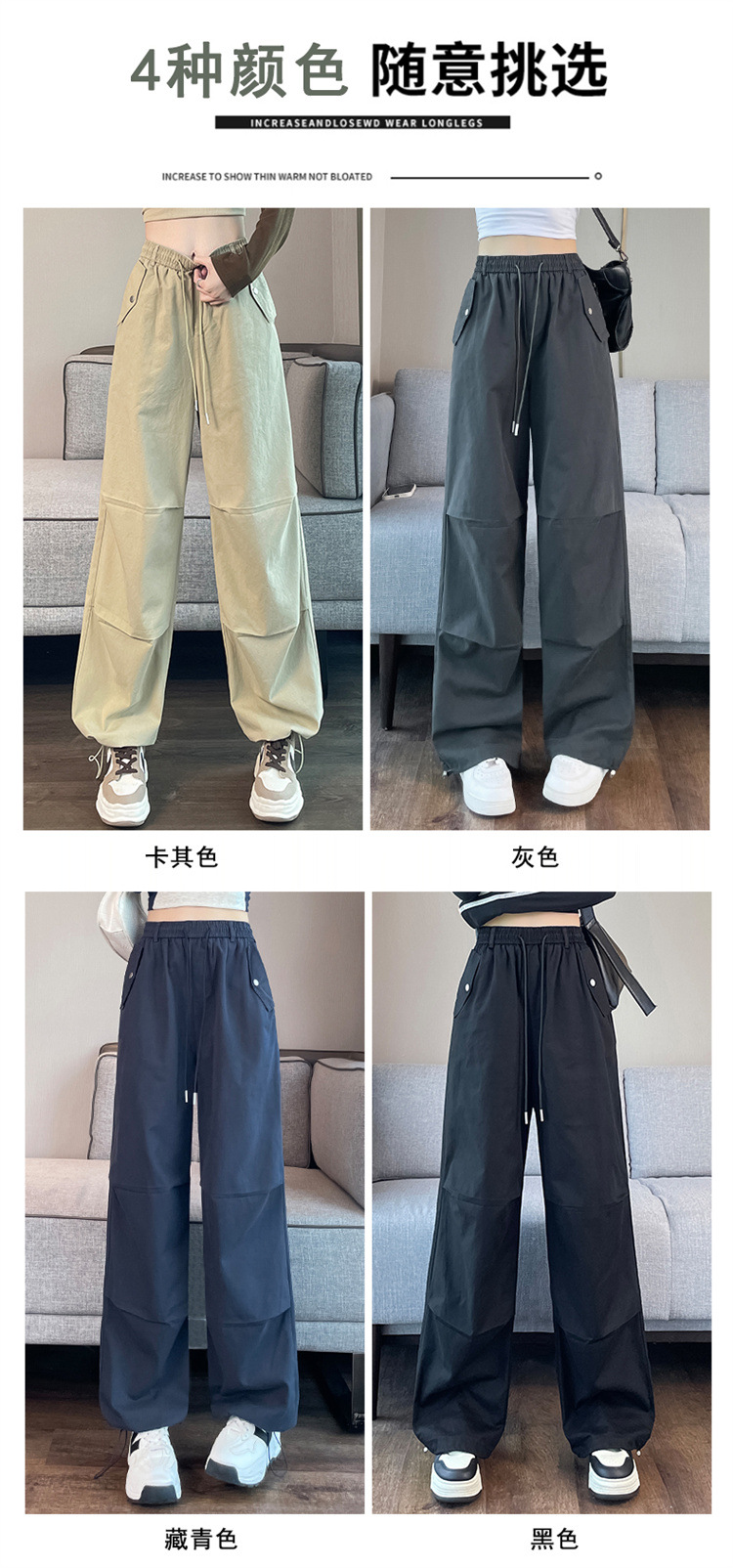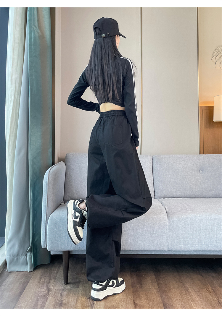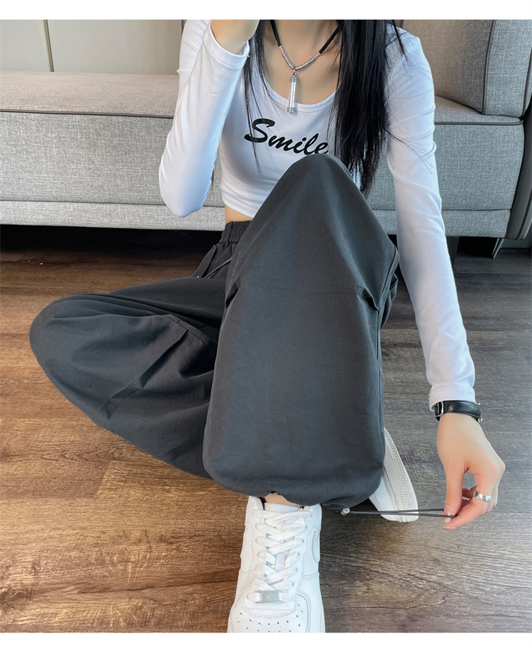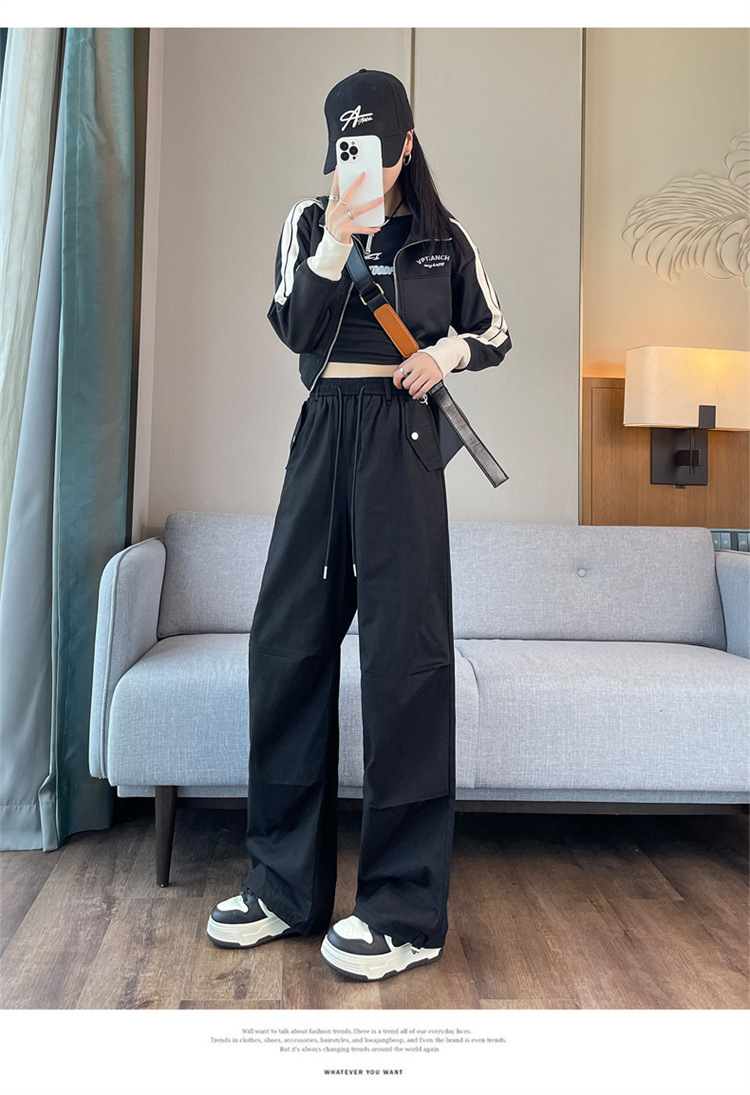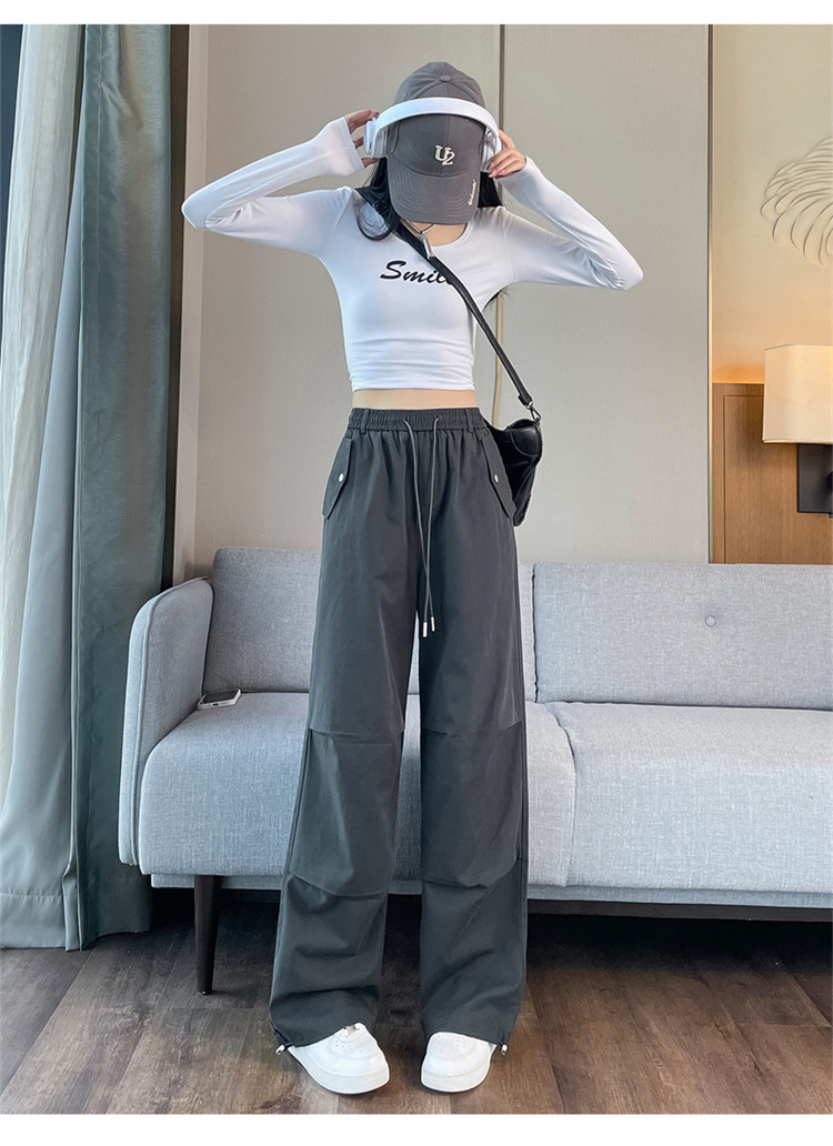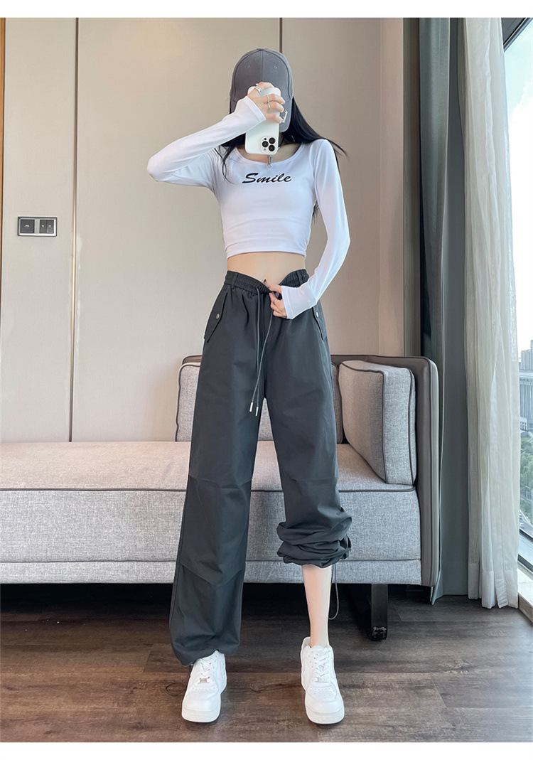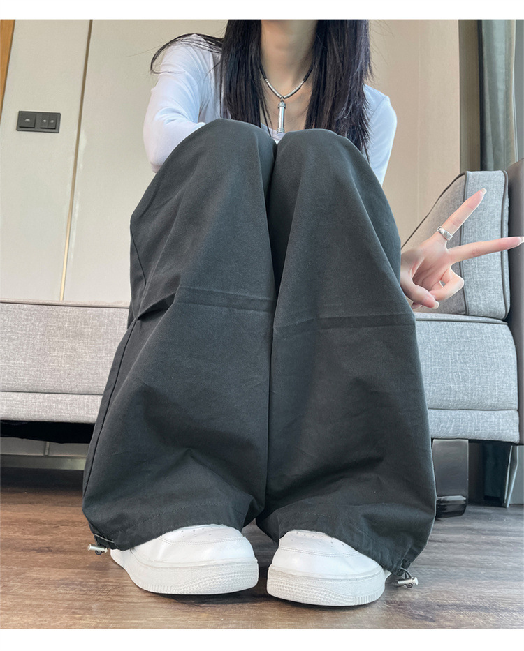 미국식 네이비 블루 작업복 바지 여성용 봄 여름 작은 키 여성을 위한 하이웨이스트 루즈핏 와이드 레그 낙하산부 등산 바지 다리가 길어보이게 하는 디자인스토어 가기