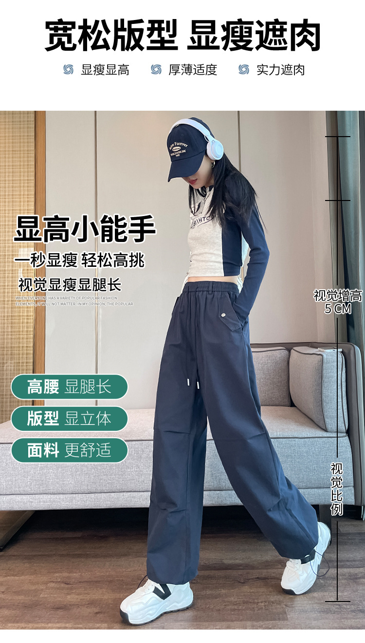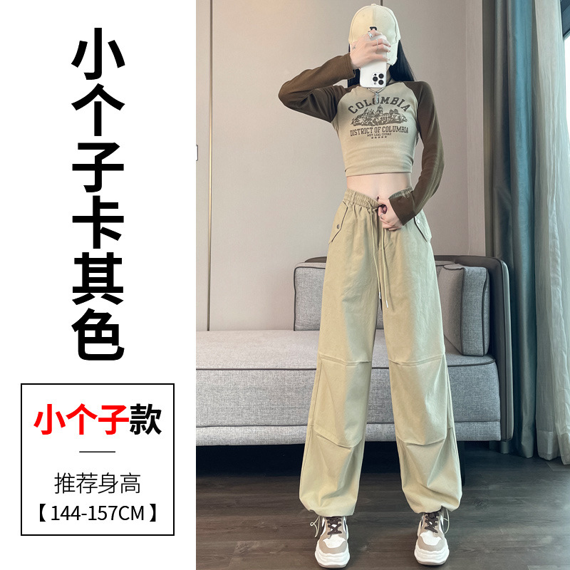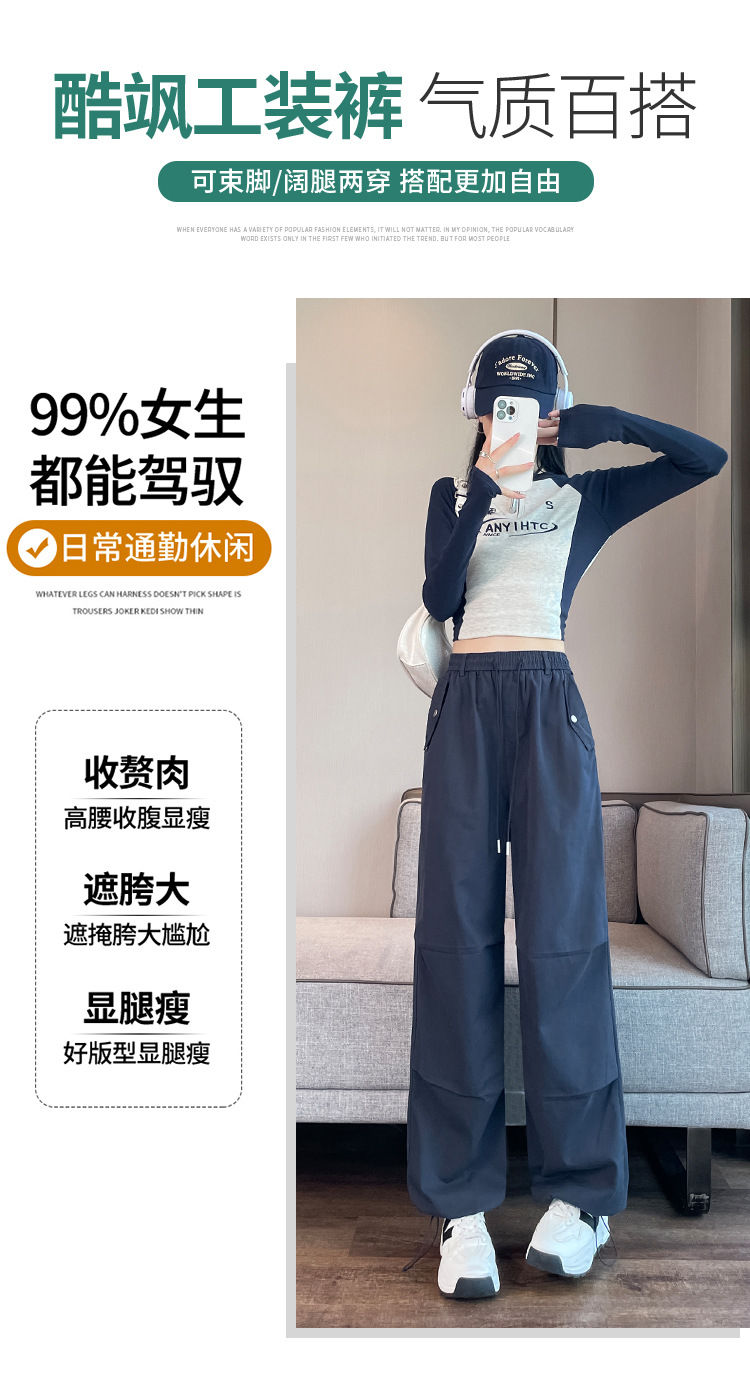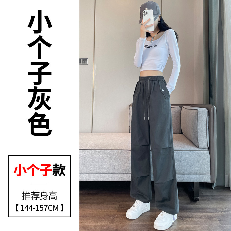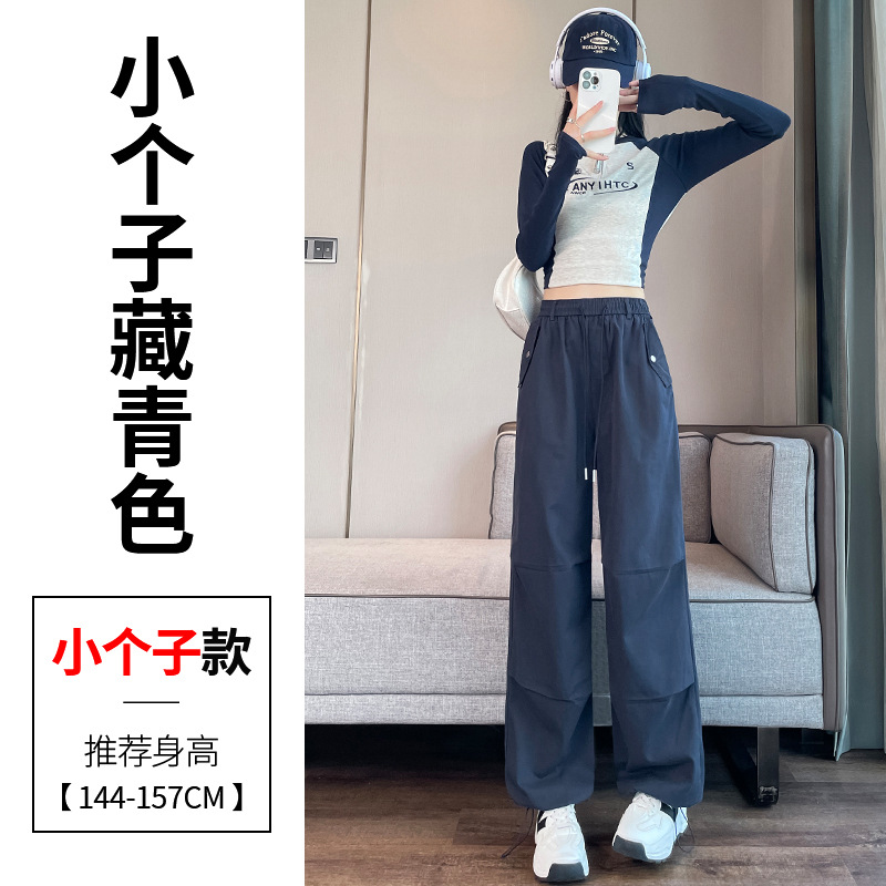 미국식 네이비 블루 작업복 바지 여성용 봄 여름 작은 키 여성을 위한 하이웨이스트 루즈핏 와이드 레그 낙하산부 등산 바지 다리가 길어보이게 하는 디자인