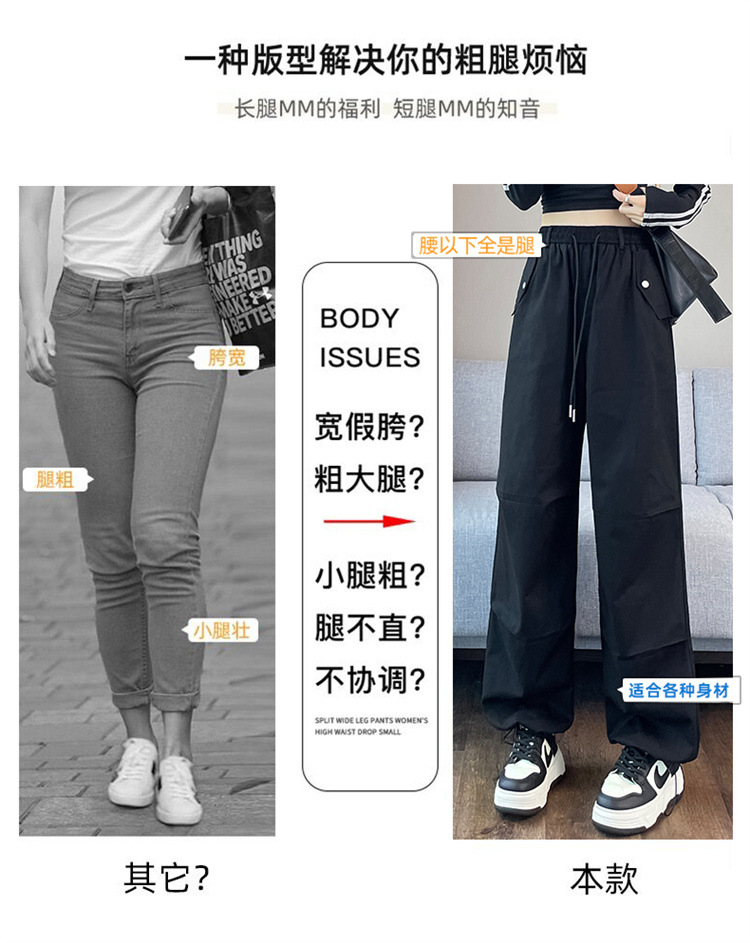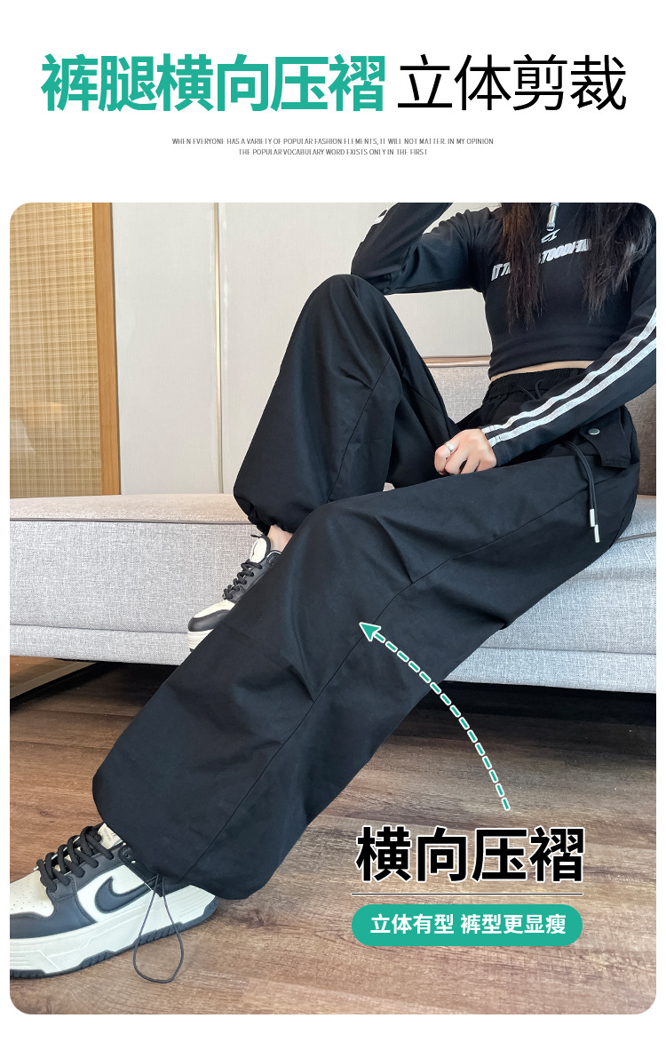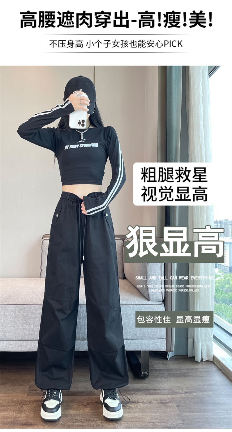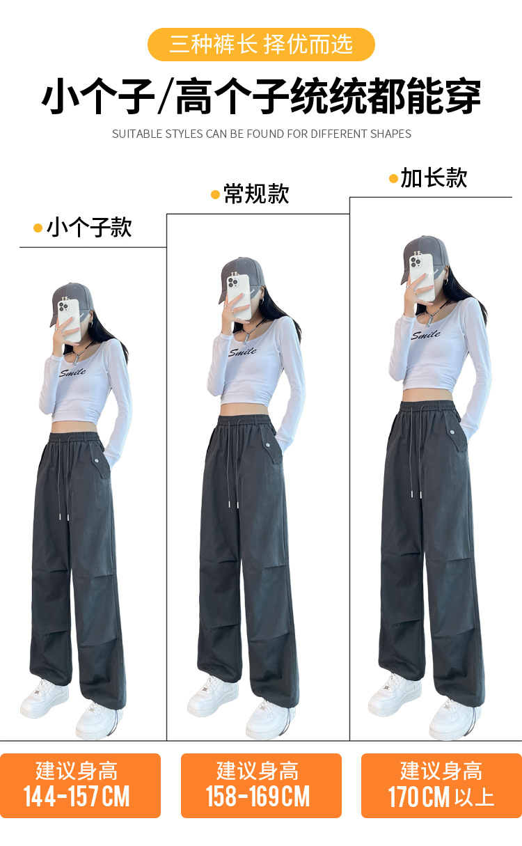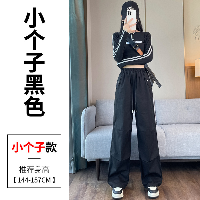 미국식 네이비 블루 작업복 바지 여성용 봄 여름 작은 키 여성을 위한 하이웨이스트 루즈핏 와이드 레그 낙하산부 등산 바지 다리가 길어보이게 하는 디자인