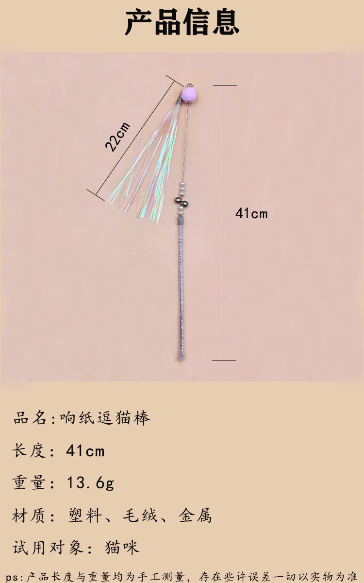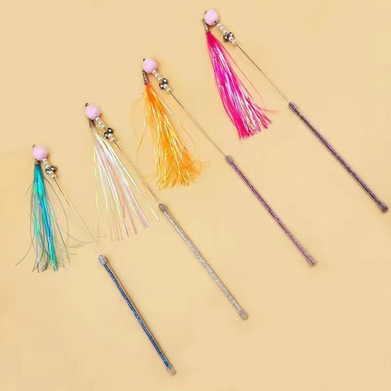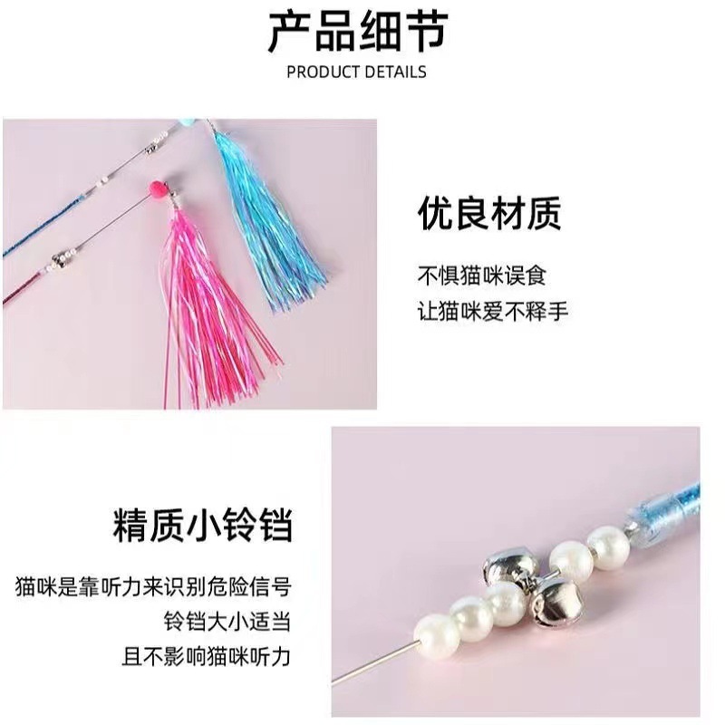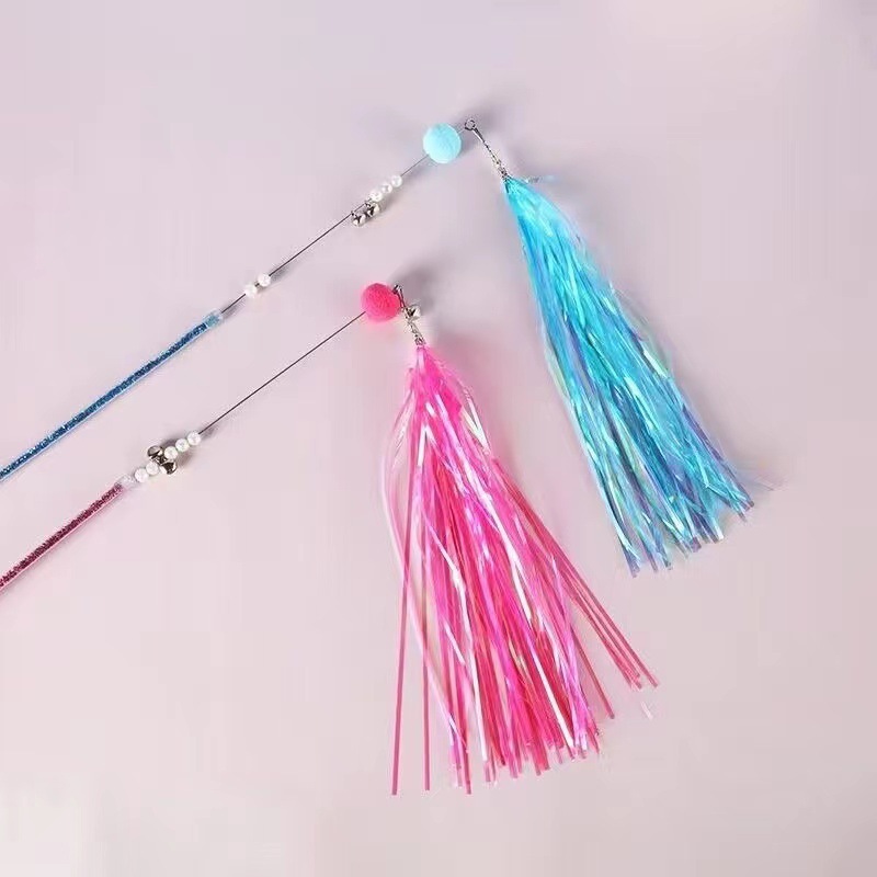 재미있는 고양이 스틱 고양이 장난감 종 강철 와이어 긴 극 재미있는 고양이 장난감 대화 형 공장 도매로 다채로운 울리는 종이 기둥