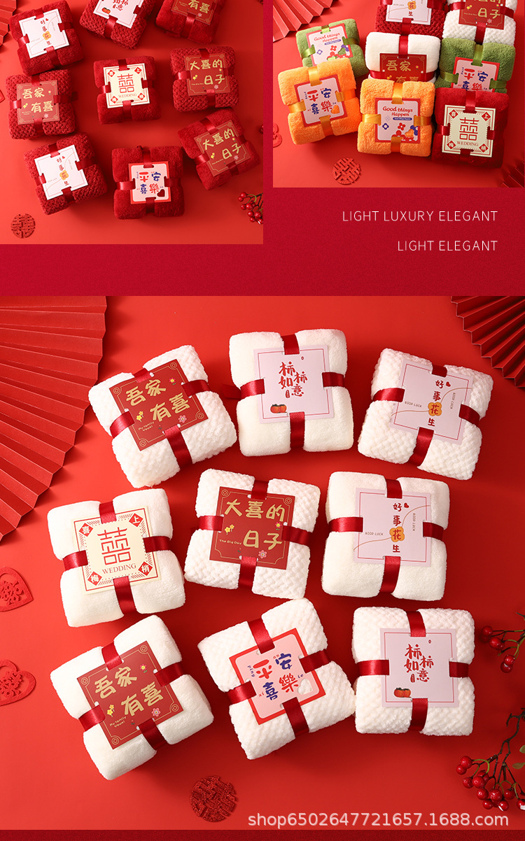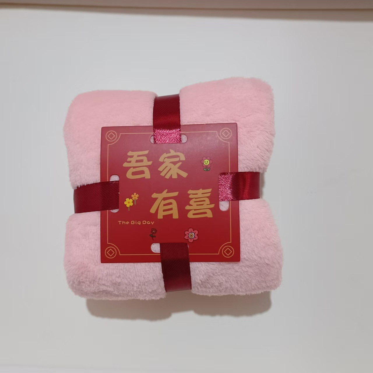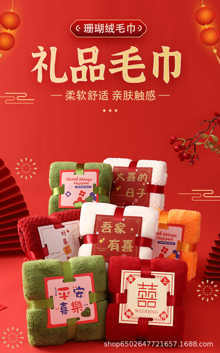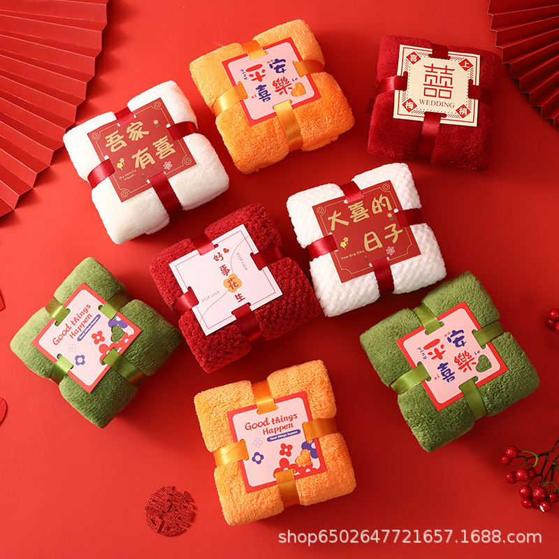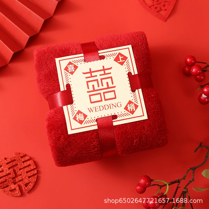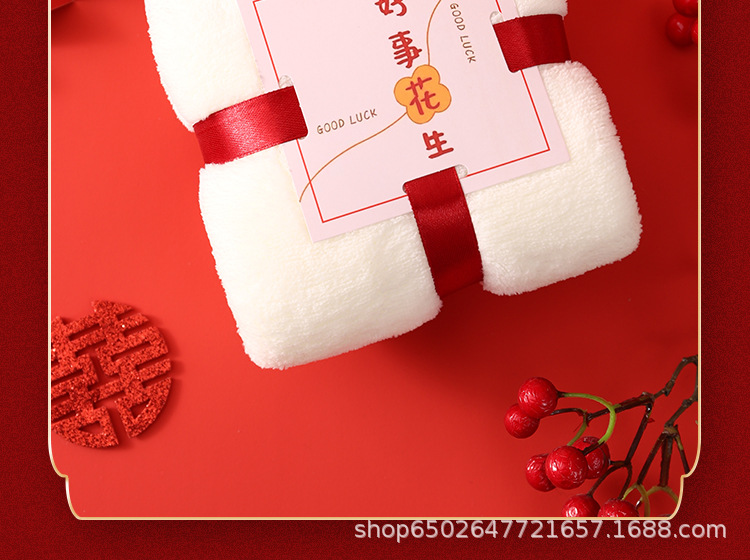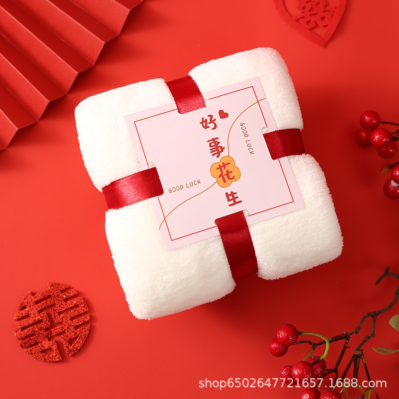 산호 양털 선물 수건 웨딩 축하 가게 웨딩 리턴 선물 창조적 인 작은 선물 동반 선물 리본 스퀘어 타월