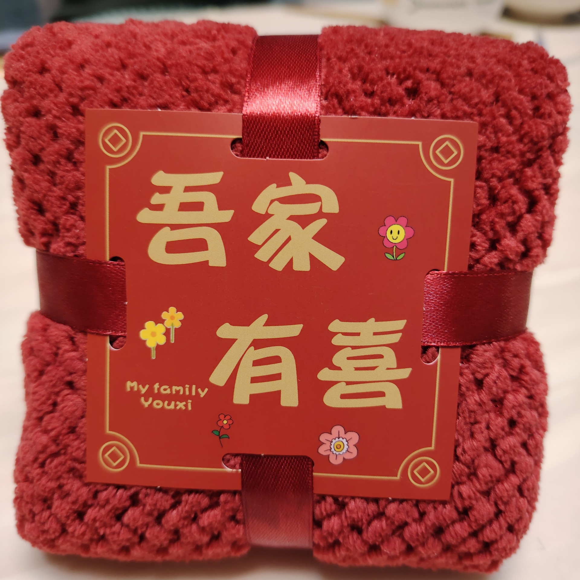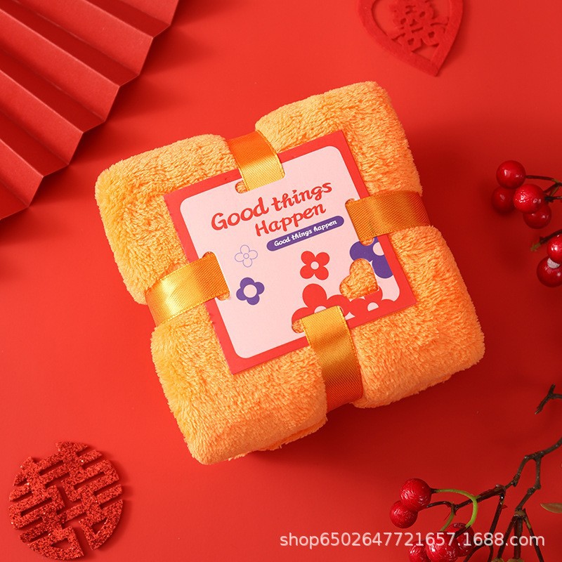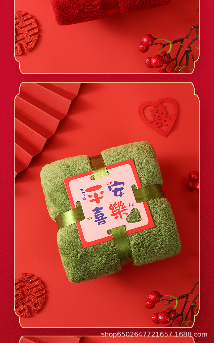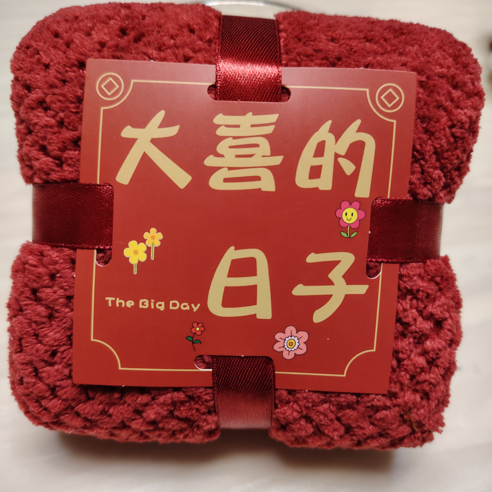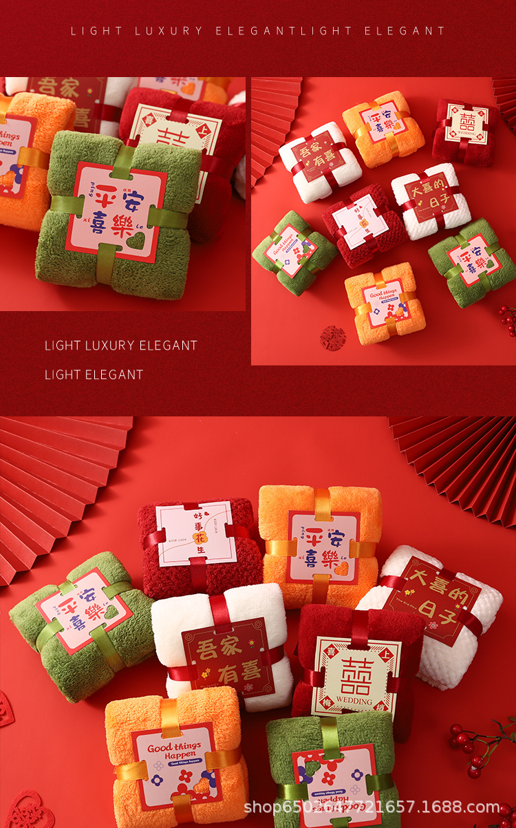 산호 양털 선물 수건 웨딩 축하 가게 웨딩 리턴 선물 창조적 인 작은 선물 동반 선물 리본 스퀘어 타월