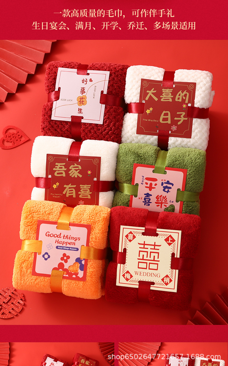 산호 양털 선물 수건 웨딩 축하 가게 웨딩 리턴 선물 창조적 인 작은 선물 동반 선물 리본 스퀘어 타월스토어 가기