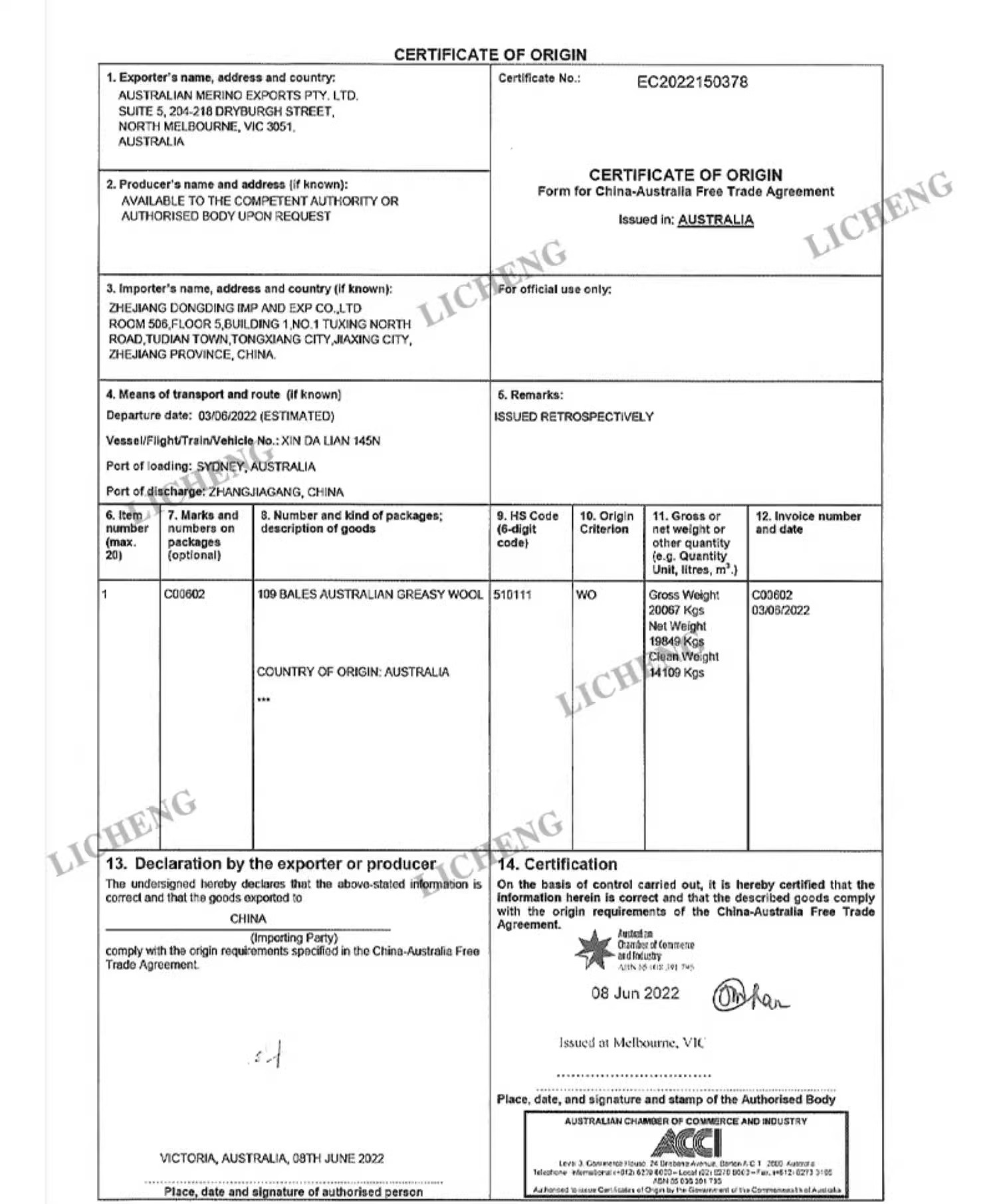 웨이하이센터상호: 威海韩运国际贸易有限公司 法定代表人: 朱 勇奎 统一社会信用代码: 91371000MA3U6XGW6N 进出口: 37109409C6