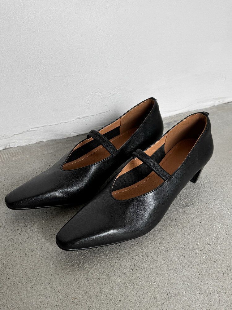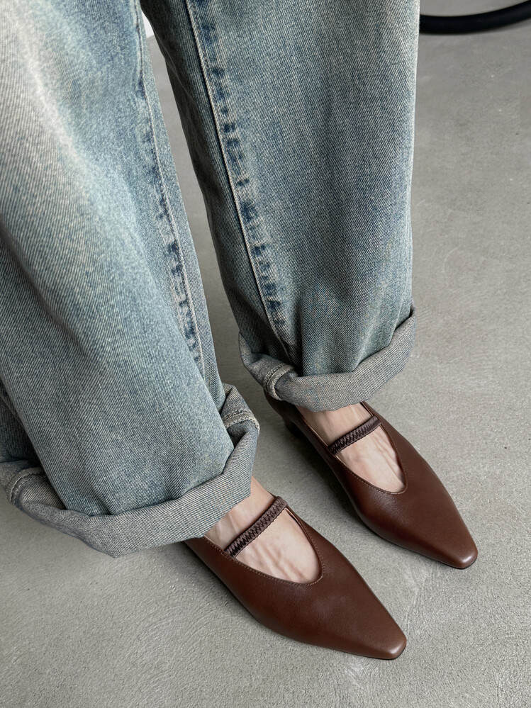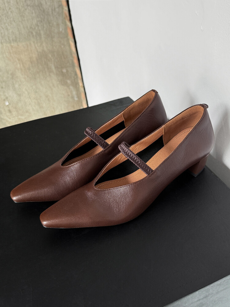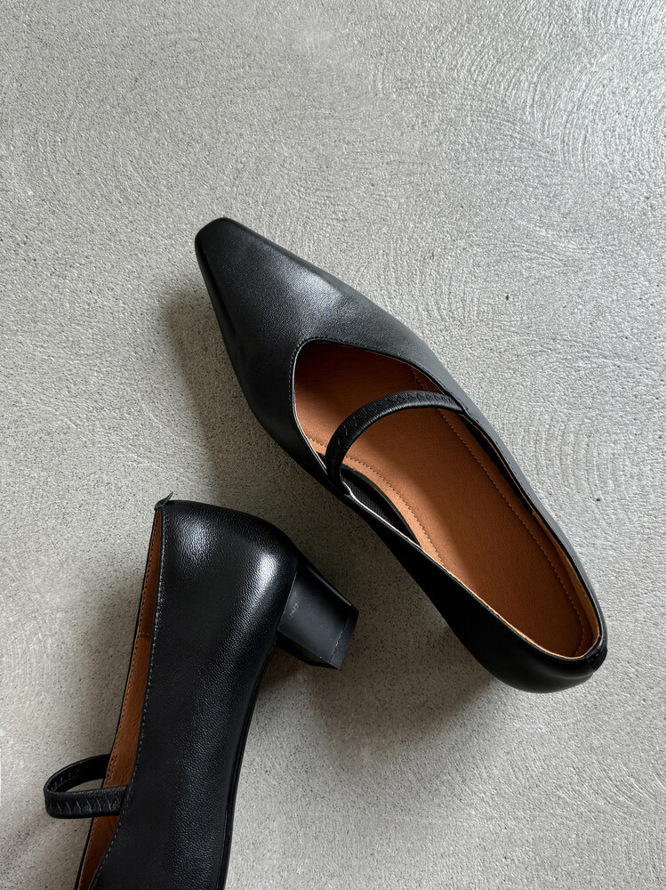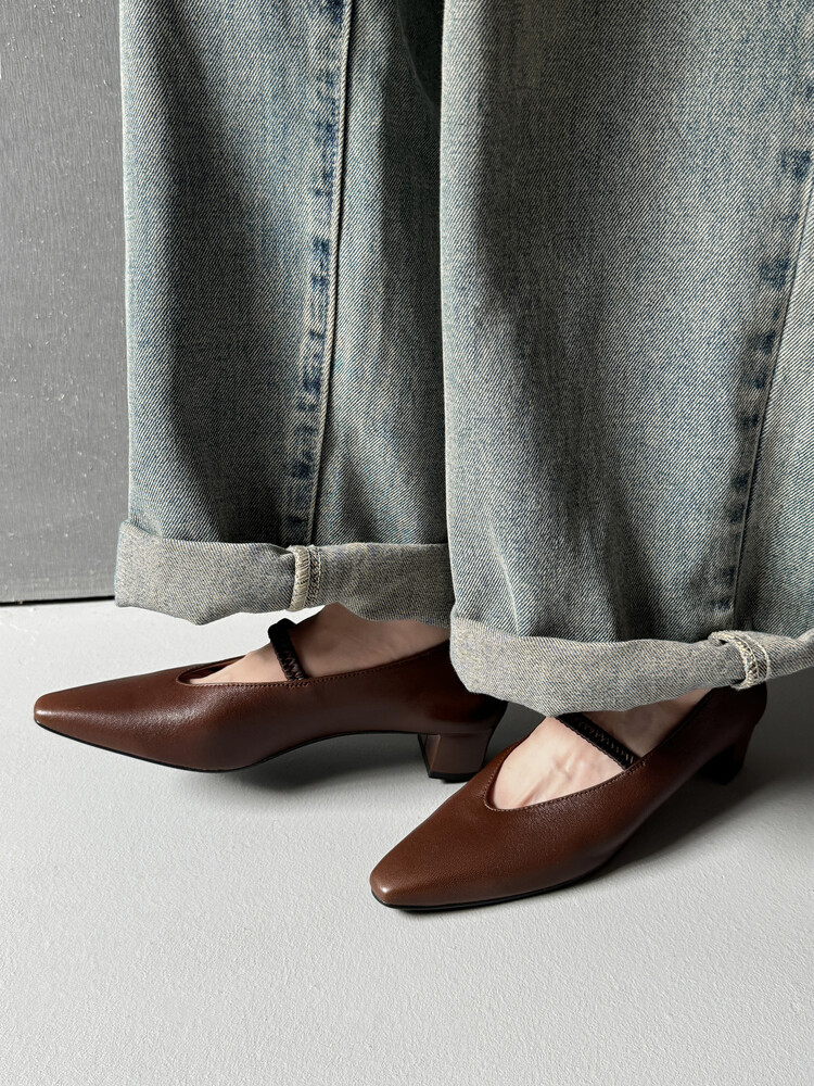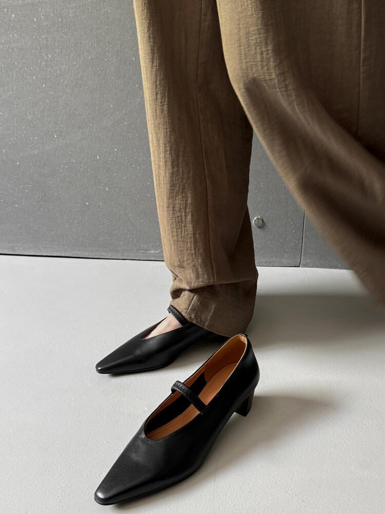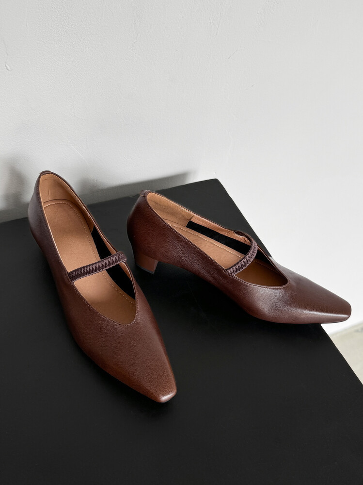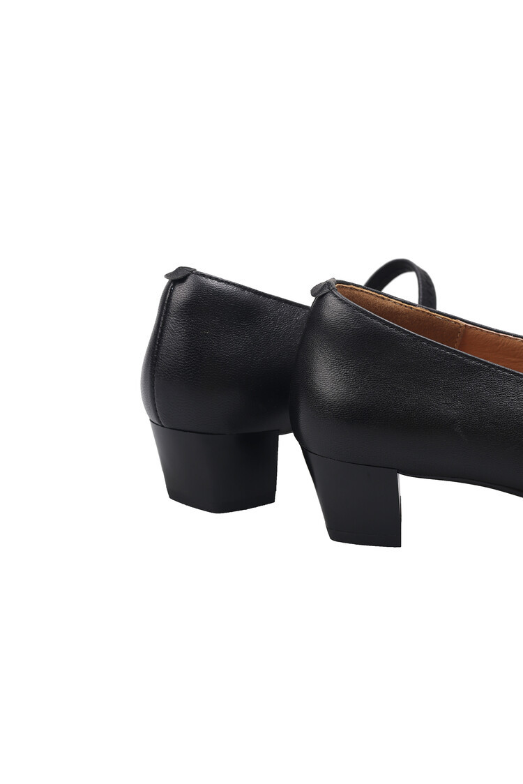 양가죽 굵은 뒤꿈치 얕은 입 단층화 여성 사각 발가락 메리 제인 신발 가을 및 겨울 신식 풀 가죽 미드 힐 신발 여성 로우 탑 신발스토어 가기