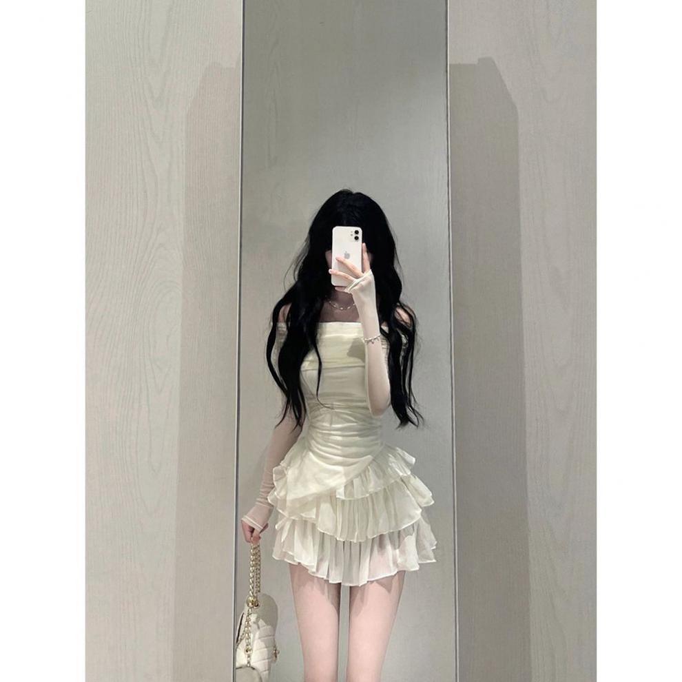 프렌치 숄더 슬림 핏 달콤하고 매운 세트 여성용 어깨 티셔츠 케이크 스커트와 함께 최고 여름복 투피스 세트