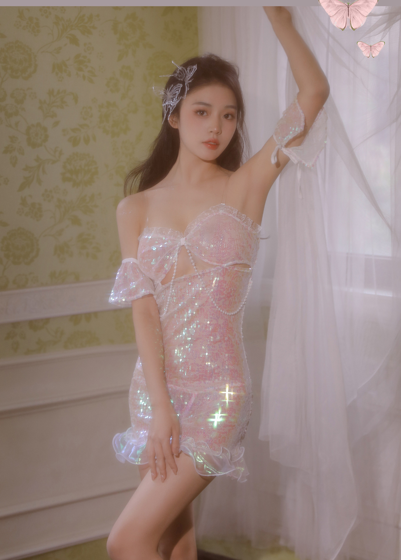 인어 요정 세트 판타지 성인 란제리 섹시한 원피스 유니폼 폴로 도트 힙합 유혹 나이트 드레스스토어 가기