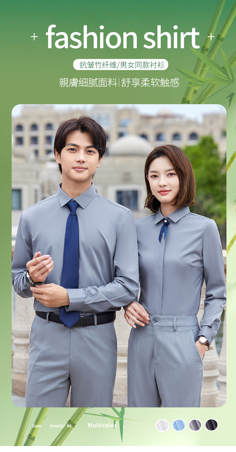 대나무 섬유 셔츠 남성 비즈니스 정장 비즈니스 의류 탄성 주름 방지 비철 작업복 셔츠 남성 다목적 비즈니스 스타일스토어 가기