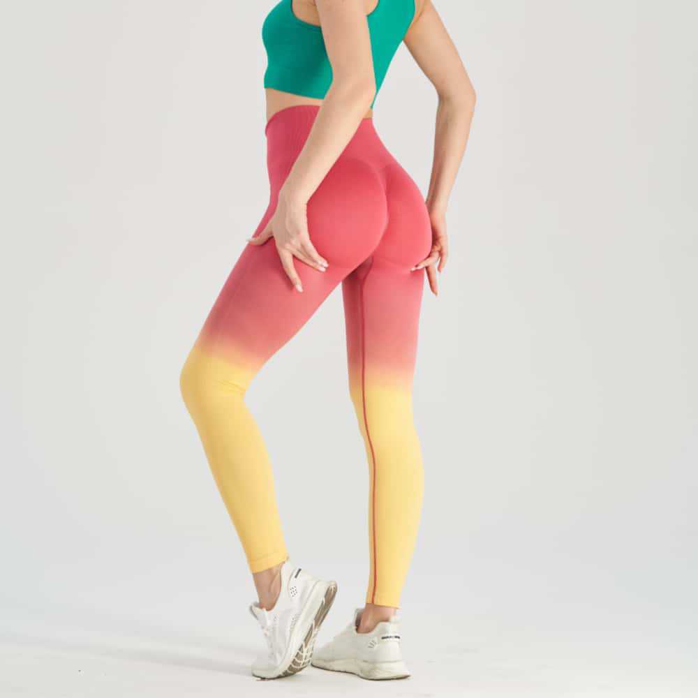 크로스보더 심리스 니트 그라데이션 피치힙 요가 힙업 타이트핏 아웃도어 하이웨이스트 스포츠 피트니스 롱팬츠