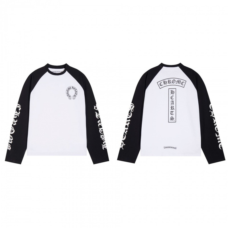 올바른 버전 23ss 패션 브랜드 남성과 여성면 큰 말굽 색상과 일치하는 라글란 긴 소매 티셔츠