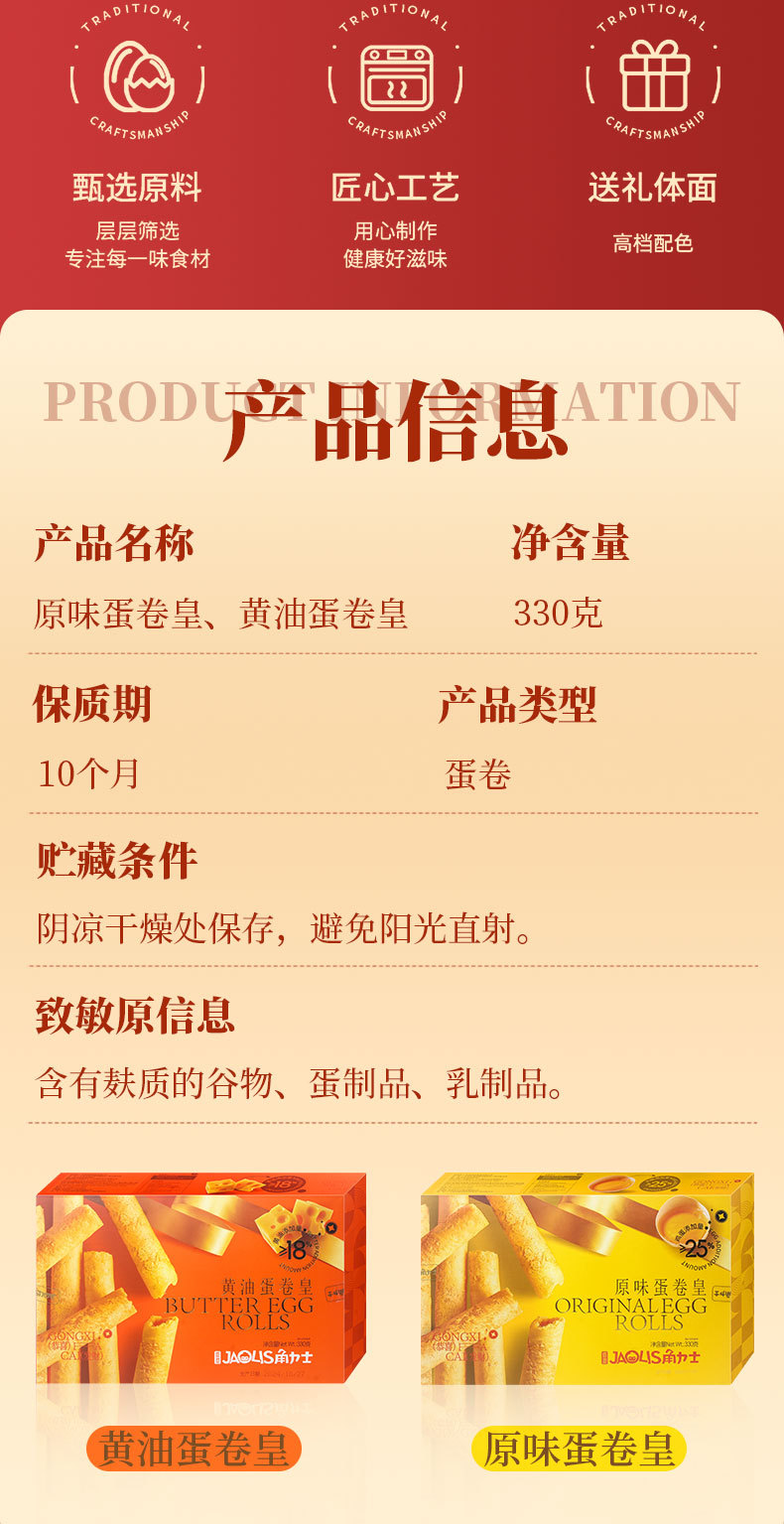 코너 리시 선물 상자 계란 롤 황제 300g 손으로 손으로 선물 케이크 비스킷 원래 버터 맛 새해 선물 상자 도매스토어 가기