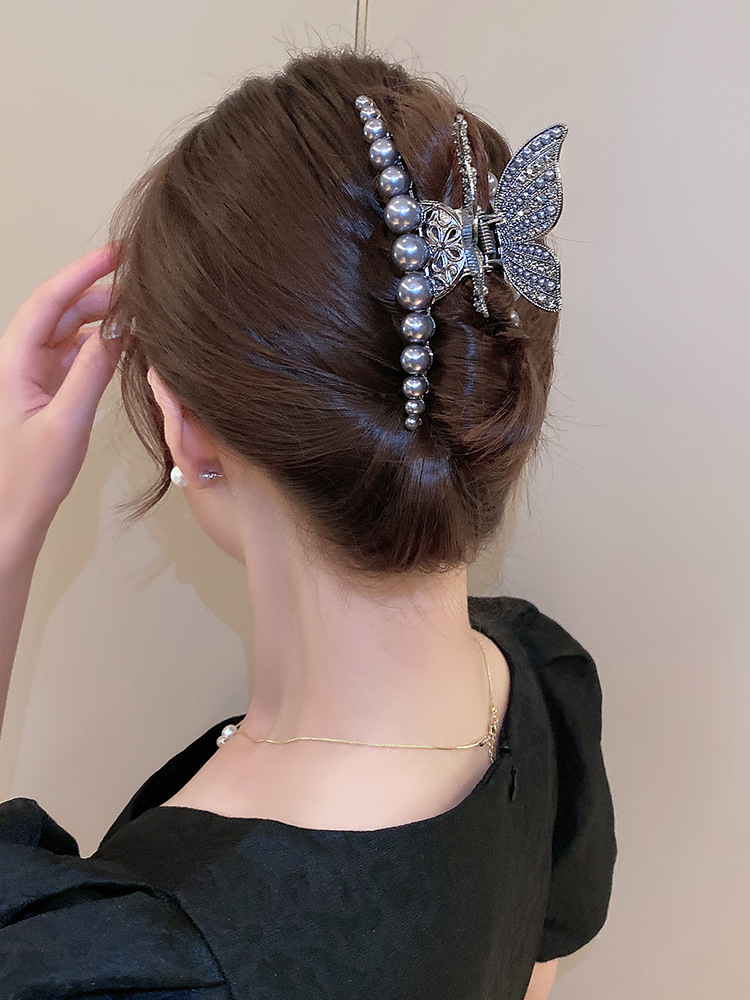 하이 엔드 펄 그랩 클립 여성의 2024 새로운 등 머리 머리 상어 클립 헤드폰 대형 우아한 헤어핀스토어 가기