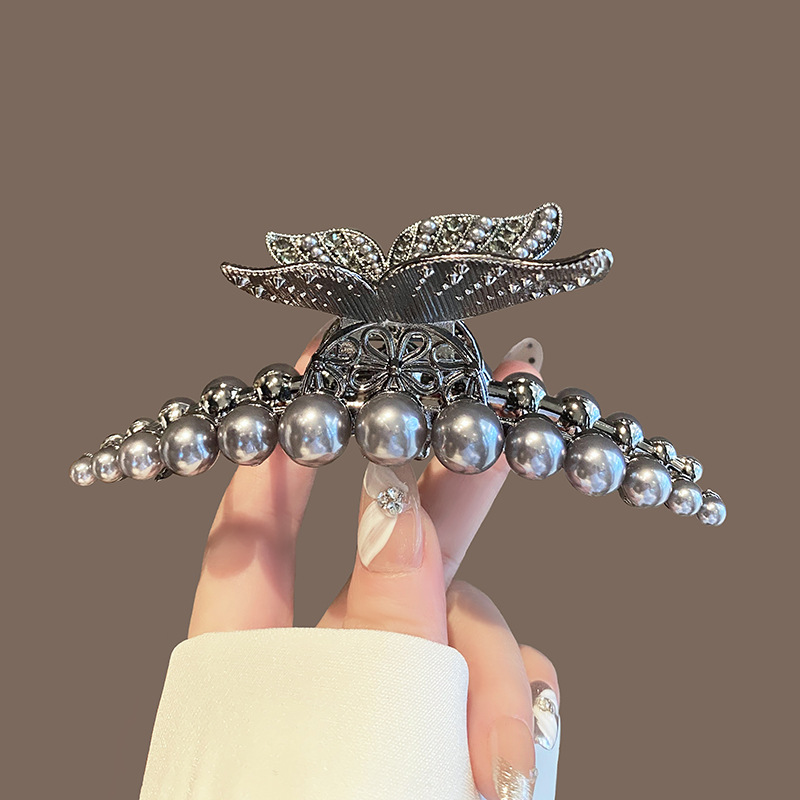 하이 엔드 펄 그랩 클립 여성의 2024 새로운 등 머리 머리 상어 클립 헤드폰 대형 우아한 헤어핀