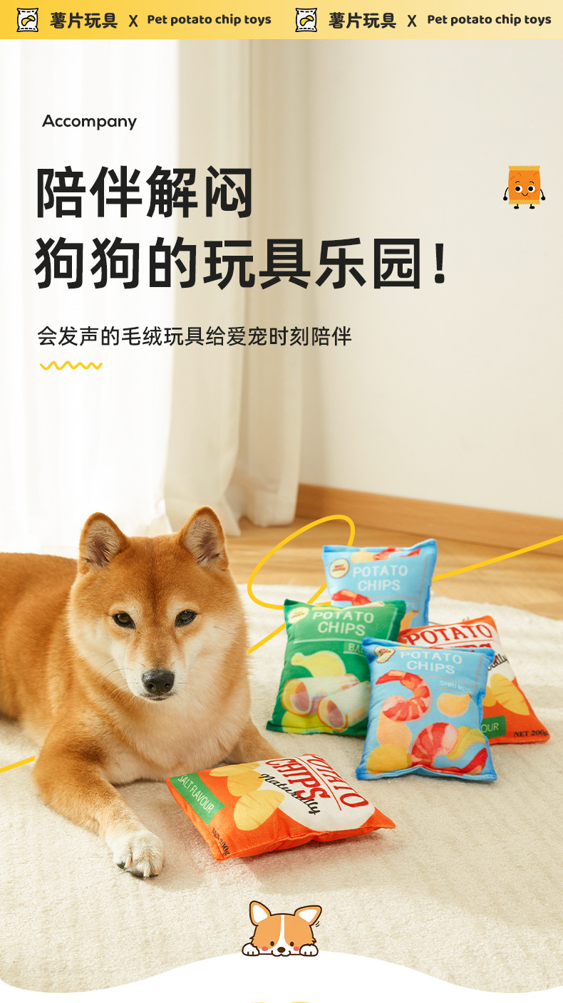 애완 동물 시뮬레이션 감자 칩 애완 동물 소리 장난감 자기 안녕 장난감 중소 개 애완 동물 장난감 재고 도매