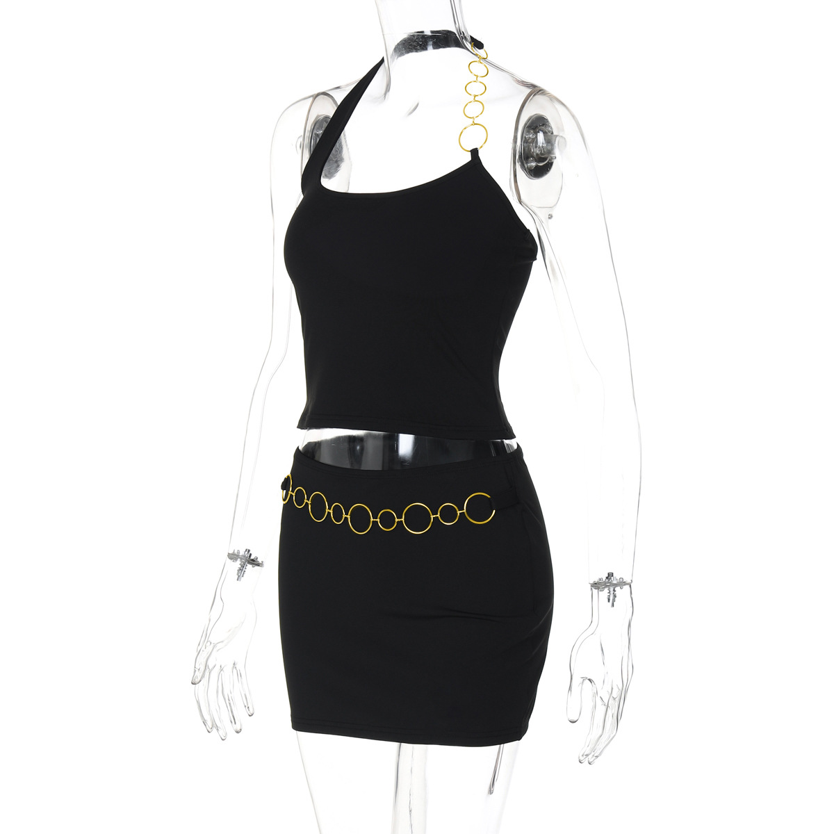 대외 무역 가을 여성 의류 새로운 패션 거리 스타일 핫 소녀 체인 목 랩 가슴 울트라 짧은 섹시한 치마 세트