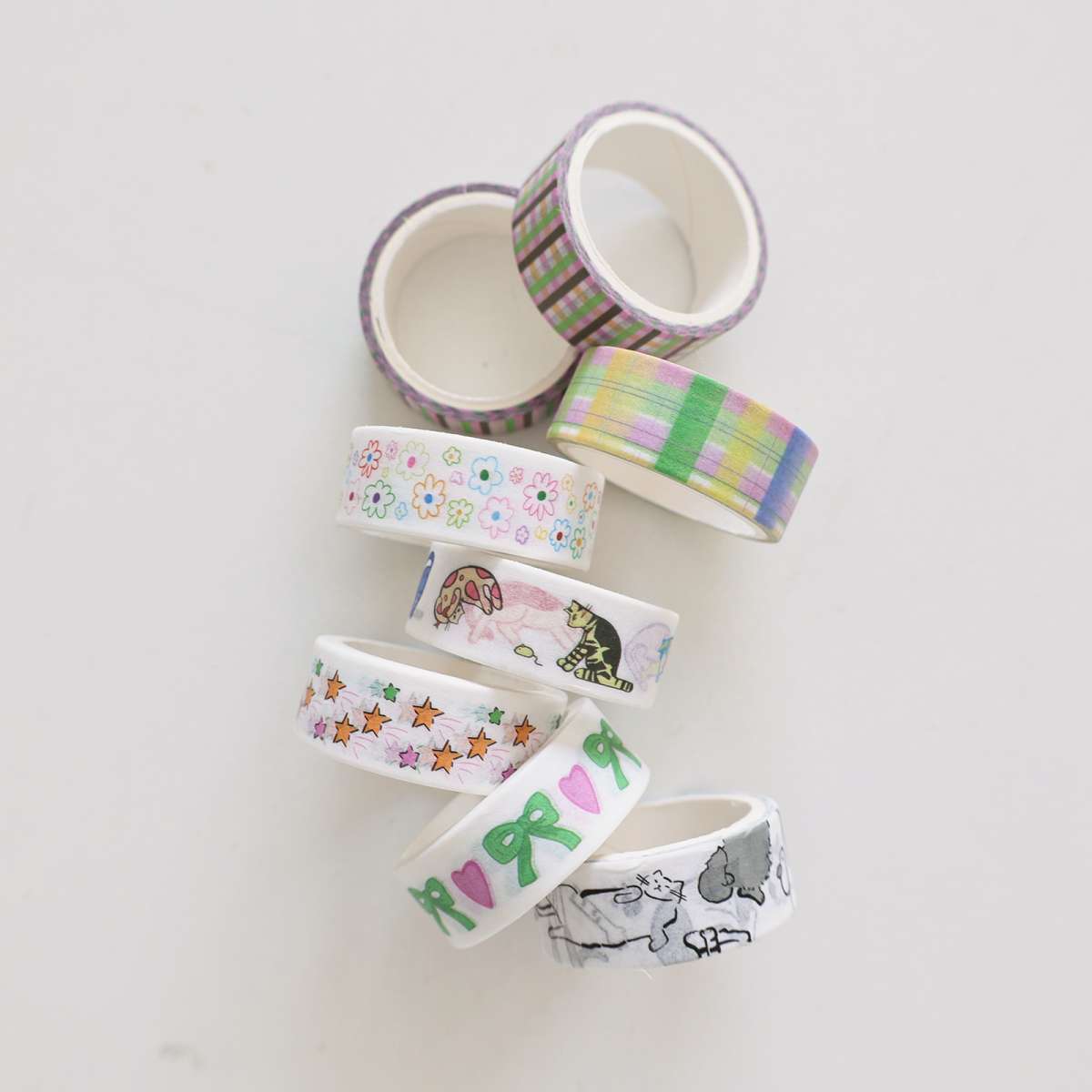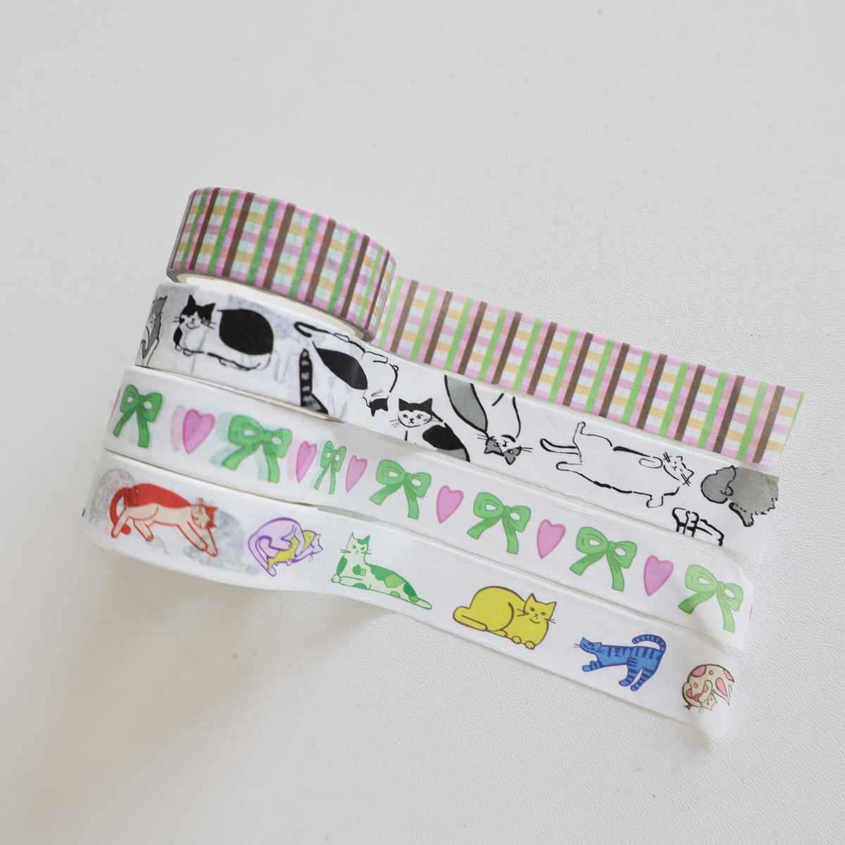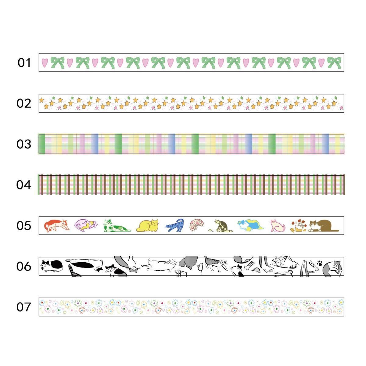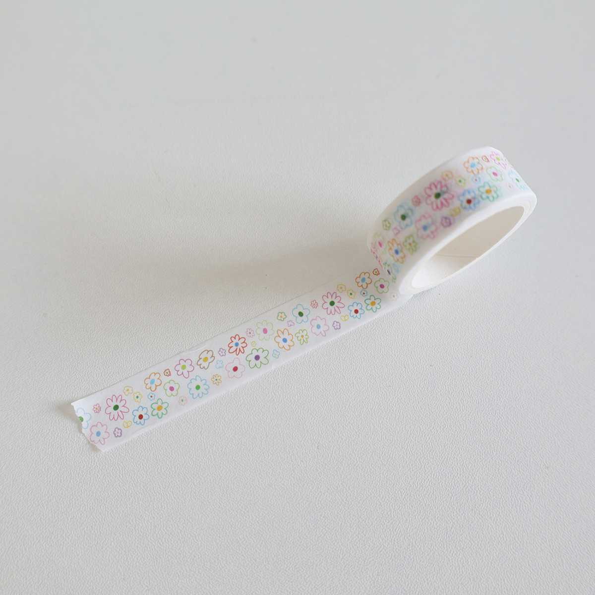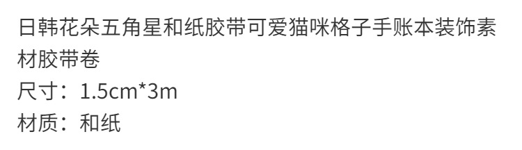 일본과 한국의 꽃 다섯개 별 및 종이 테이프 귀여운 고양이 격자 무늬 손 책 장식 재료 테이프 롤
