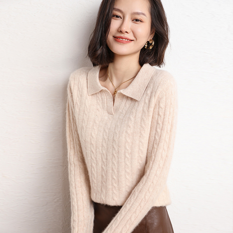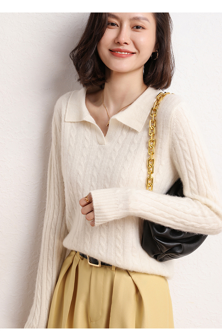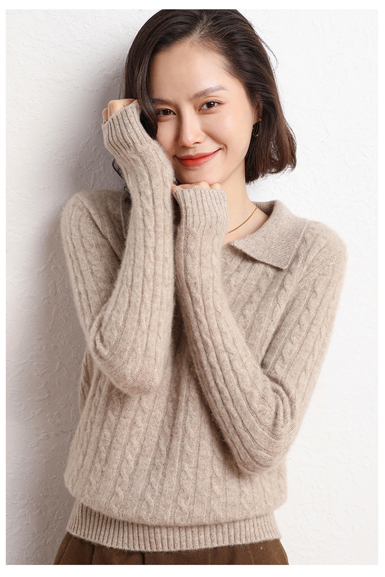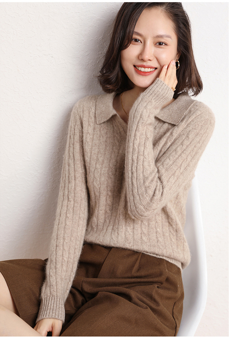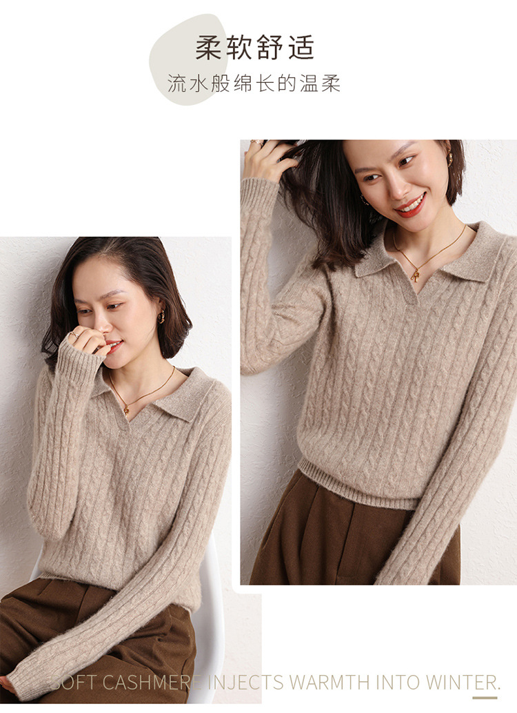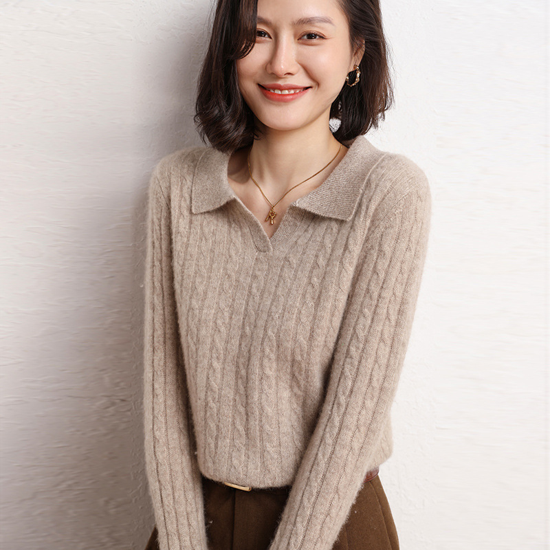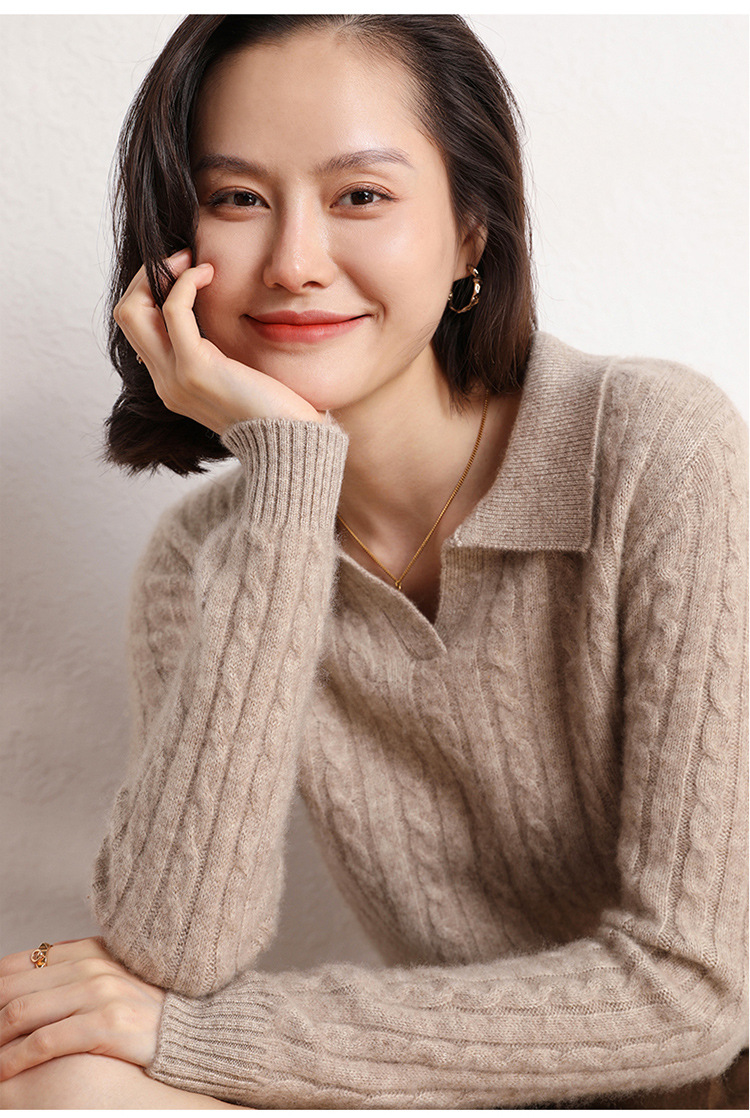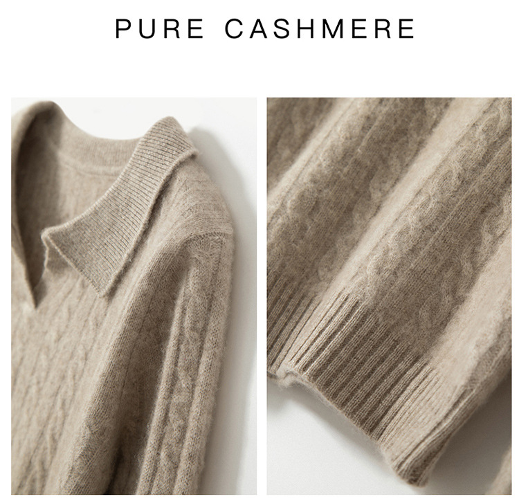 오르도스시 POLO 카라 캐시미어 스웨터 여성용 100% 캐시미어 카라 루즈핏 트위스트 니트 스웨터 긴팔스토어 가기