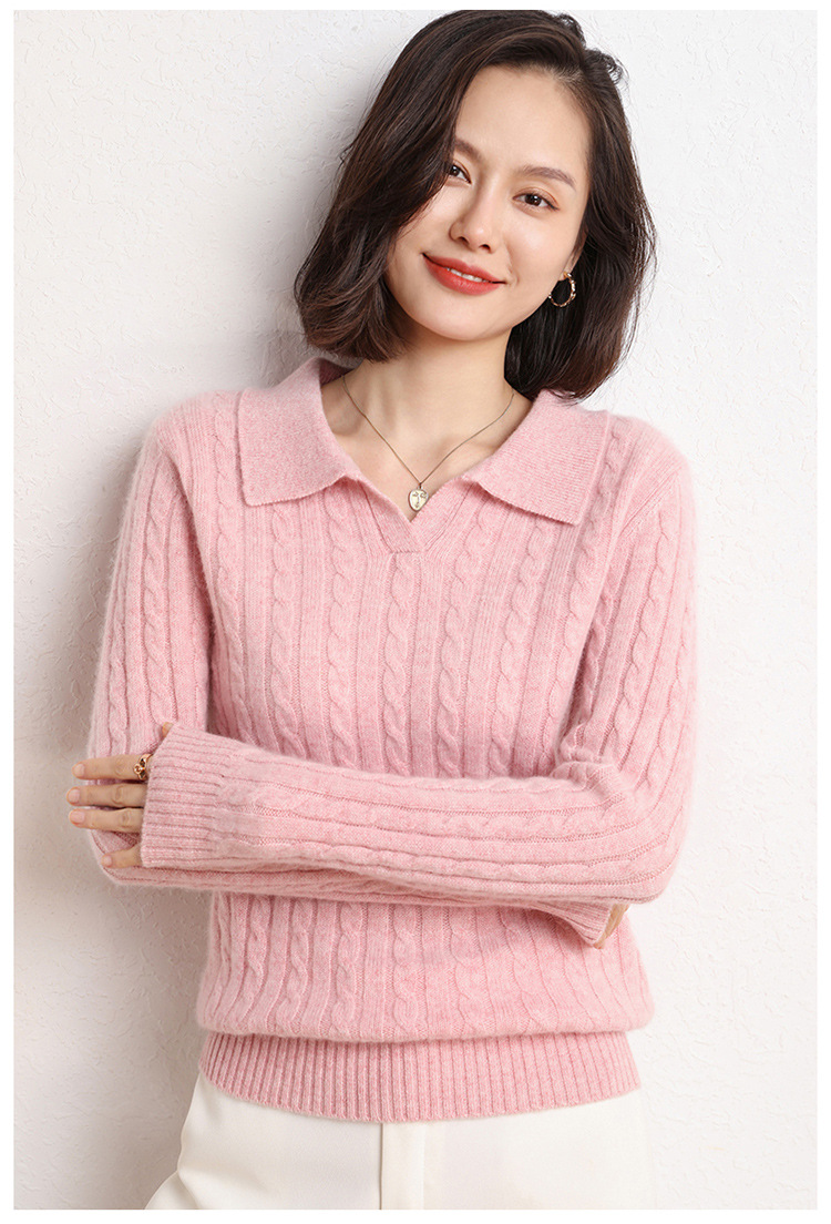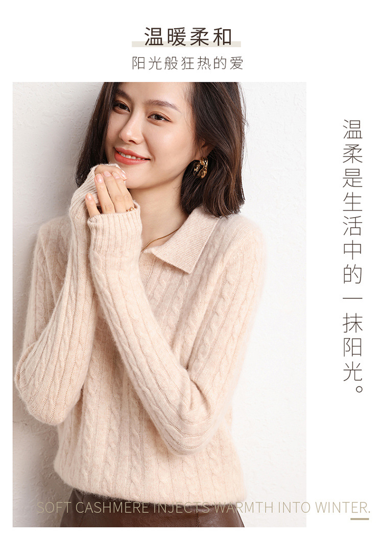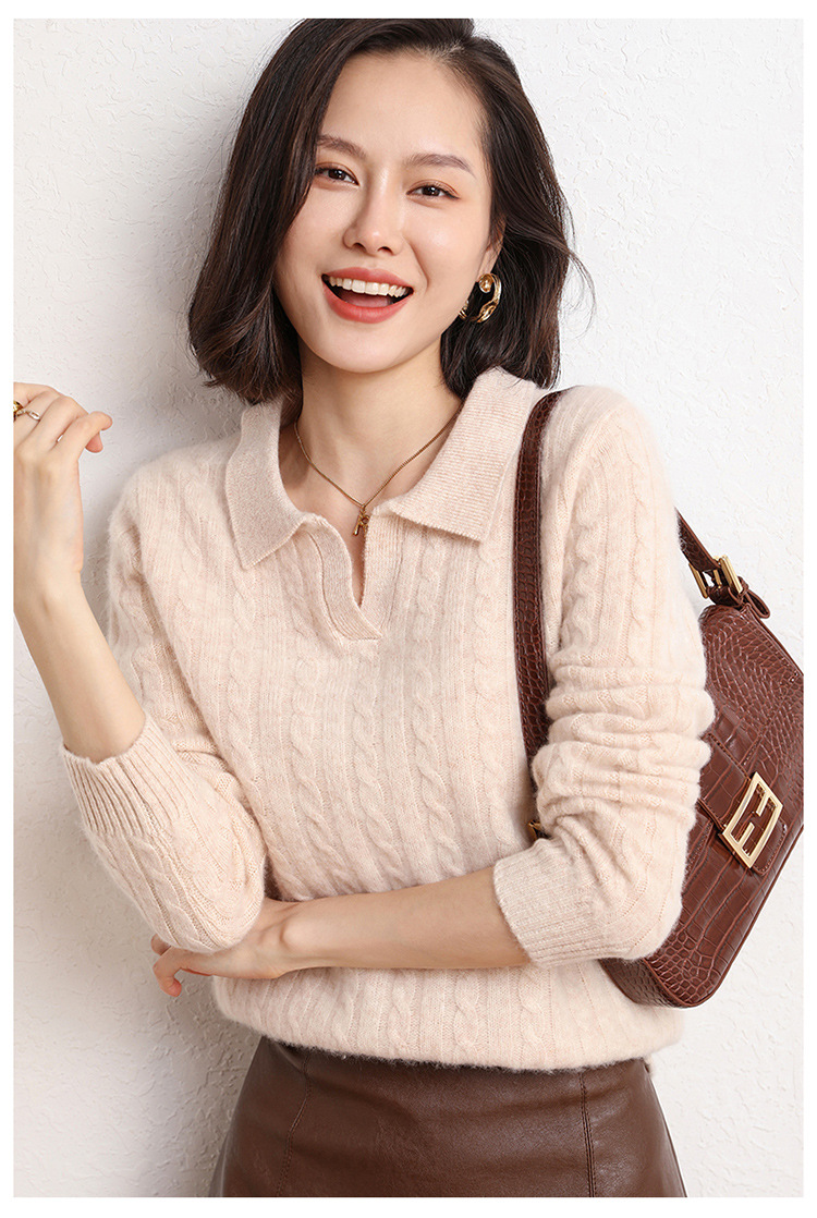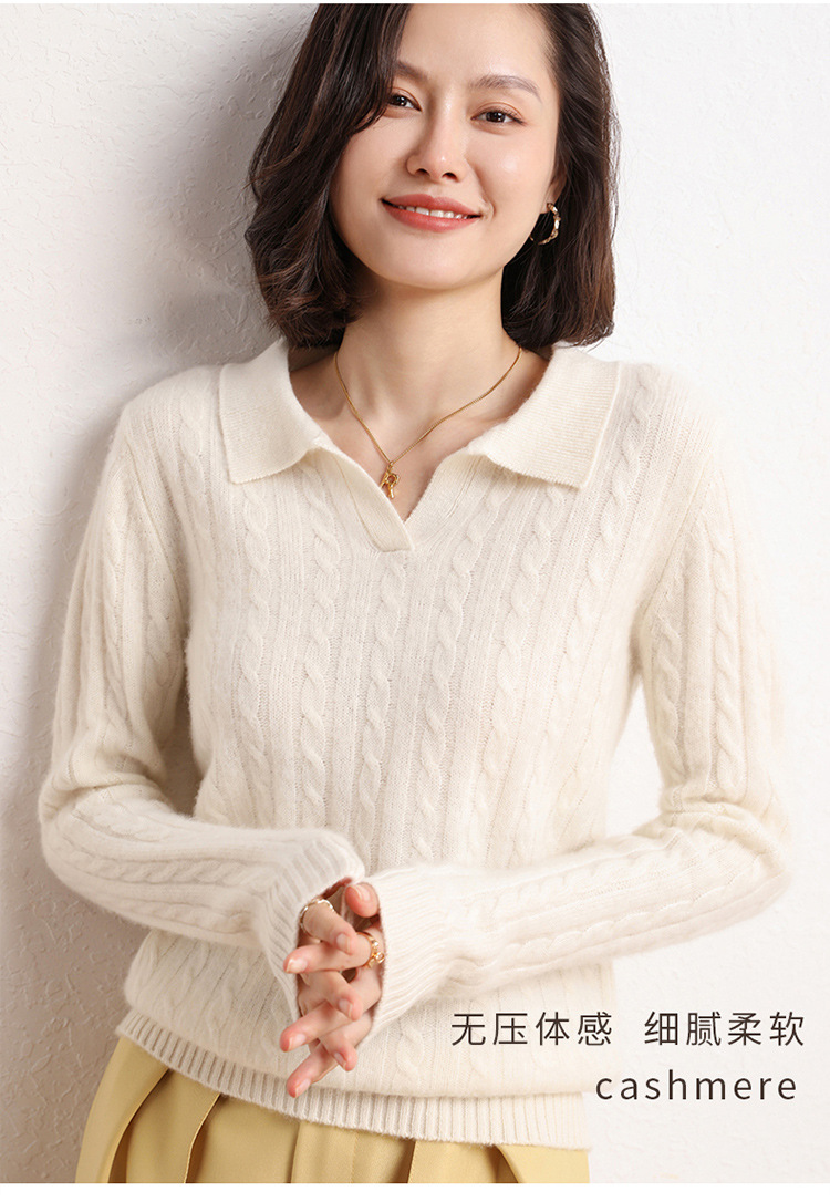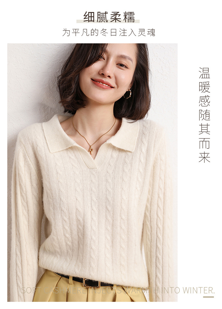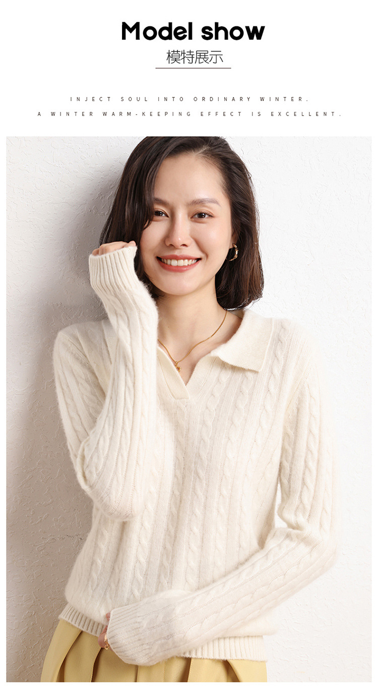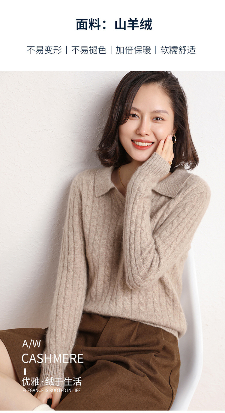 오르도스시 POLO 카라 캐시미어 스웨터 여성용 100% 캐시미어 카라 루즈핏 트위스트 니트 스웨터 긴팔스토어 가기