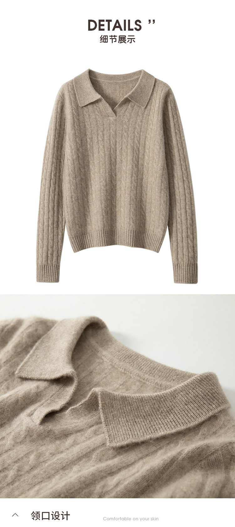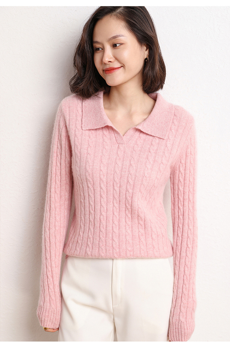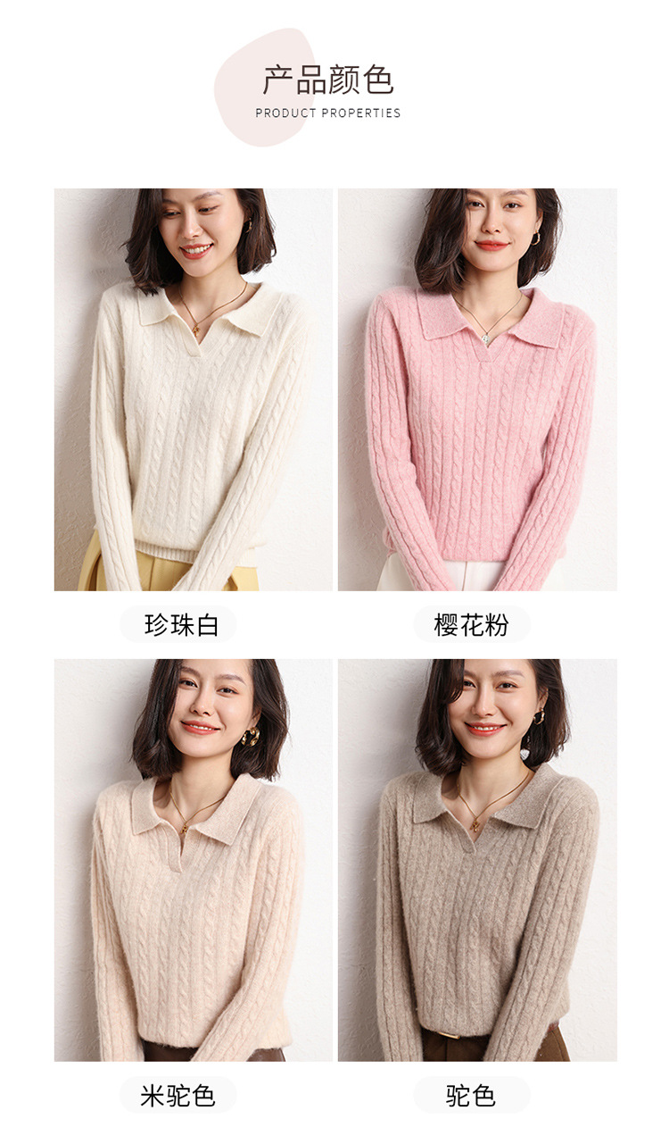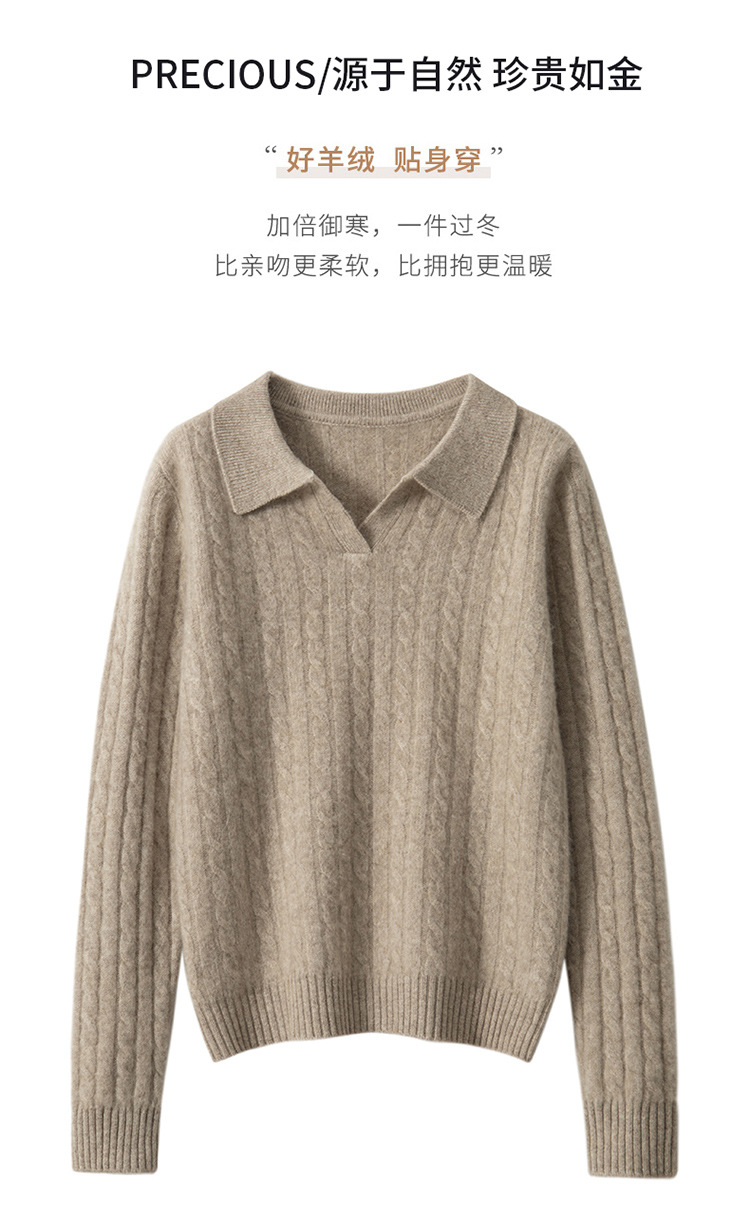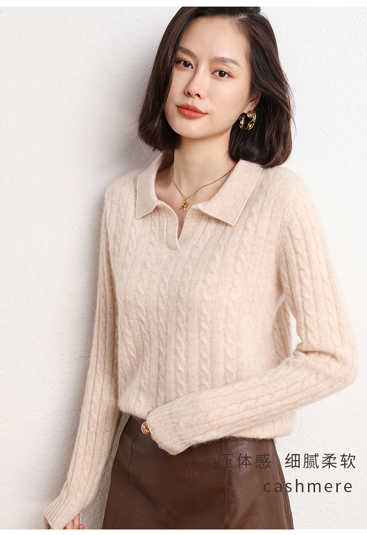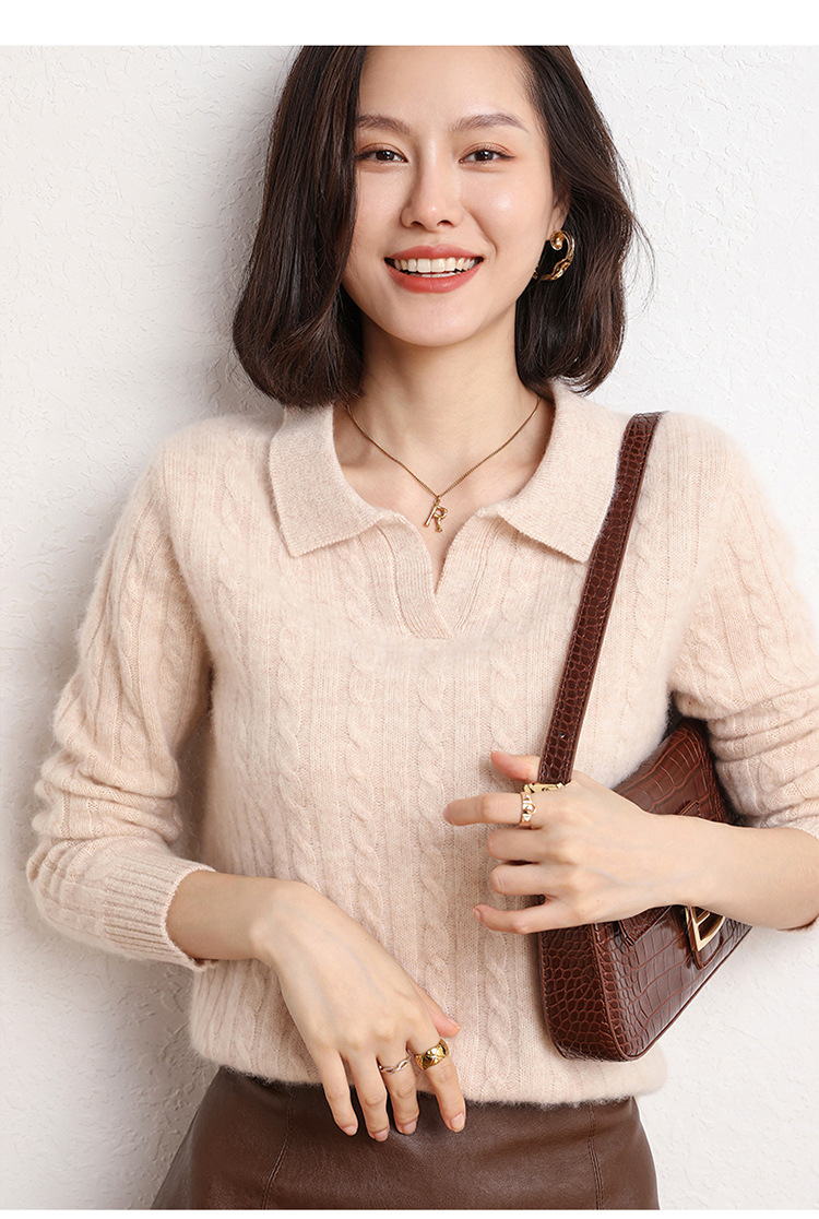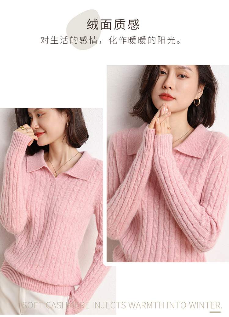 오르도스시 POLO 카라 캐시미어 스웨터 여성용 100% 캐시미어 카라 루즈핏 트위스트 니트 스웨터 긴팔스토어 가기