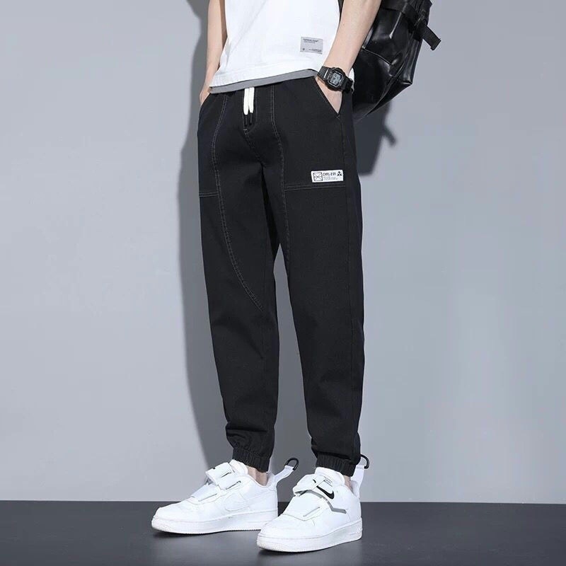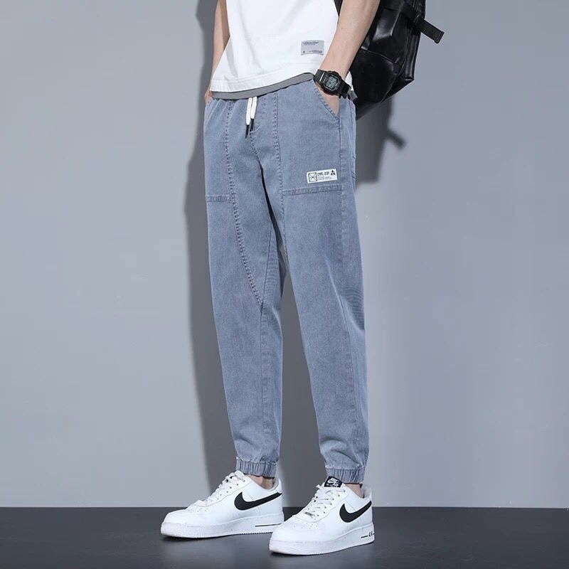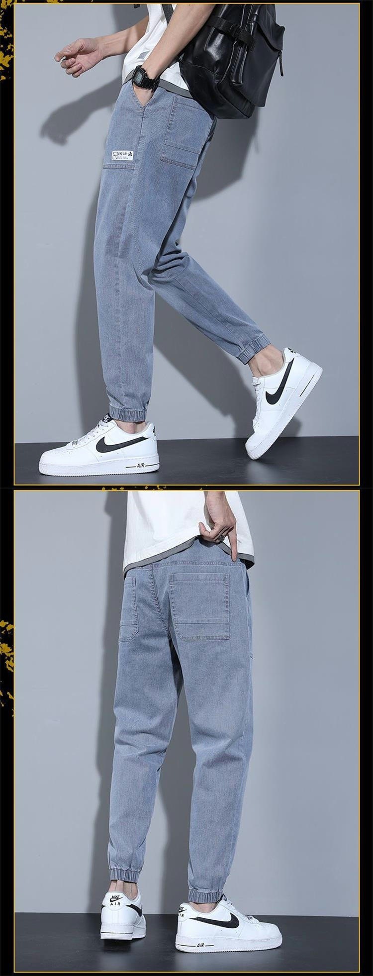 도매 탄성 허리 청바지 남성용 느슨한 발가락 자른 바지 여름 여름 얇은 캐주얼 바지 패션 브랜드 하렘 바지스토어 가기