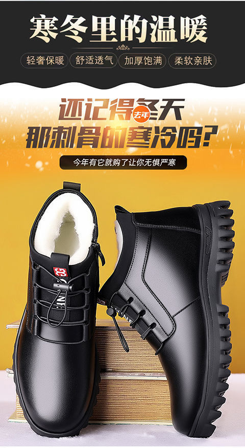 남성용 겨울 따뜻한 기모 하이 허리 가죽 남성용 신발 패딩 스노우 부츠 남성용 푸 가죽 남성용 비즈니스 코튼 가죽 신발스토어 가기