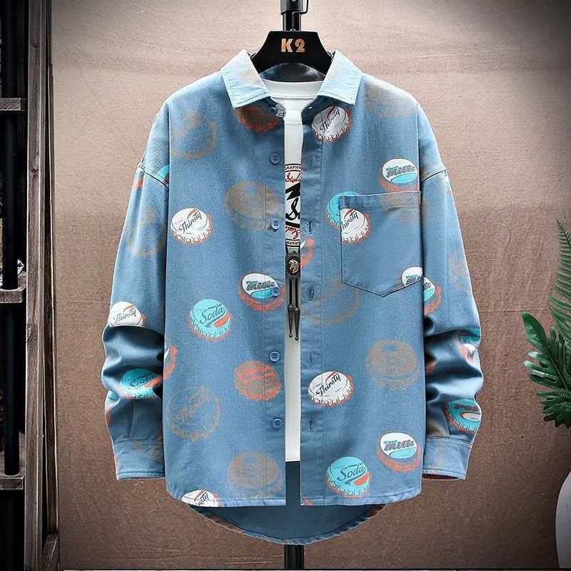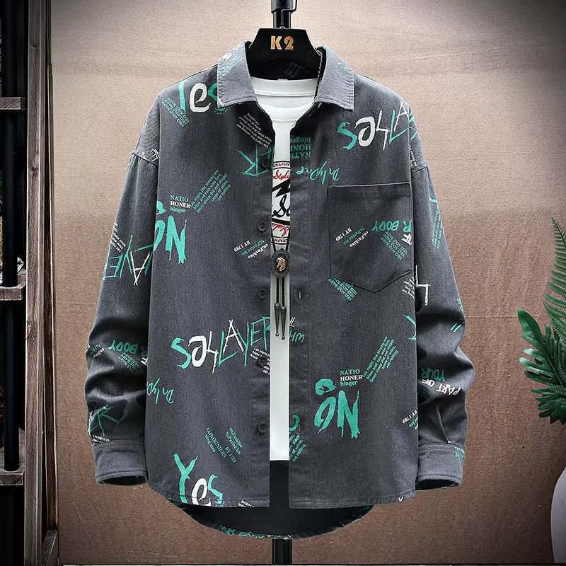 긴팔 셔츠 남성용 초봄, 가을 2022 새로운 복고풍 홍콩 스타일 흑백 꽃무늬 셔츠 루즈한 얇은 긴팔 셔츠 트렌디스토어 가기