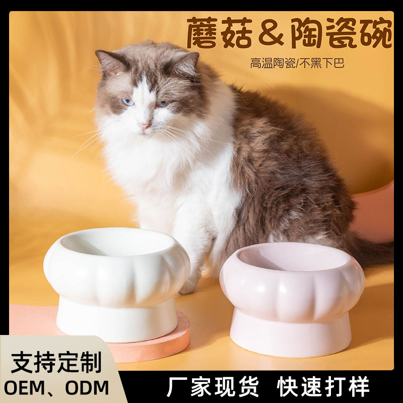 고양이 버섯 세라믹 안티 블랙 턱 자궁 경부 척추 그릇 고양이 음료 안티 노크 애완 동물 그릇 제조 업체 도매스토어 가기