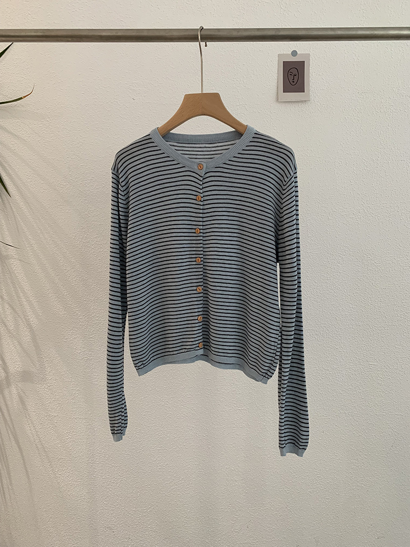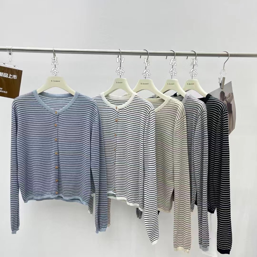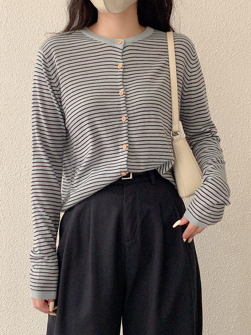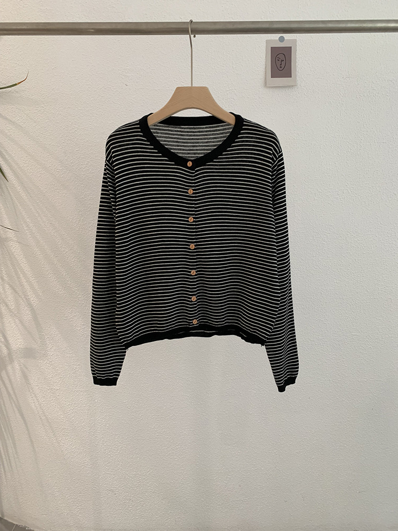 가을 느슨한 둥근 목 다재다능한 부드럽고 섬세한 스웨터 재킷 한국식 여성 의류 대조 컬러 줄무늬 니트 카디건