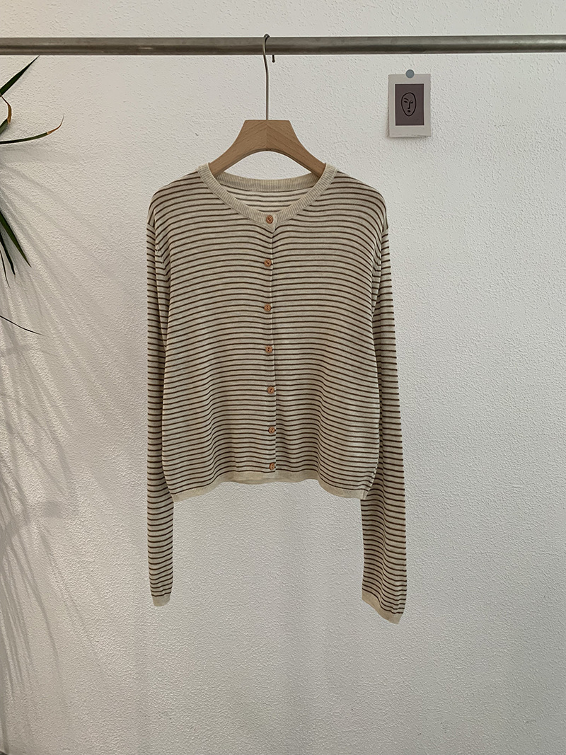 가을 느슨한 둥근 목 다재다능한 부드럽고 섬세한 스웨터 재킷 한국식 여성 의류 대조 컬러 줄무늬 니트 카디건스토어 가기