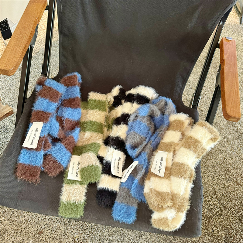 떨어지는 수영장 니트 ~ 모피 스트라이프 좁은 판 작은 스카프 분위기 모든 경기 맞춤형 y2k 색상 일치 여성 한국 스택 웨어스토어 가기