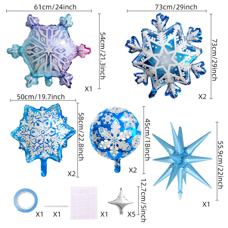 产品名称:雪花铝膜气球套装圣诞节儿童周岁派对冰雪奇缘节日装饰拍照道具