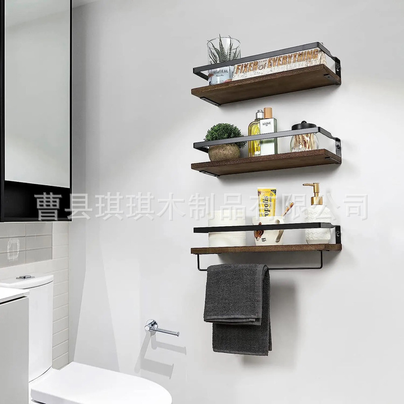 벽걸이 형 랙 가정용 욕실 벽 보관 랙 빈티지 벽 장착 타월 랙 단철 나무 랙