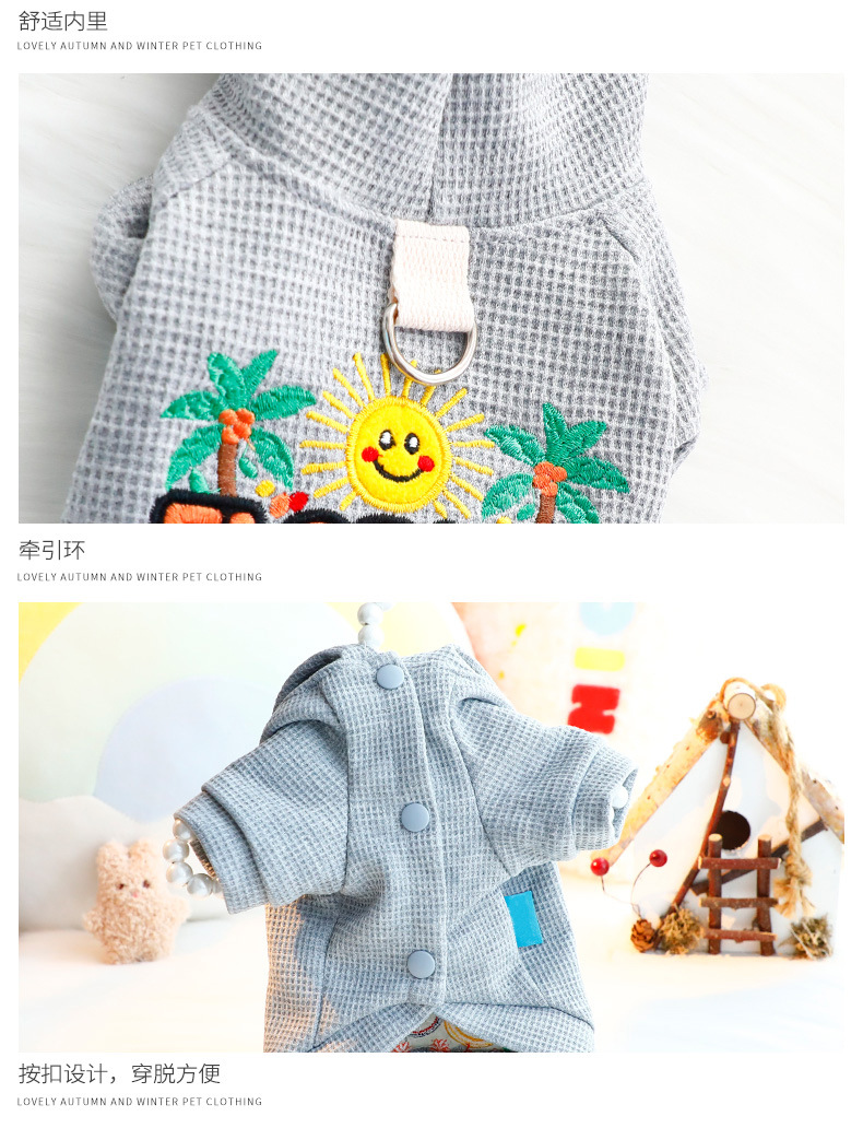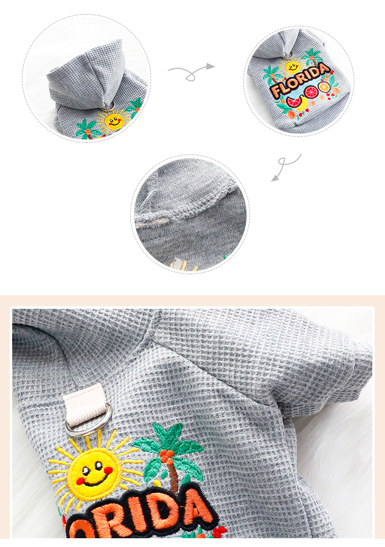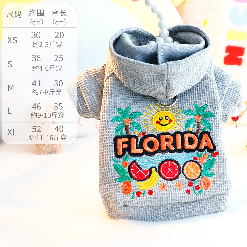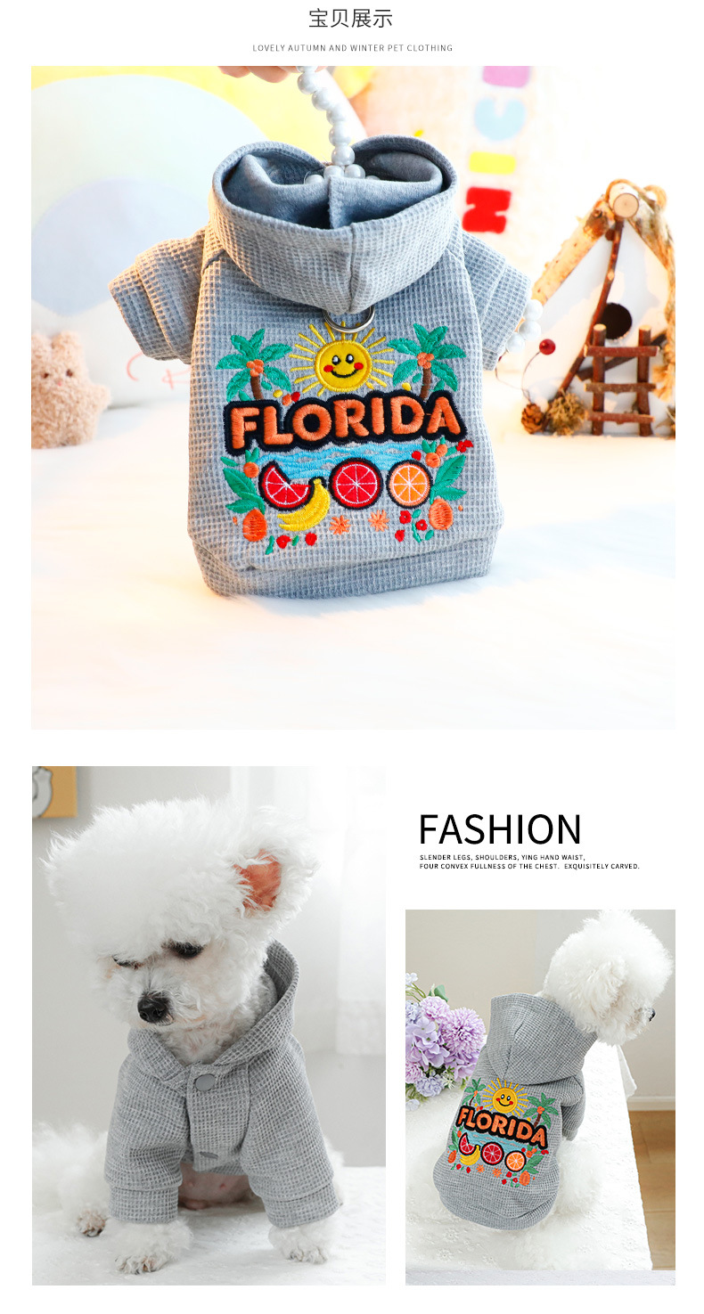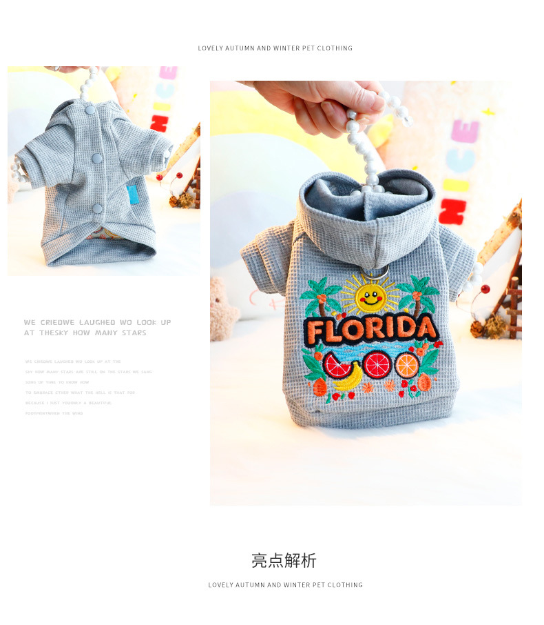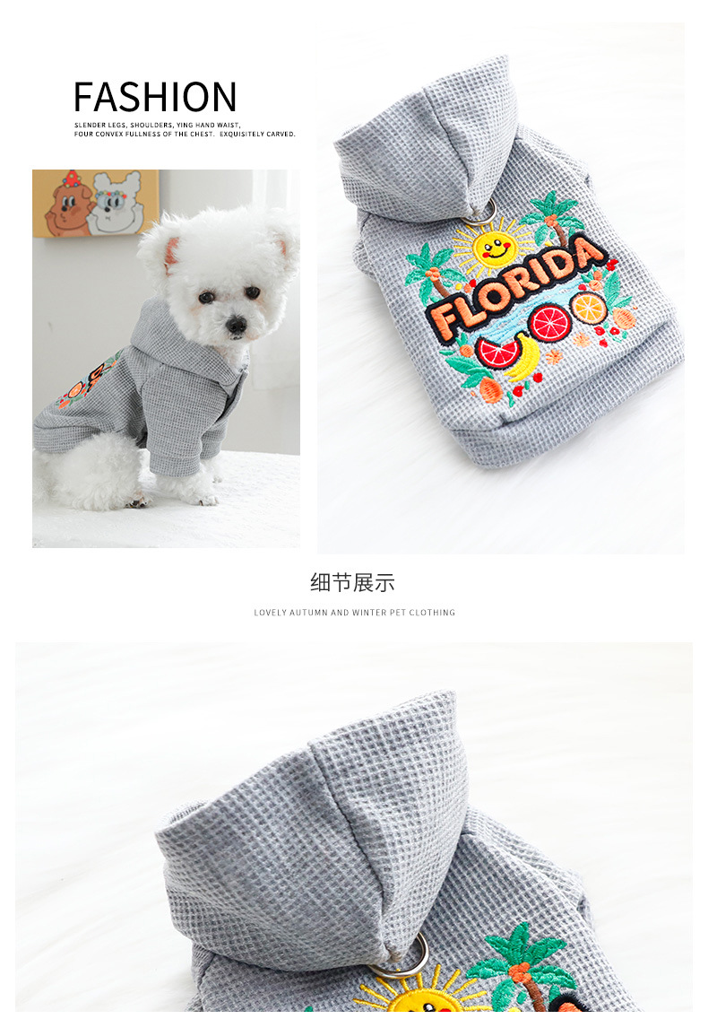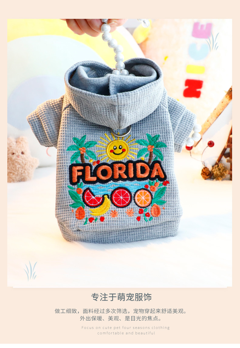 개 옷 봄과 가을 고양이 달콤한 오렌지 플로리다 후드 자수 스웨터 견인 작은 개 테디 애완 동물 6223스토어 가기