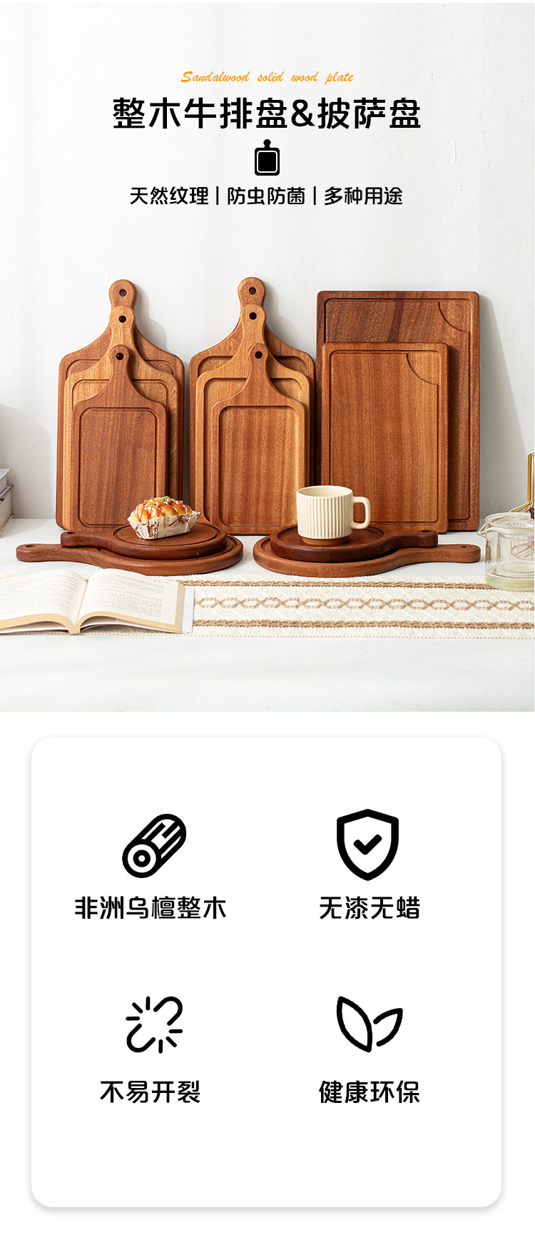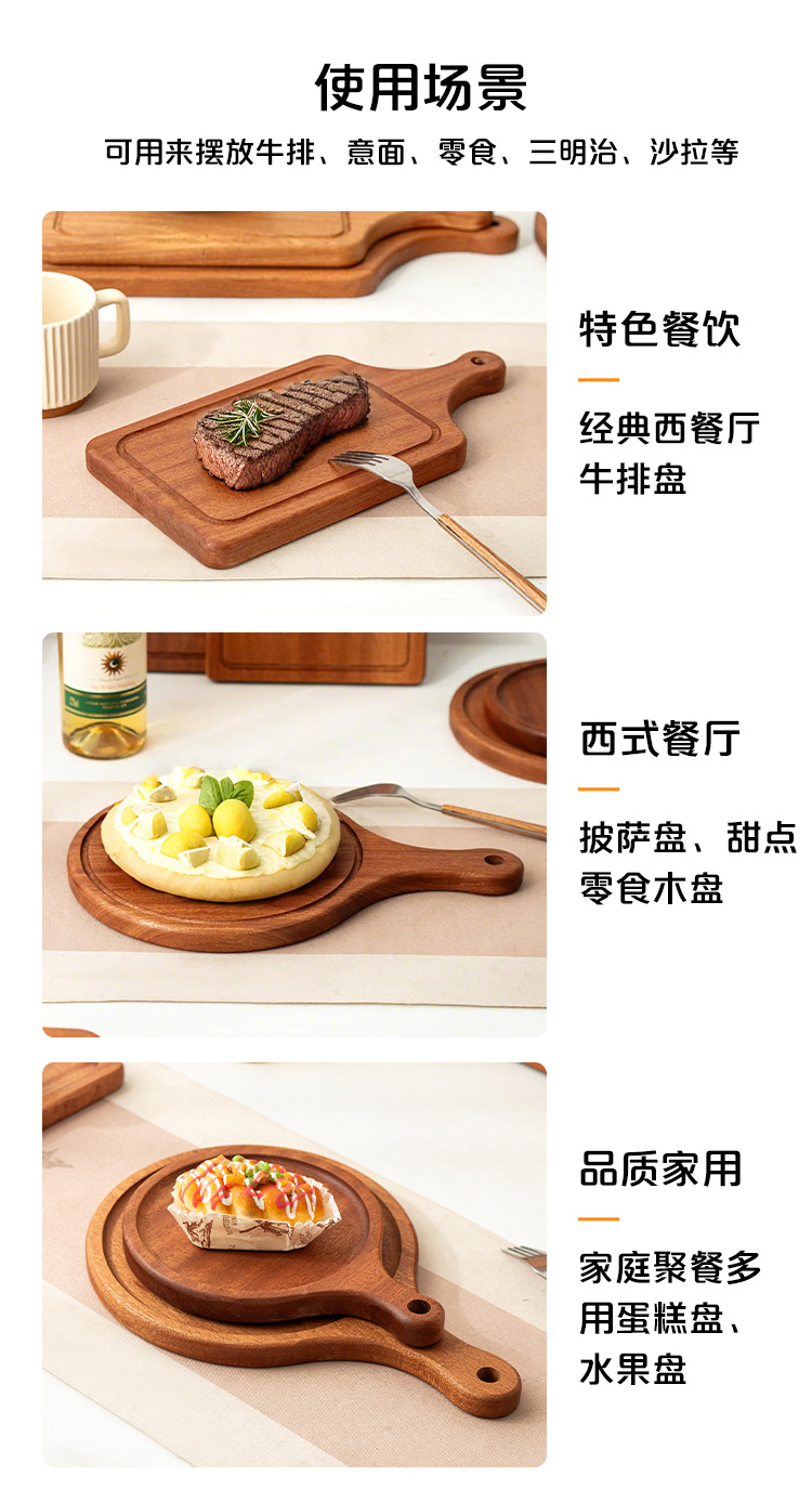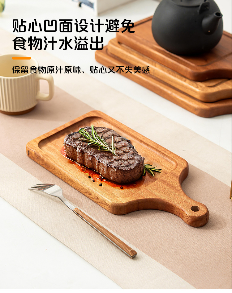 솔리드 우드 스테이크 보드 웨스턴 레스토랑 디너 플레이트 나무 피자 플레이트 스테이크 보드 식기 나무 도마 트레이 웨스턴 푸드 플레이트
