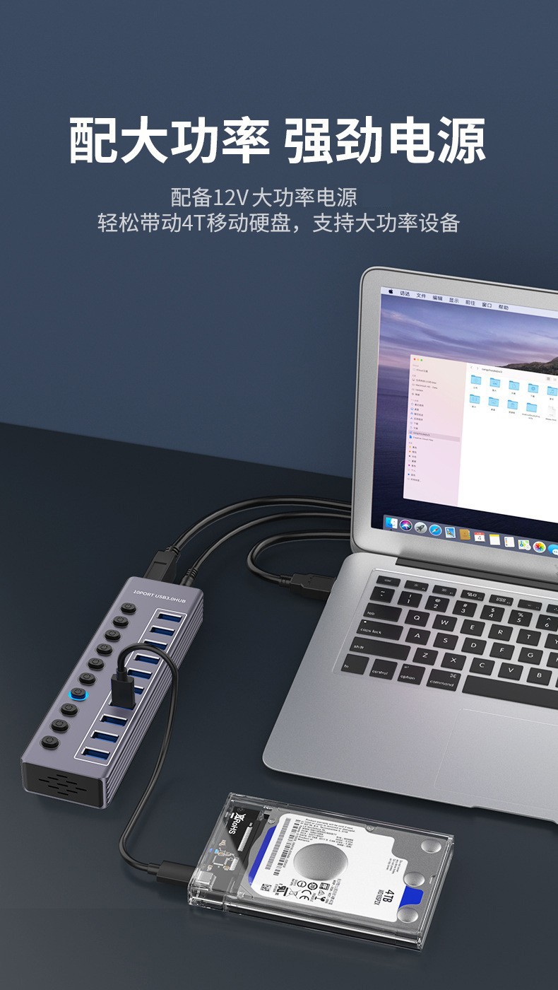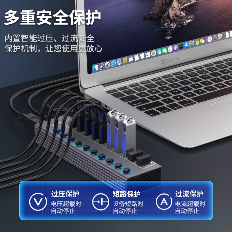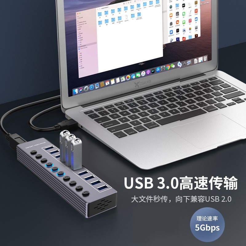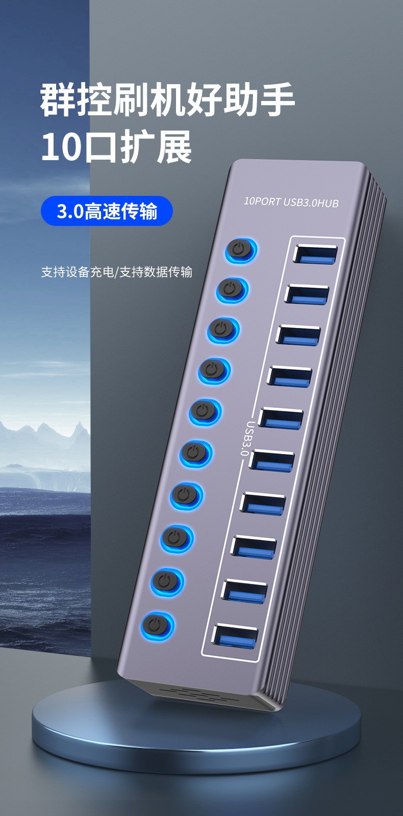 USB3.0HUB10 표시기 노트북 3.0USB 허브 컬렉터가있는 스플리터 독립 스위치스토어 가기