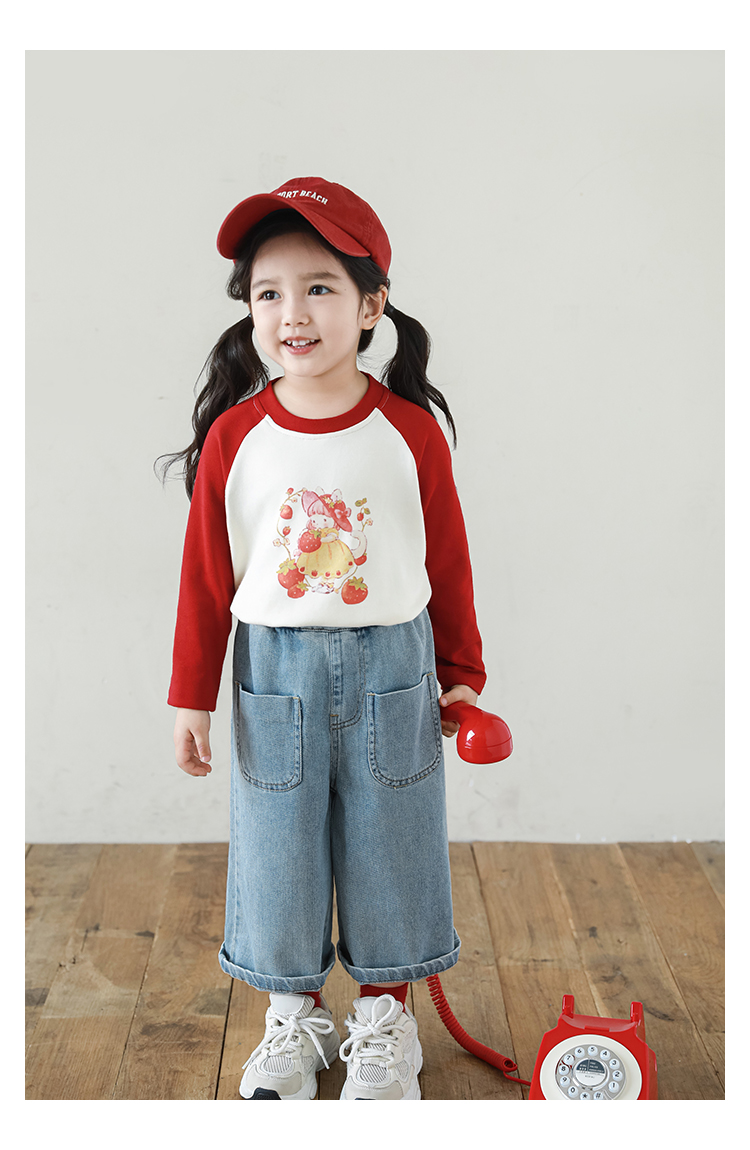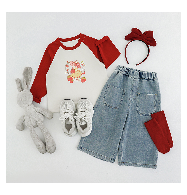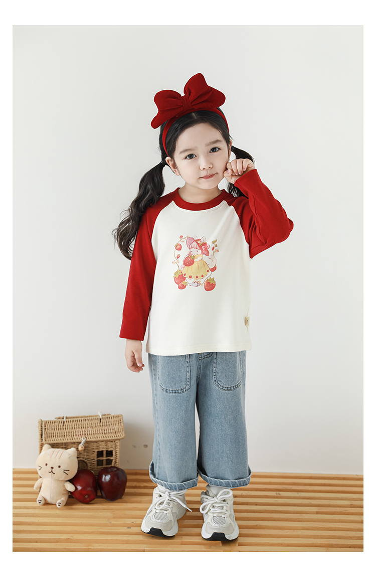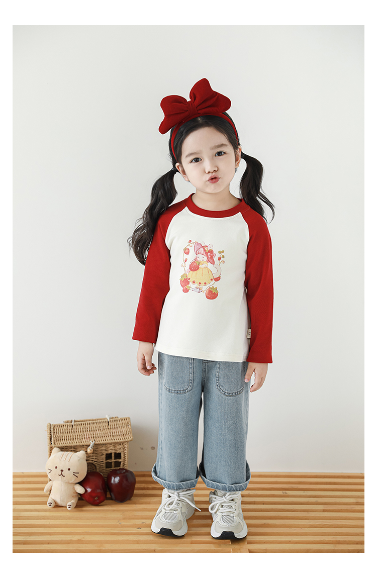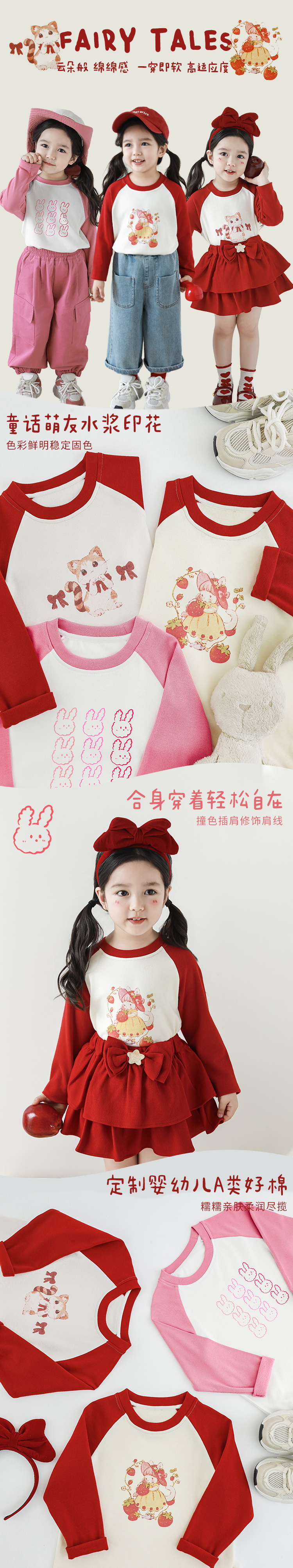 내 갈비뼈 소녀의 명암 Raglan 소매 티셔츠 가을 새 어린이 귀여운 귀여운 인쇄 느슨한 캐주얼 티셔츠스토어 가기