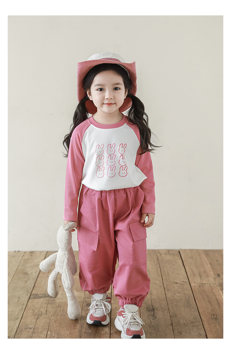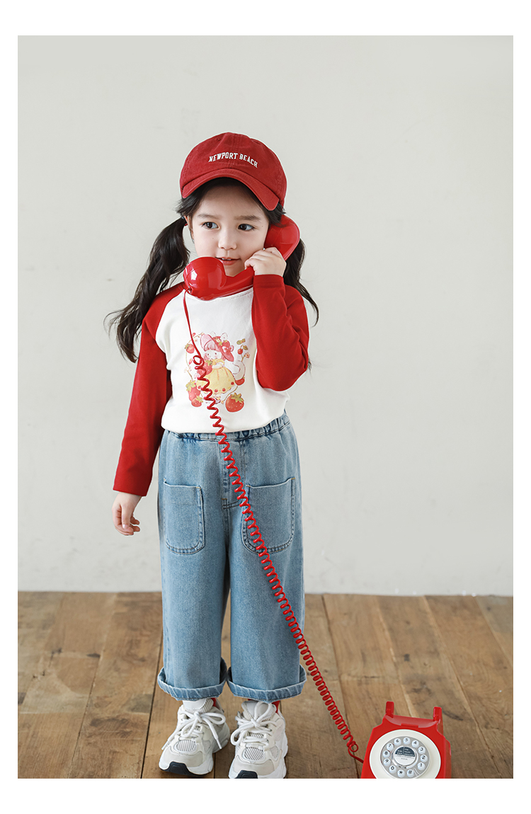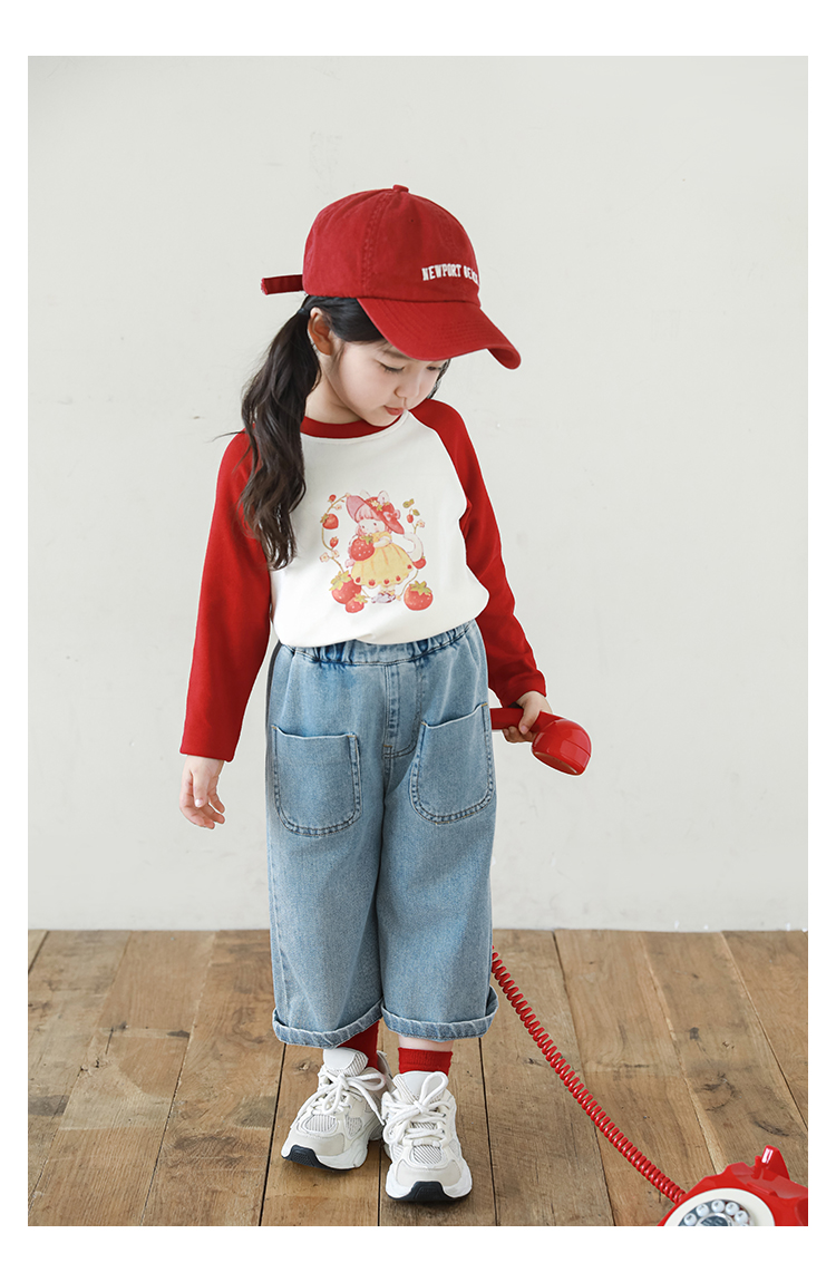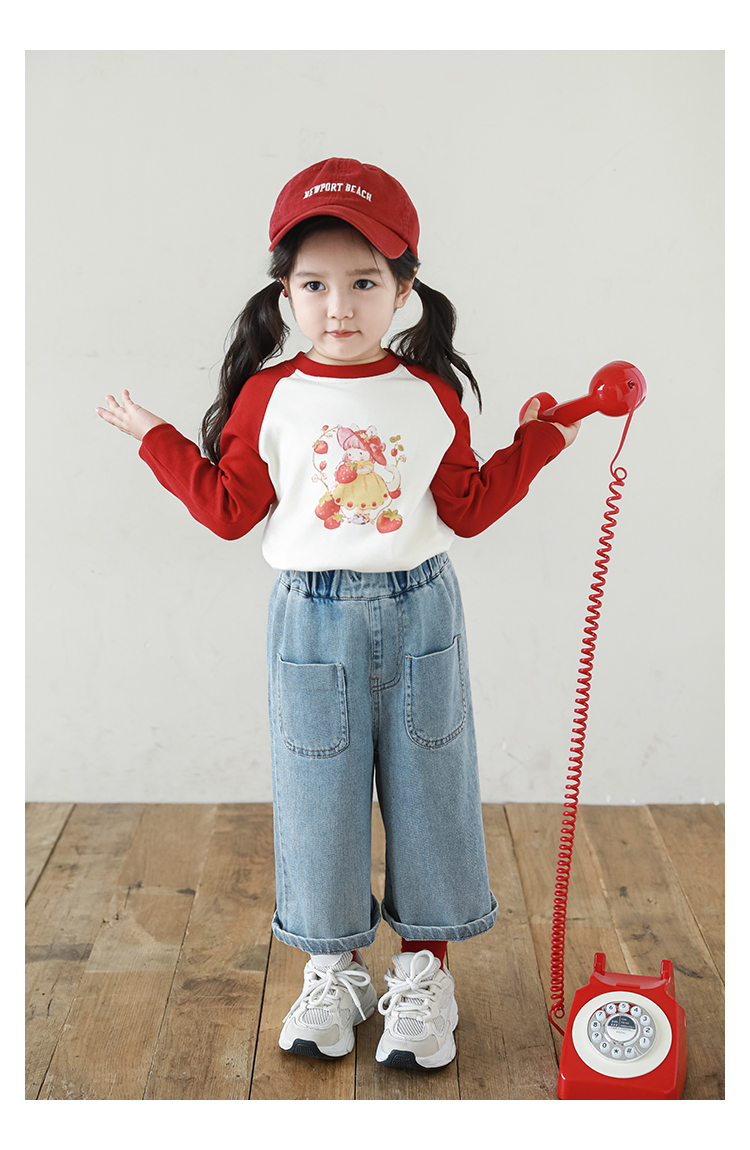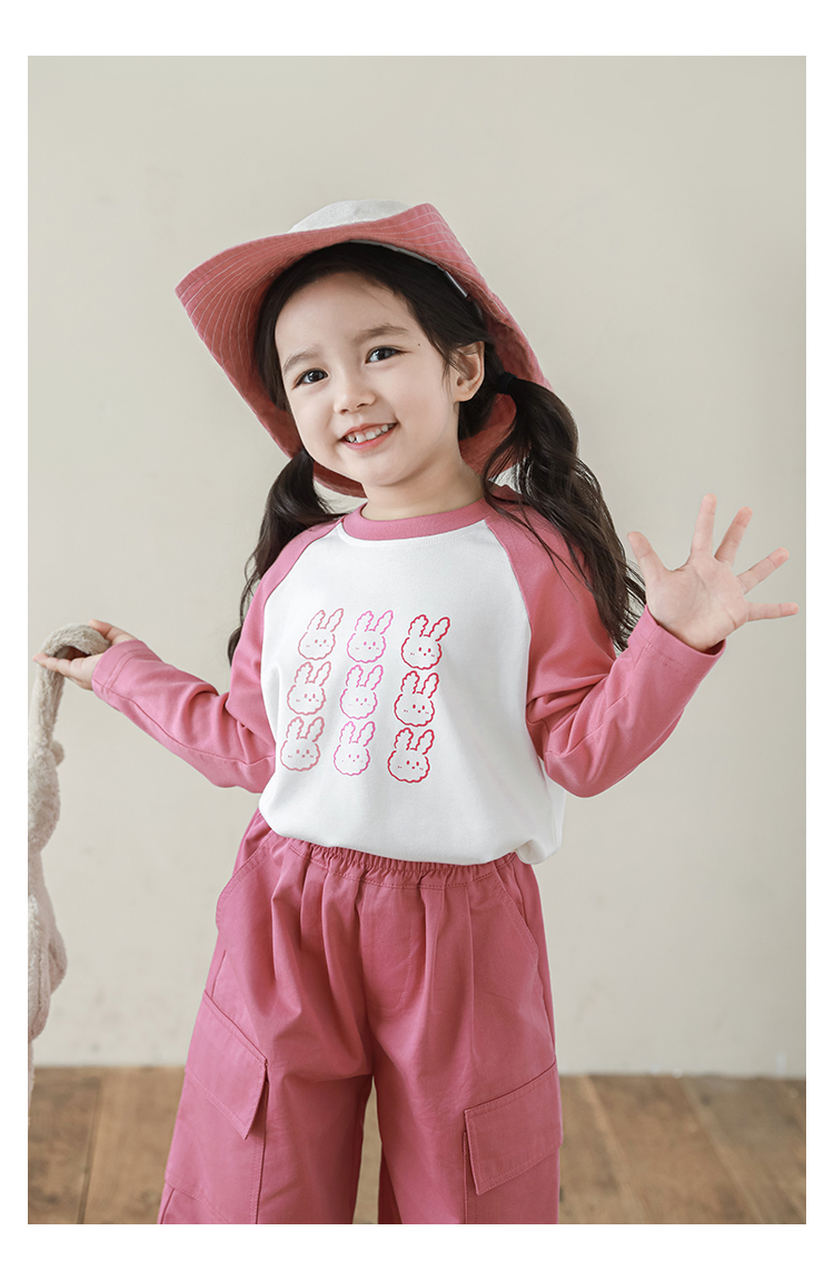 내 갈비뼈 소녀의 명암 Raglan 소매 티셔츠 가을 새 어린이 귀여운 귀여운 인쇄 느슨한 캐주얼 티셔츠스토어 가기