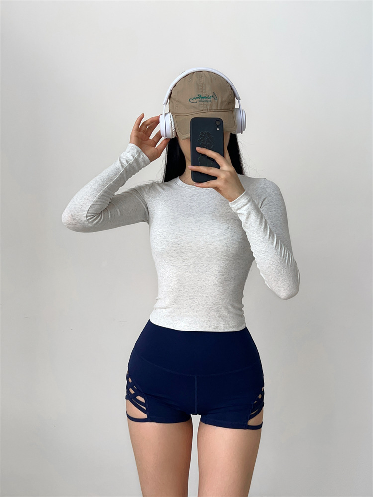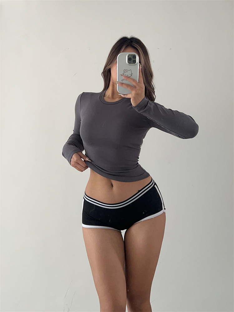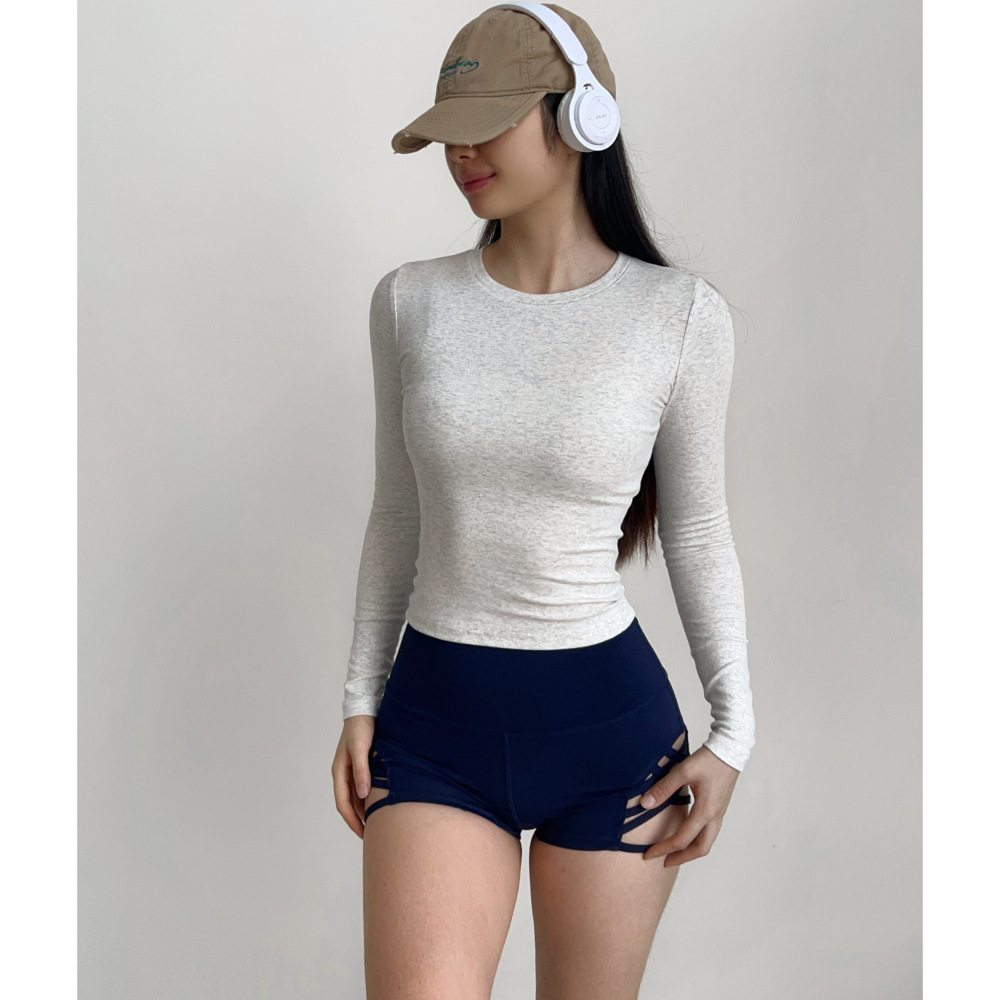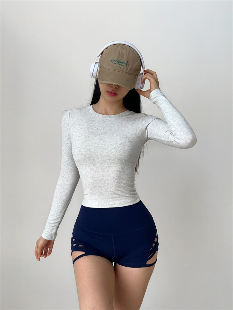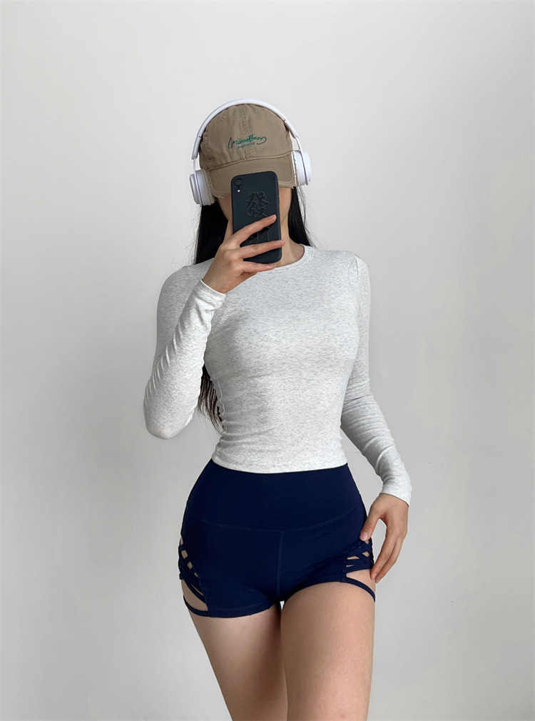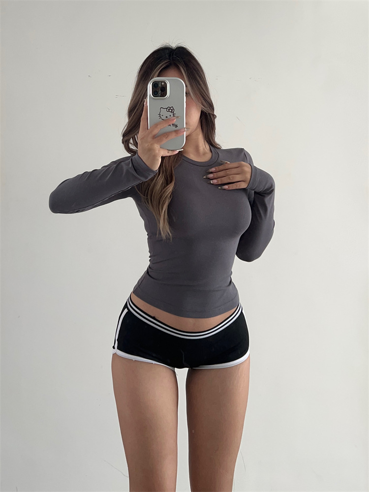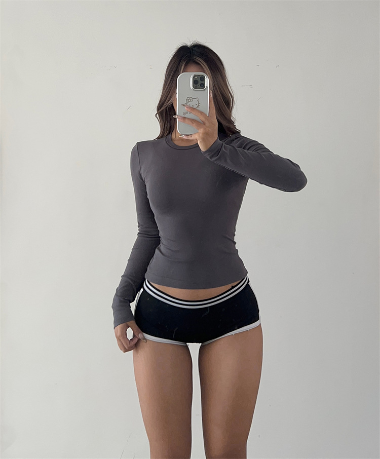 기본 크루 넥 긴팔 티셔츠 여성 스포츠 캐주얼 유럽과 미국의 Ins 타이트 슬림 솔리드 컬러베이스 셔츠 탑 1389