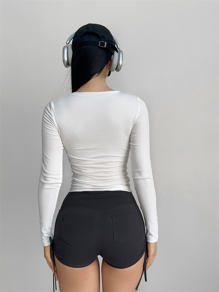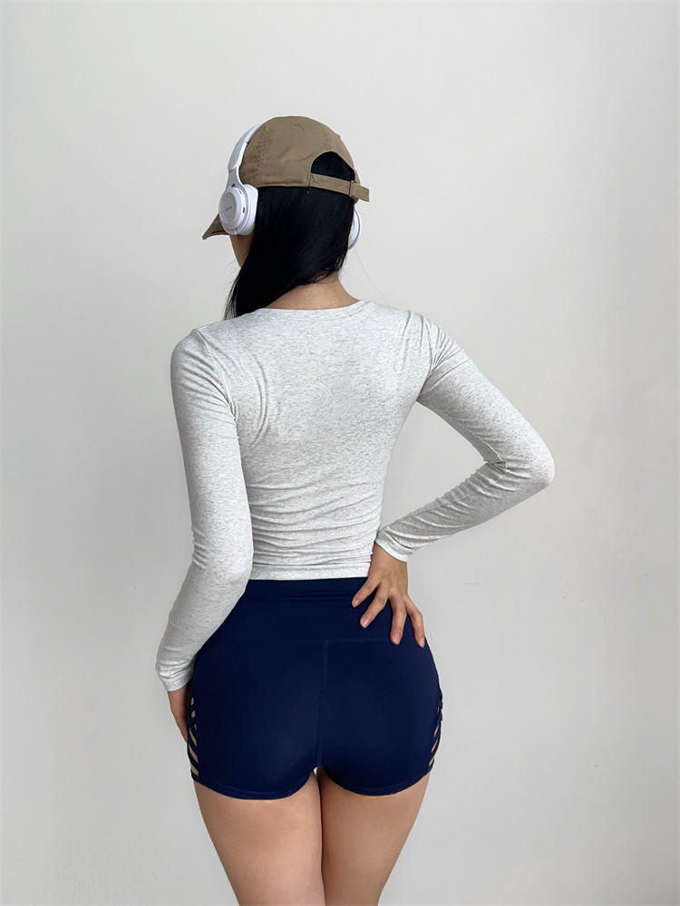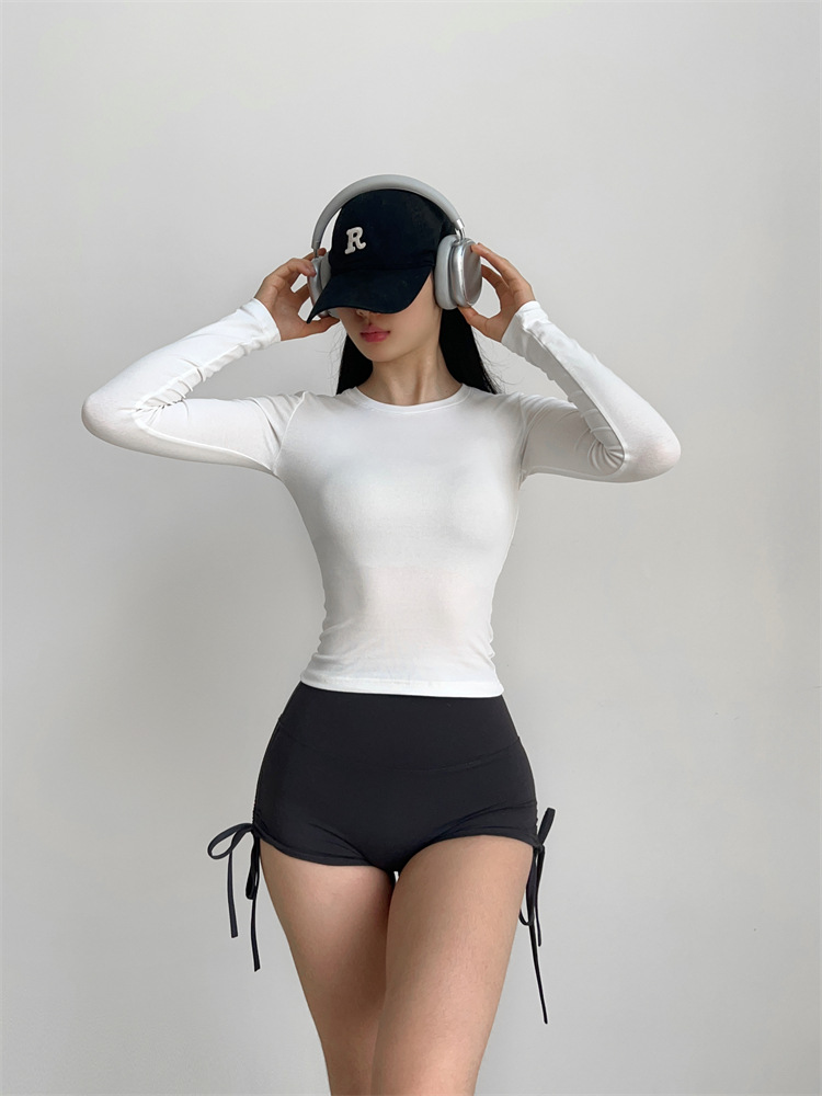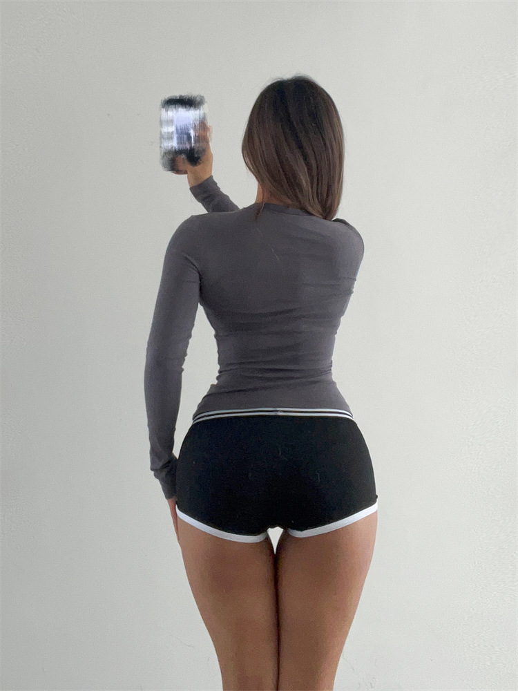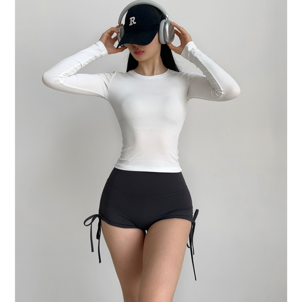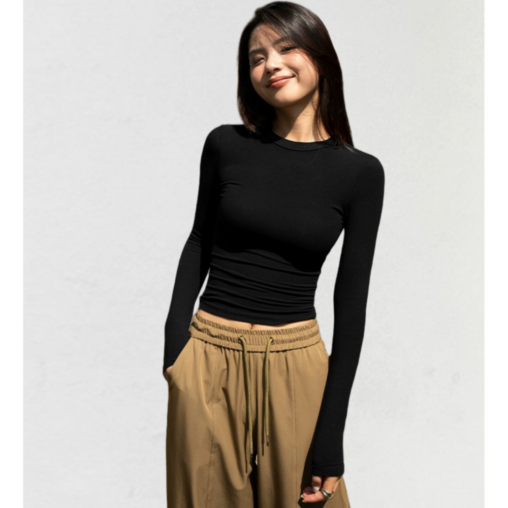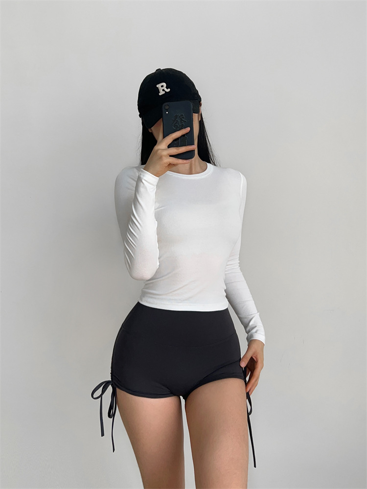 기본 크루 넥 긴팔 티셔츠 여성 스포츠 캐주얼 유럽과 미국의 Ins 타이트 슬림 솔리드 컬러베이스 셔츠 탑 1389