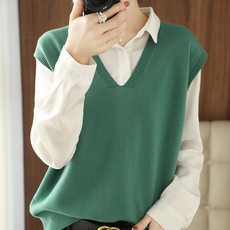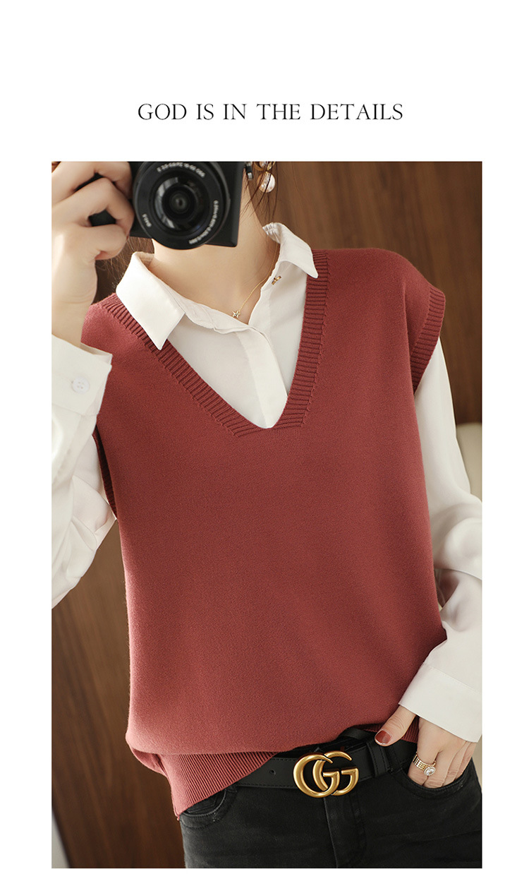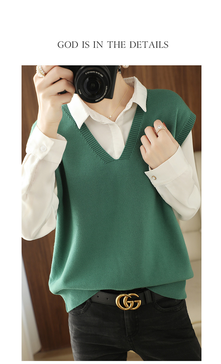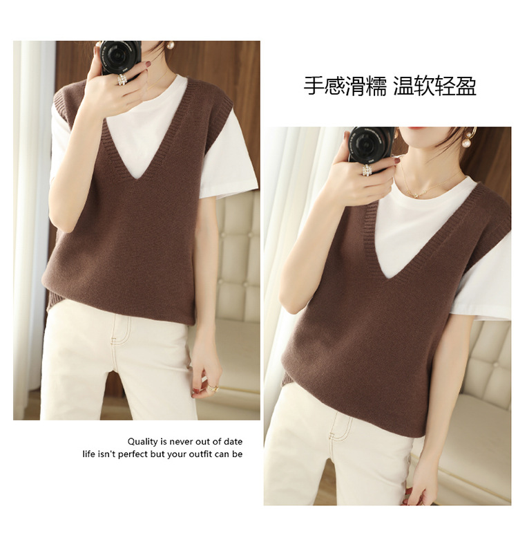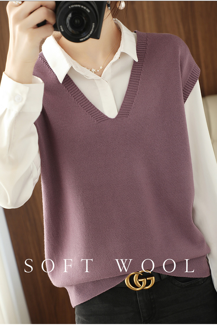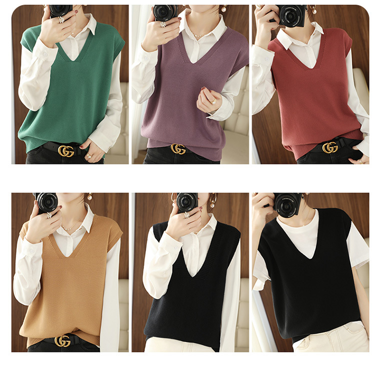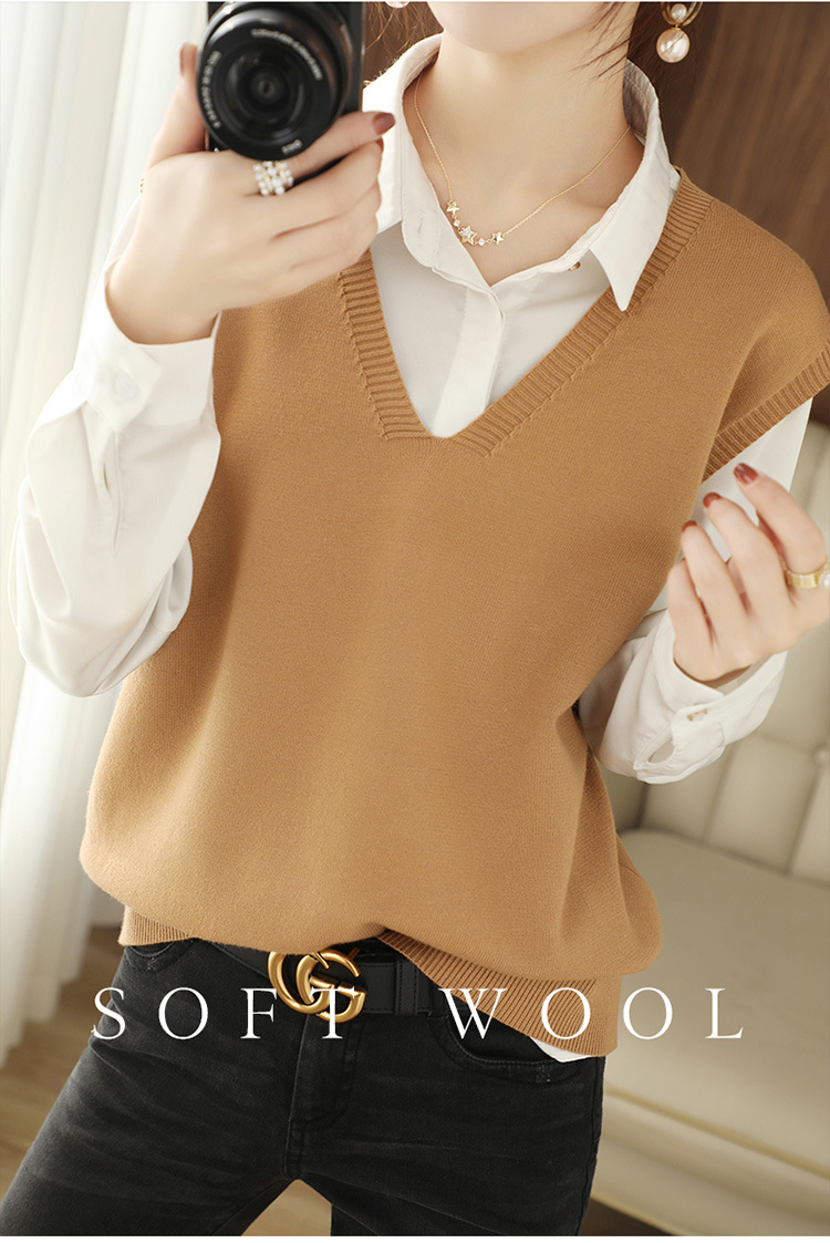 2024 년 초 가을 새로운 스택 울 조끼 니트 조끼 통근 민소매 느슨한 코트 니트 어깨 여성용스토어 가기