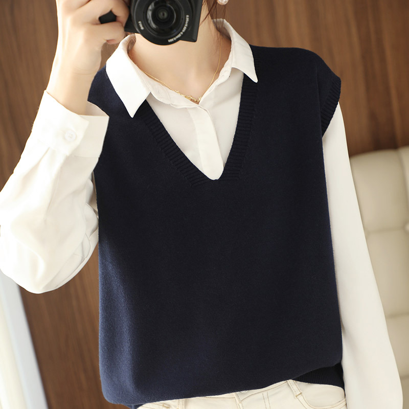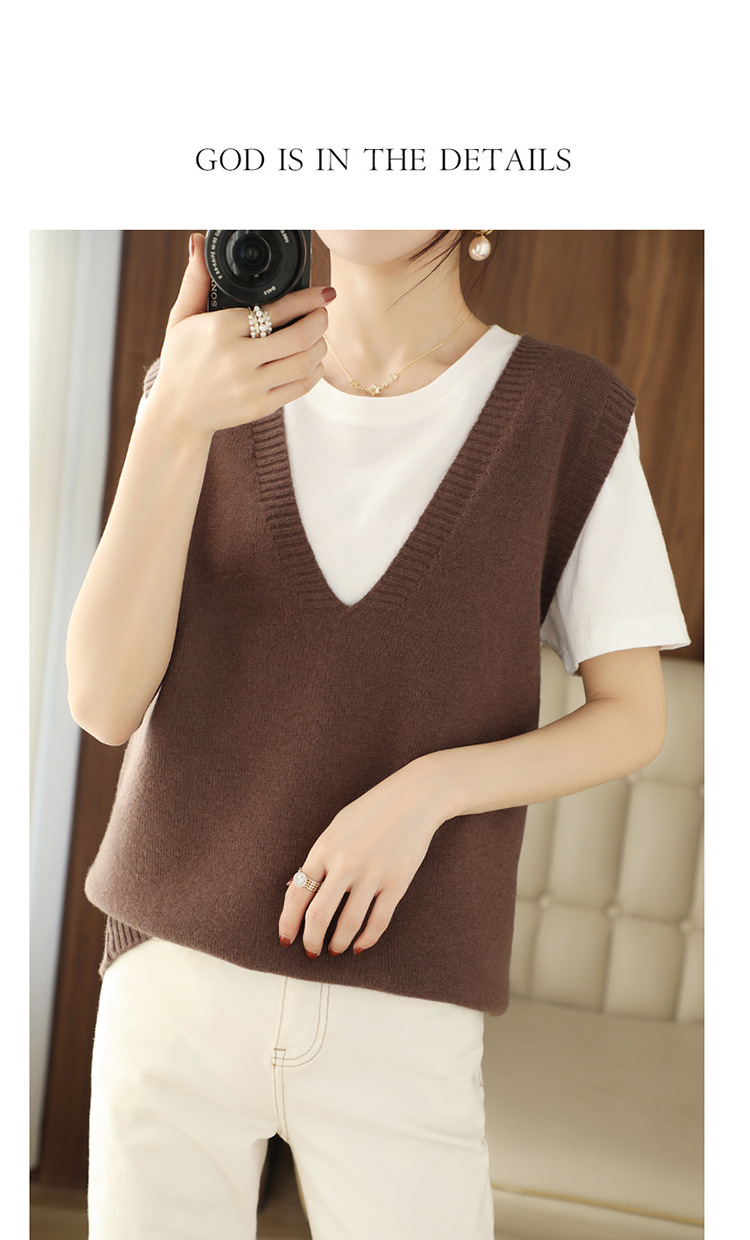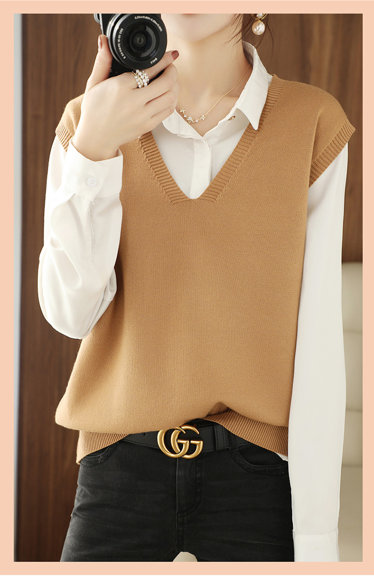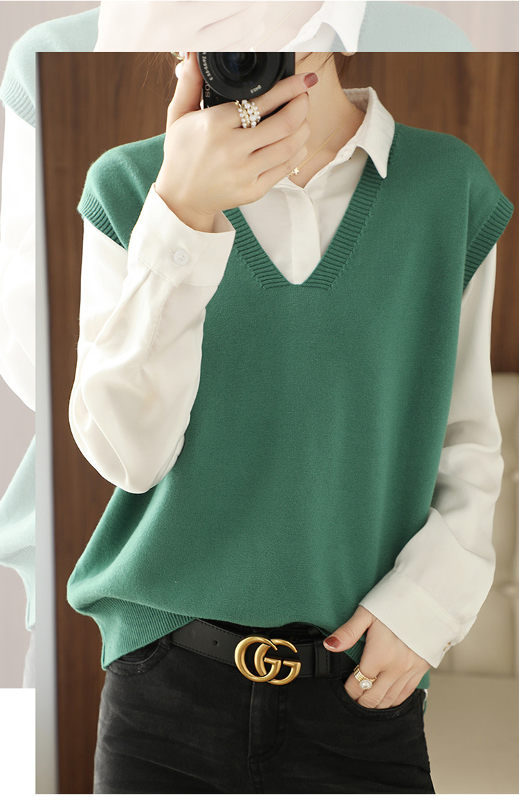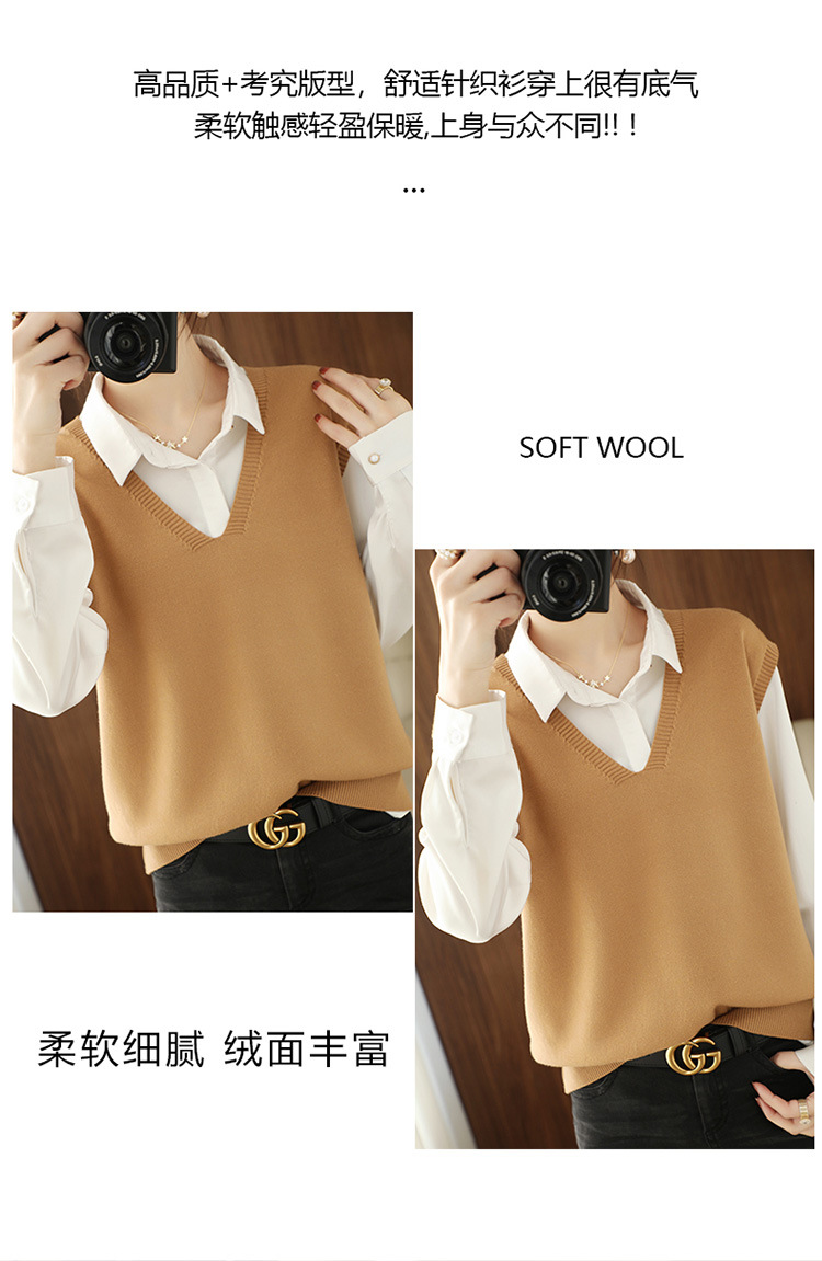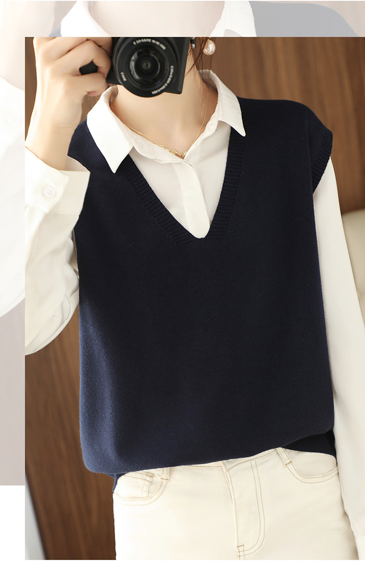 2024 년 초 가을 새로운 스택 울 조끼 니트 조끼 통근 민소매 느슨한 코트 니트 어깨 여성용스토어 가기
